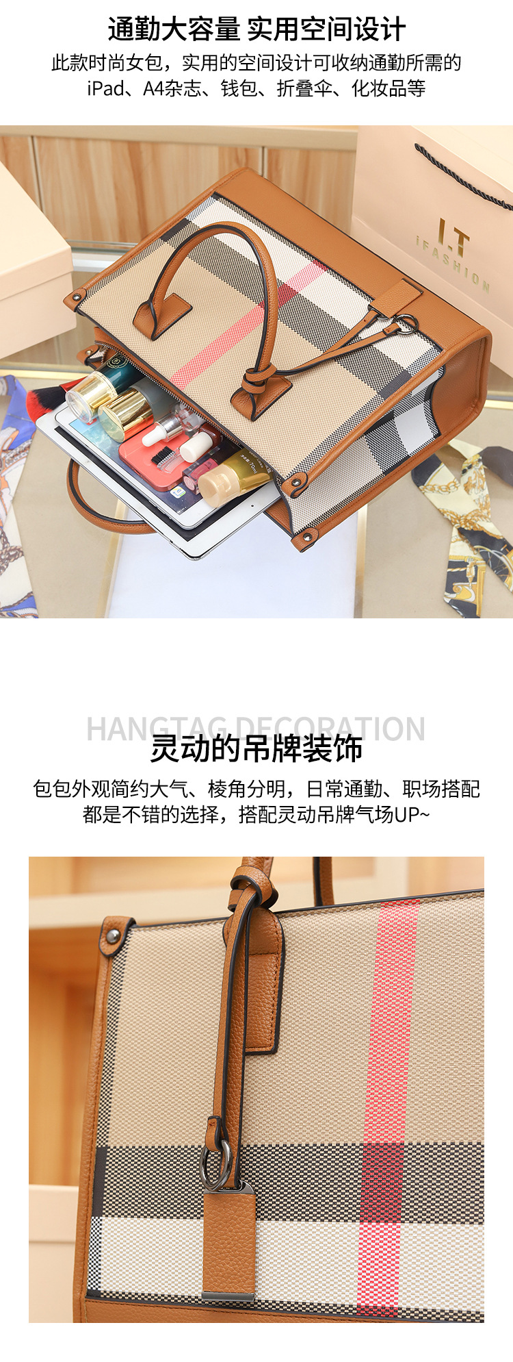 여성용 가방 2024 새로운 격자 무늬 대용량 토트 백 고급 여성용 핸드백 싱글 숄더 대형 가방 크로스 바디 백