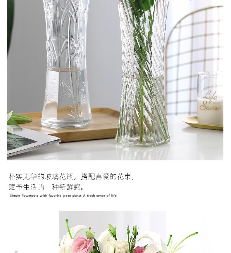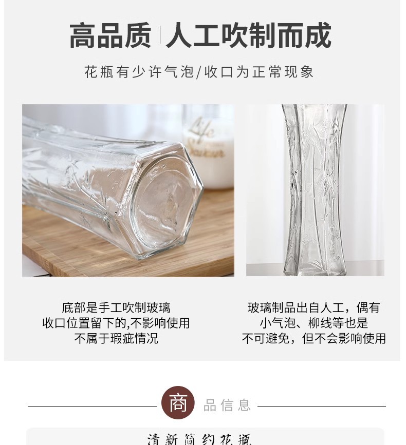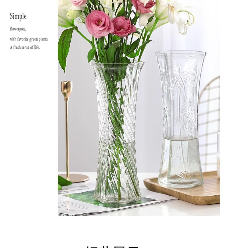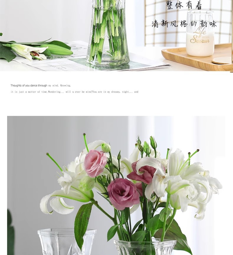 북유럽 인 스타일 고가 투명 꽃병 유리 물 제기 풍부한 대나무 백합 꽃꽂이 데스크탑 장식품스토어 가기