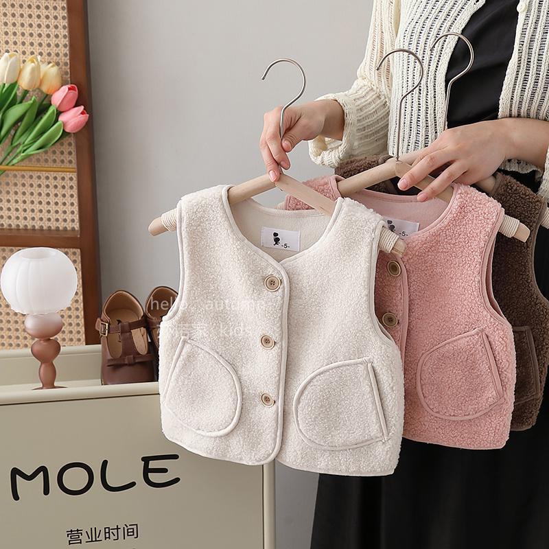 아기 조끼 가을, 겨울 새로운 스타일 소년과 소녀 양고기 벨벳 플러스 벨벳 스타일 조끼 어린이 아기 겨울 따뜻한 조끼스토어 가기