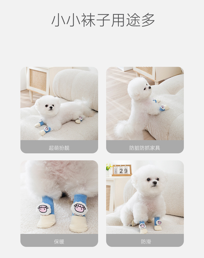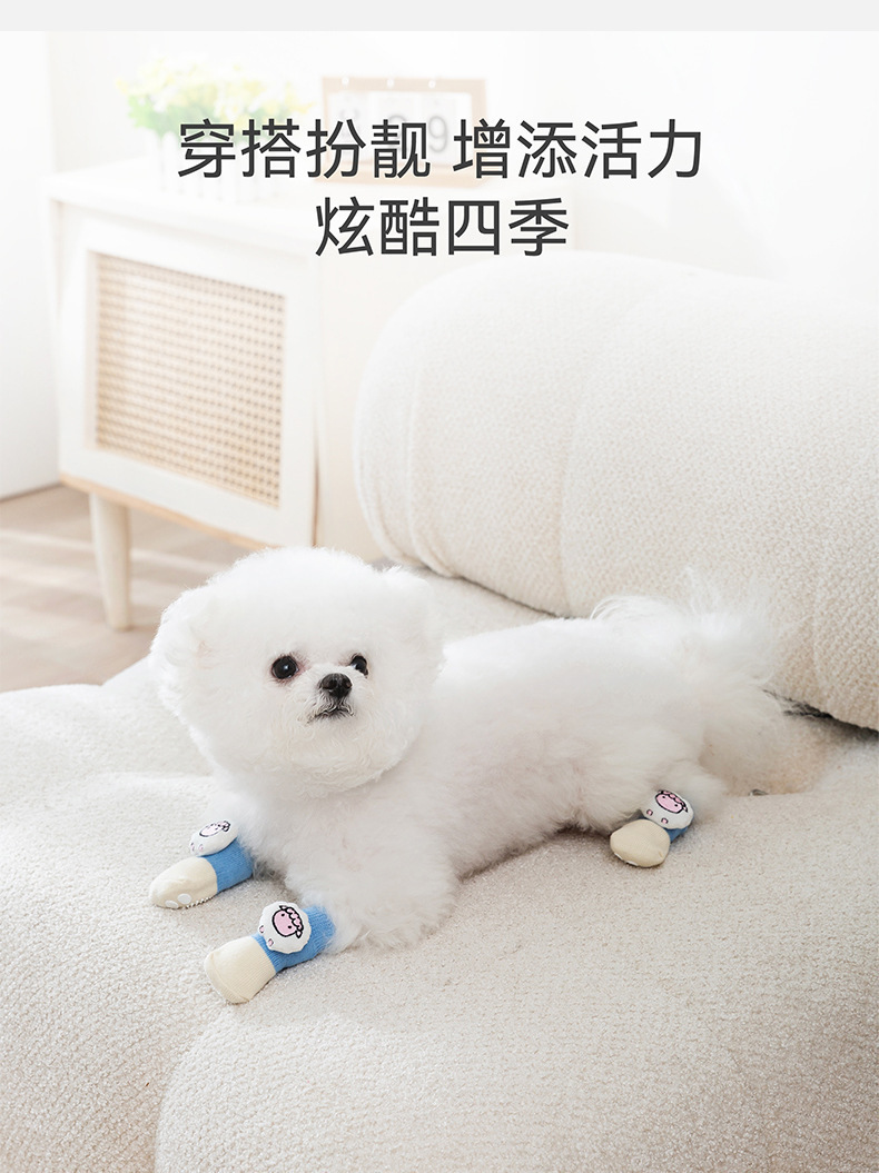 국경을 넘는 신제품 애완동물 양말 미끄럼 방지 발 커버 고양이 강아지 중소형견 테디 포메라니안 신발 강아지 장식