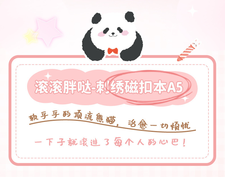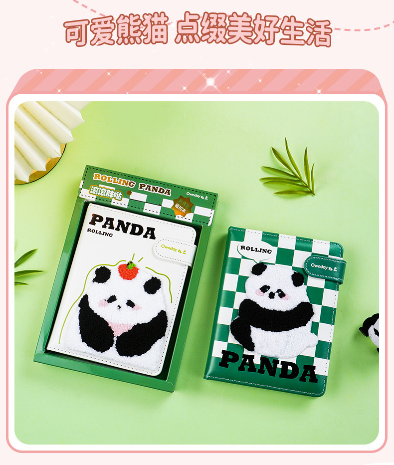 Joytop Yue 우드 롤링 팻 다 자수 마그네틱 버클 북 A5 귀여운 팬더 노트북스토어 가기