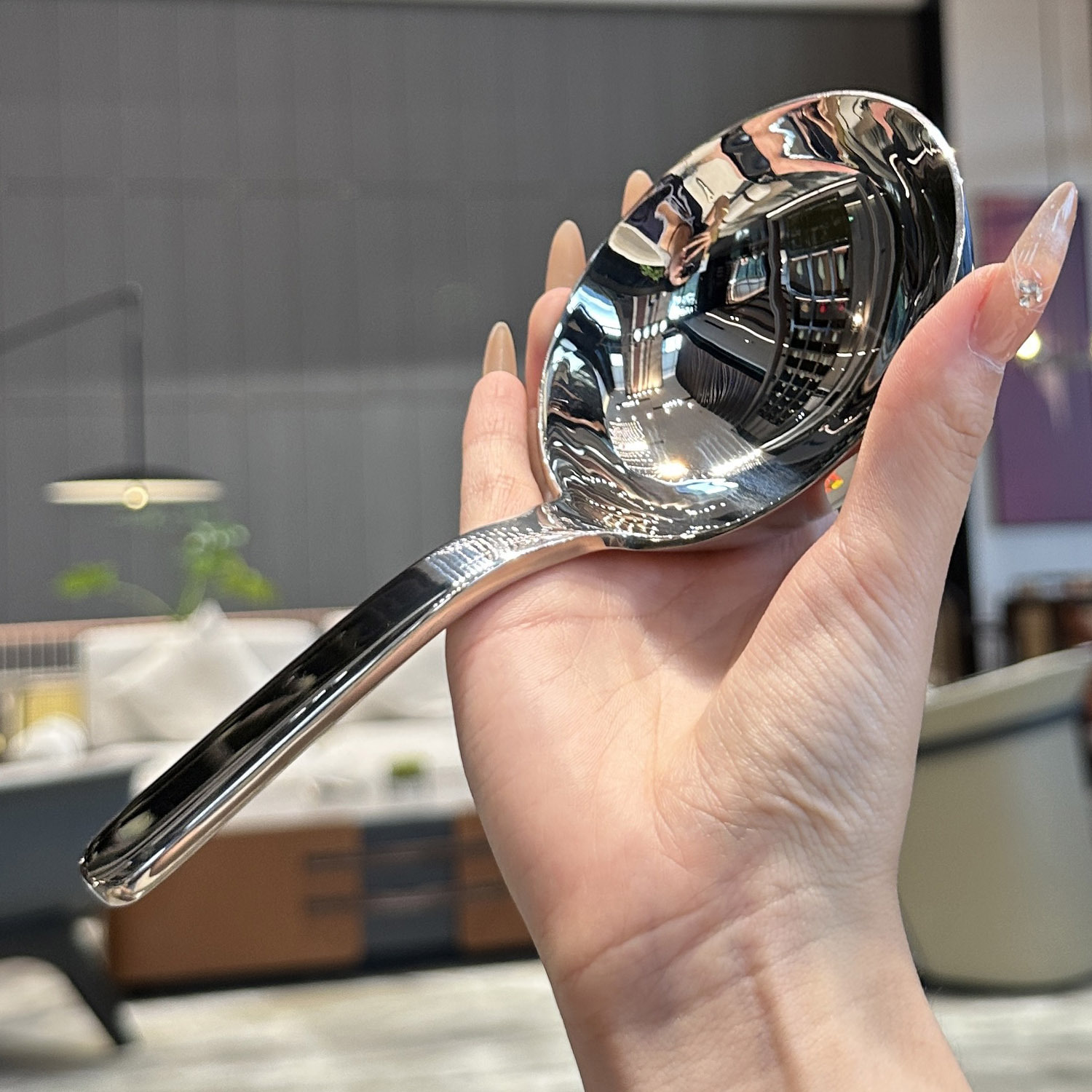 304 스테인레스 스틸 식품 숟가락 깊어 두꺼운 수프 스푼 사이버 인기 대형 원형 스푼 가정 식당 창조적 인 식기