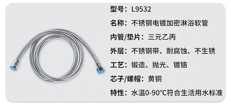 • L9532 스테인레스 스틸 도금 암호화 샤워 호스 1.5 m
