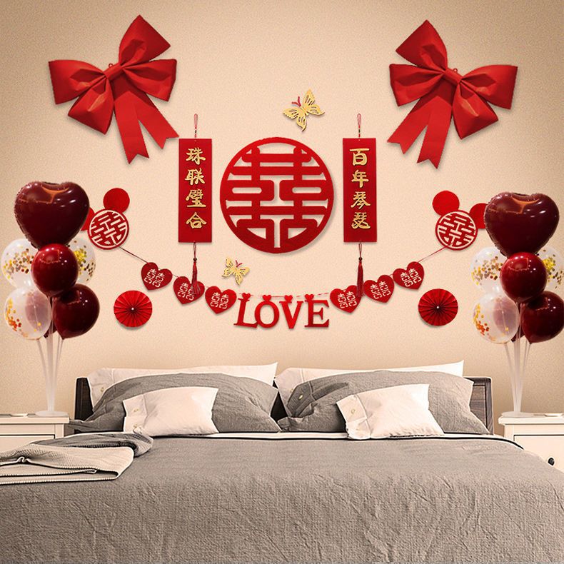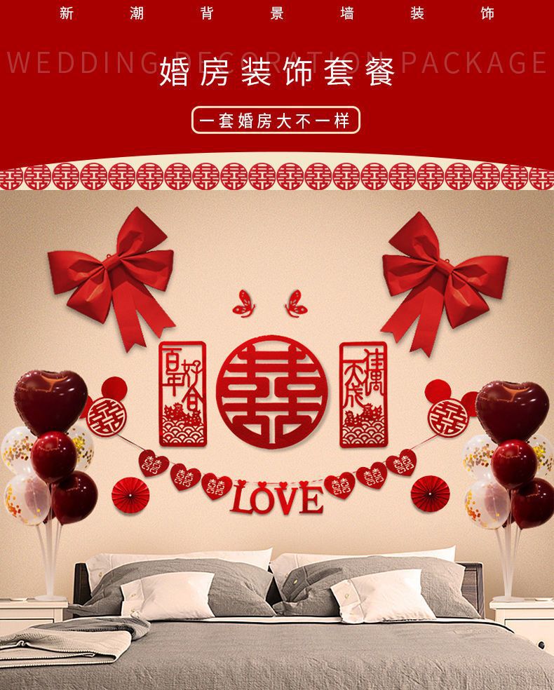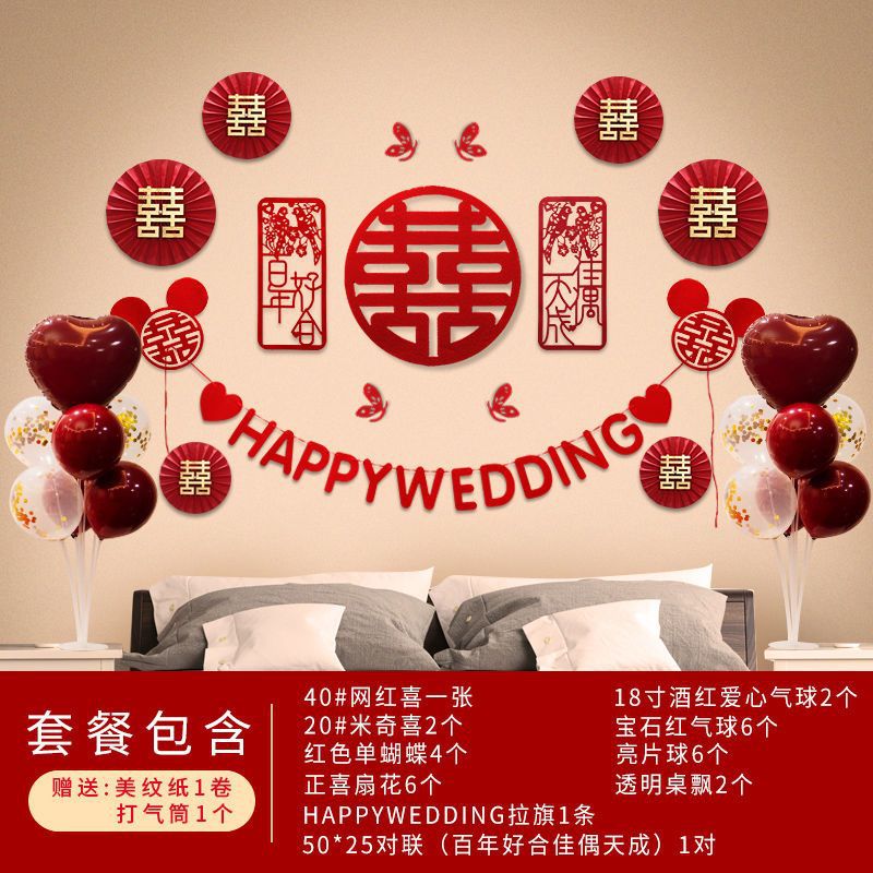 웨딩 룸 레이아웃 세트 남자의 새로운 집 여자의 방 침실 거실 결혼식 장식 중국 스타일 인터넷 연예인 Rahua 행복한 성격스토어 가기