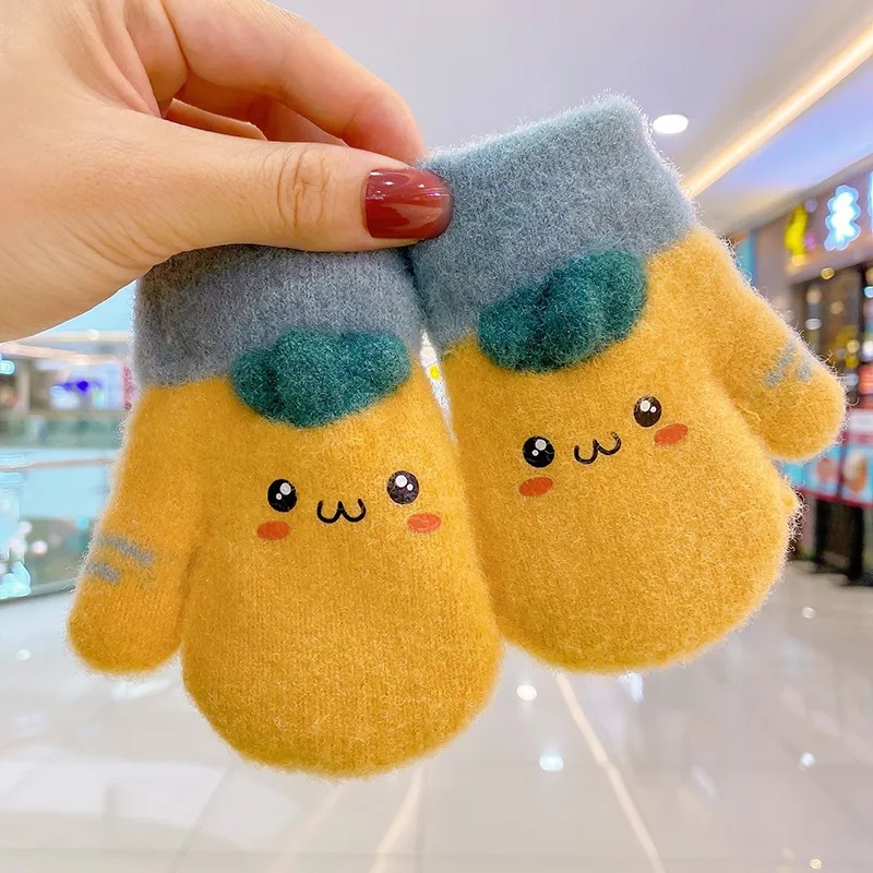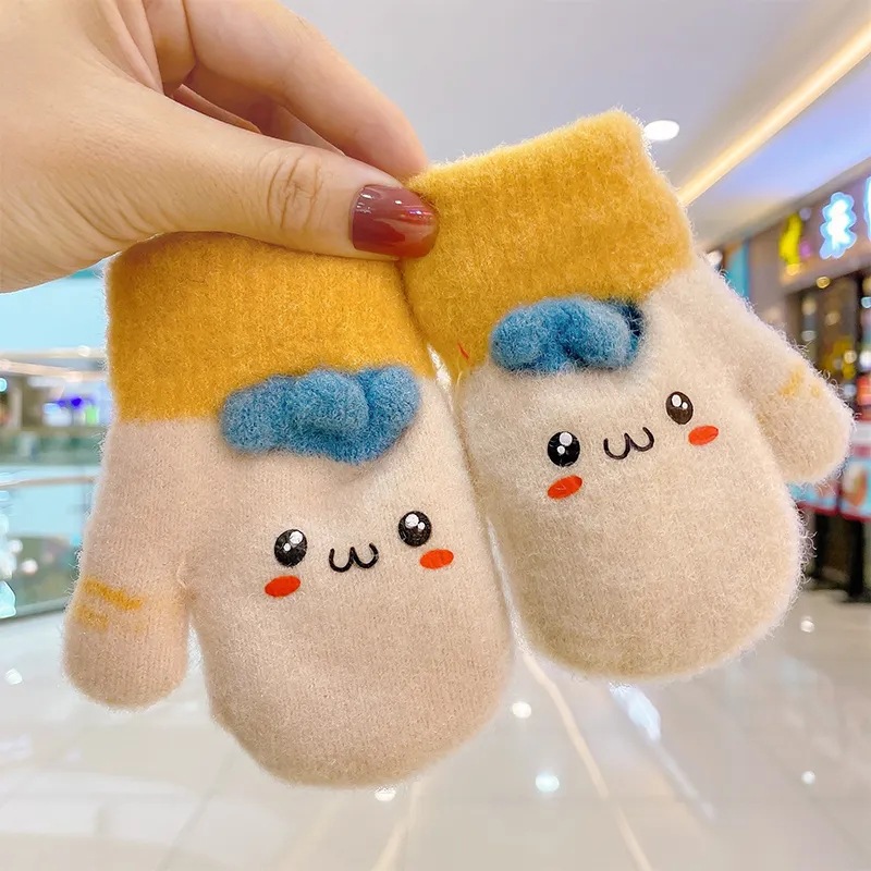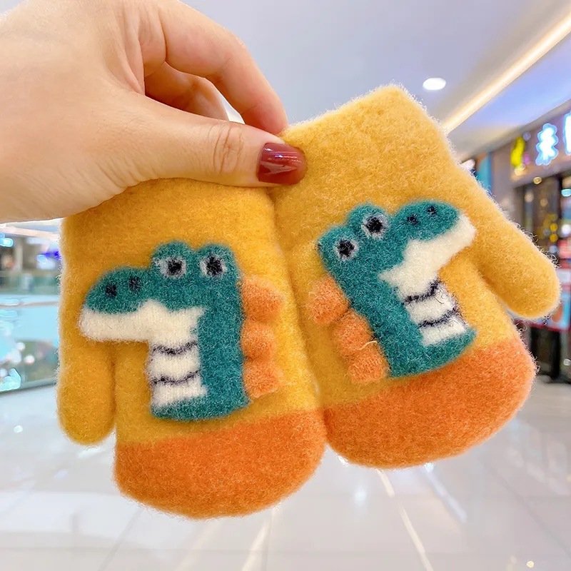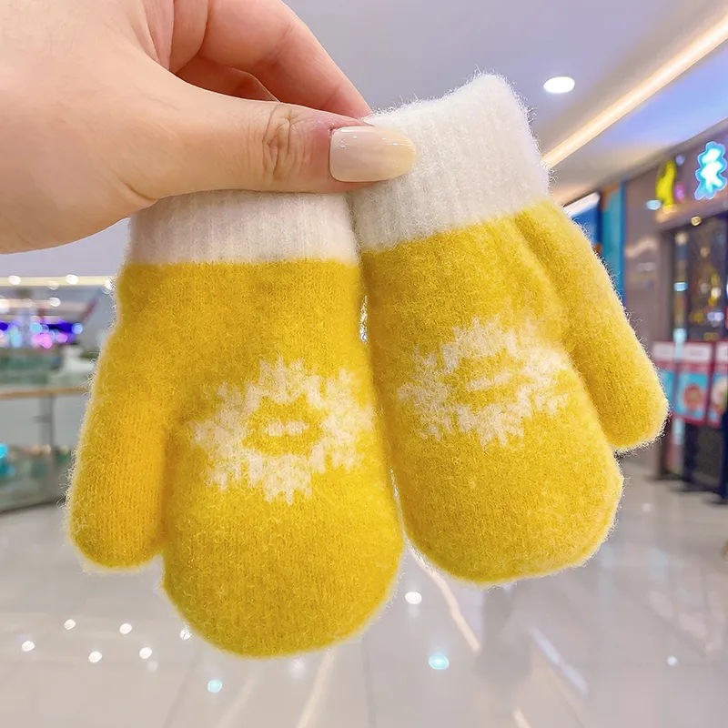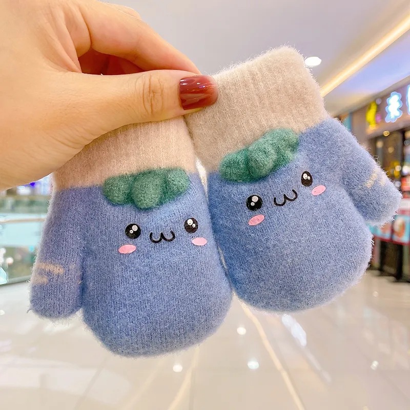 어린이 겨울 따뜻한 장갑 소년과 소녀 귀여운 두꺼운 초등학교 소녀 양고기 양모 목 손가락 커버