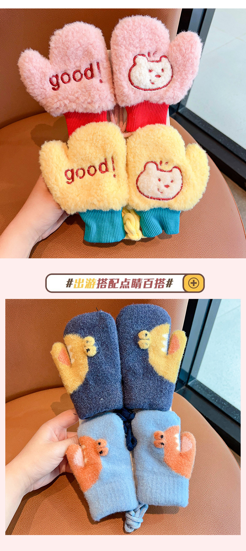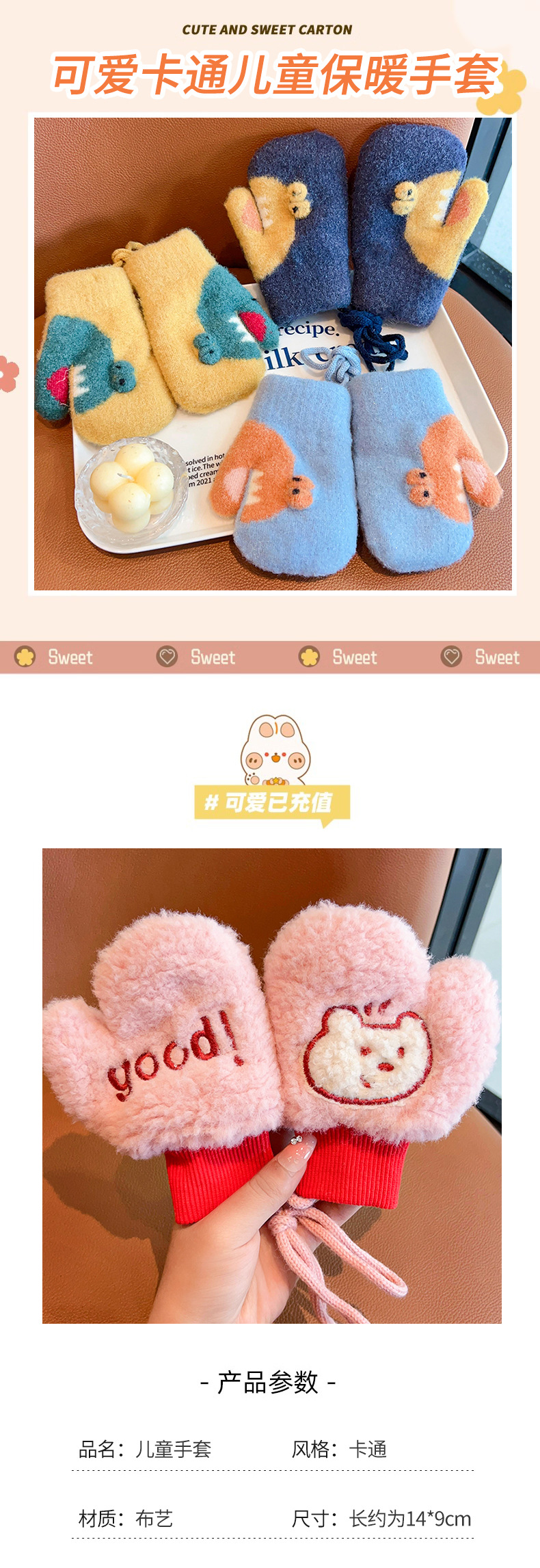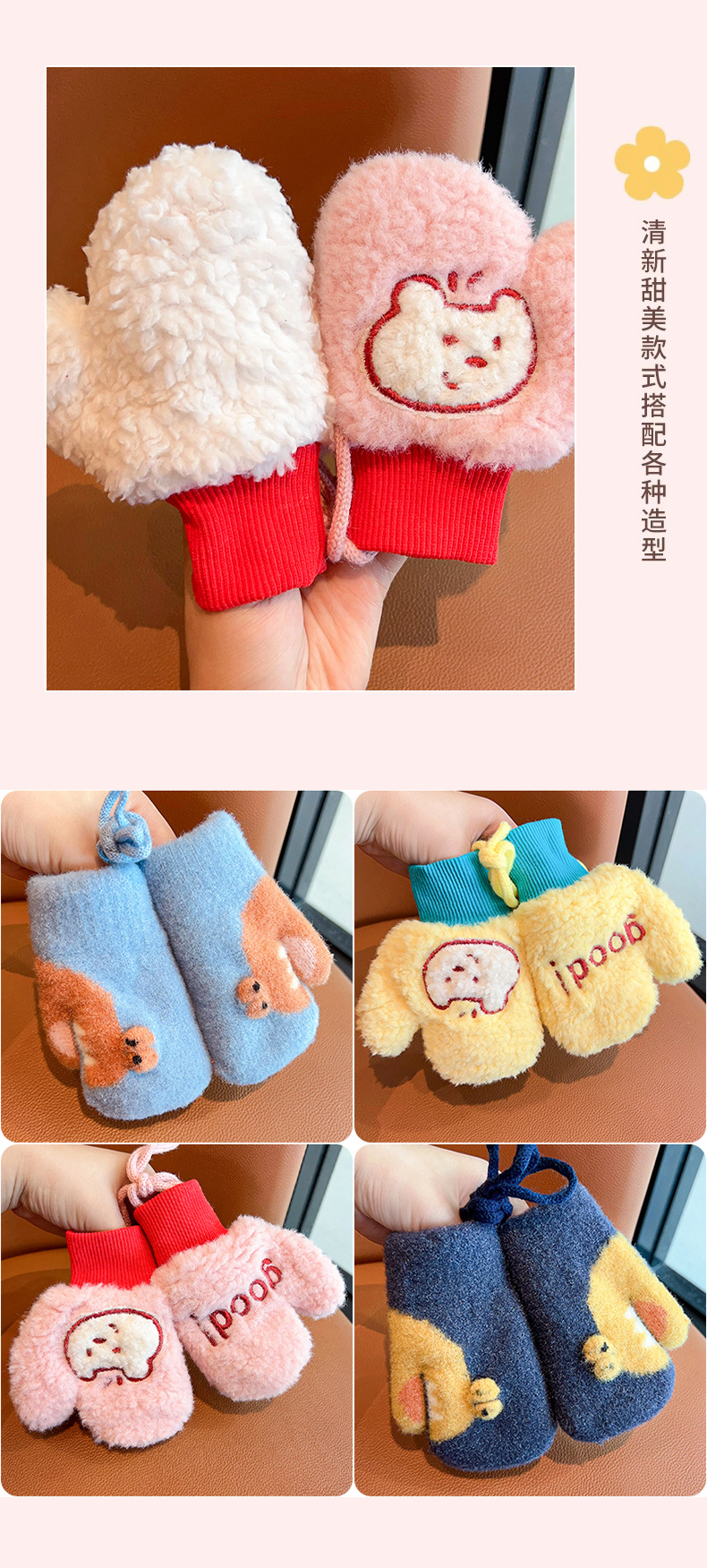 어린이 겨울 따뜻한 장갑 소년과 소녀 귀여운 두꺼운 초등학교 소녀 양고기 양모 목 손가락 커버