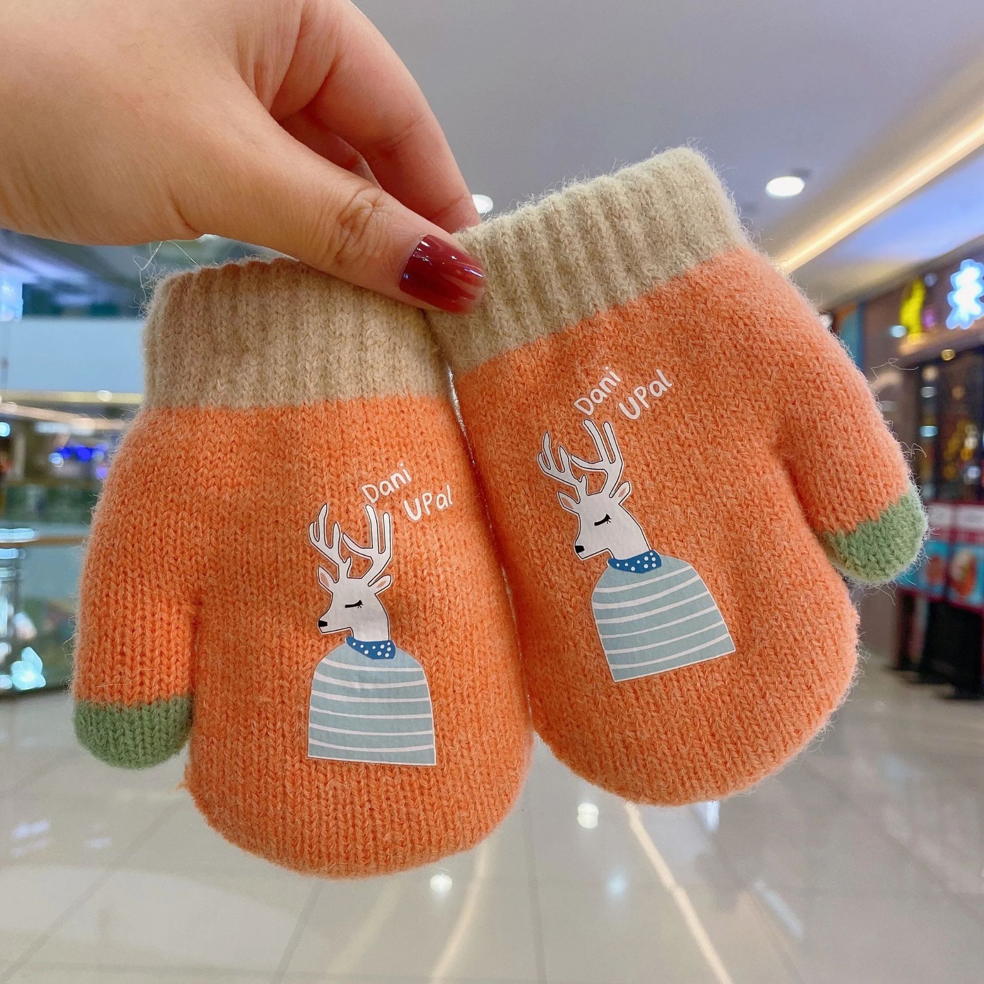 어린이 겨울 따뜻한 장갑 소년과 소녀 귀여운 두꺼운 초등학교 소녀 양고기 양모 목 손가락 커버스토어 가기