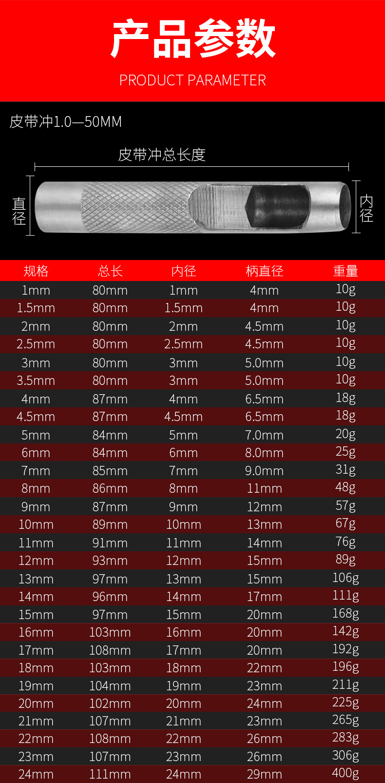 펀칭 벨트 펀치 전문 가죽 판지 펀치 라운드 펀치 벨트 구멍 중공 펀치 도구