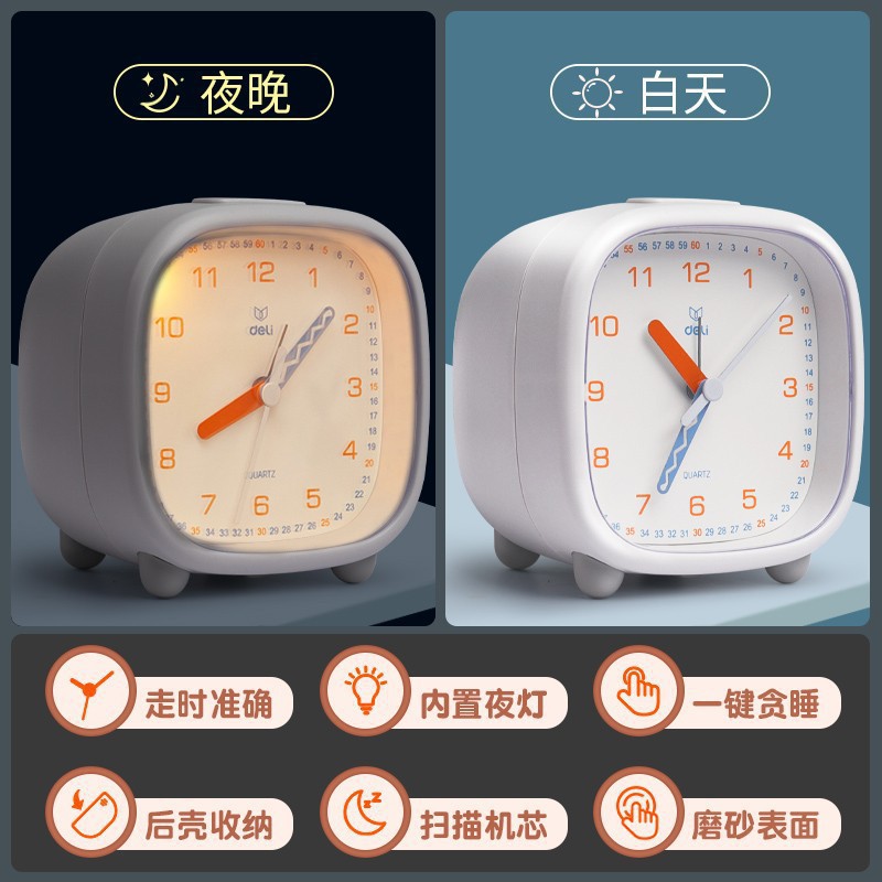 델리 8857 포인터 알람 시계 학생을위한 간단한 창조적 인 침실 침대 옆 조용한 야간 조명 알람 시계스토어 가기