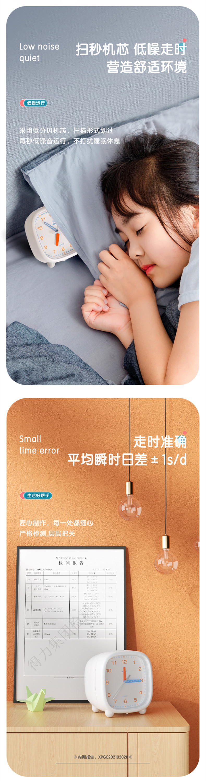 델리 8857 포인터 알람 시계 학생을위한 간단한 창조적 인 침실 침대 옆 조용한 야간 조명 알람 시계
