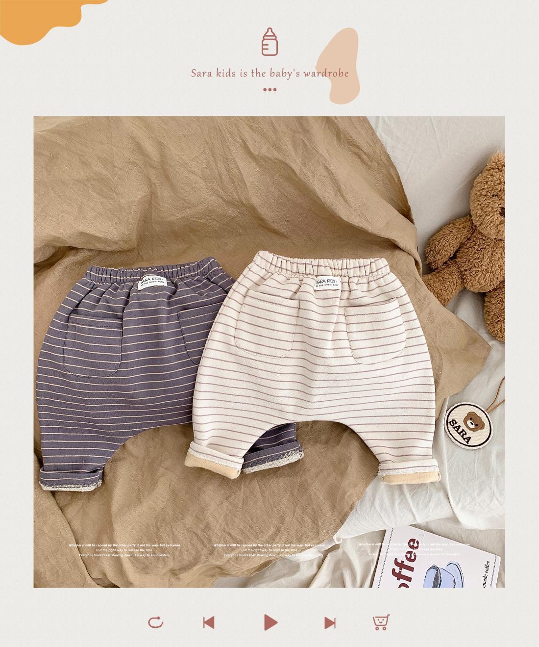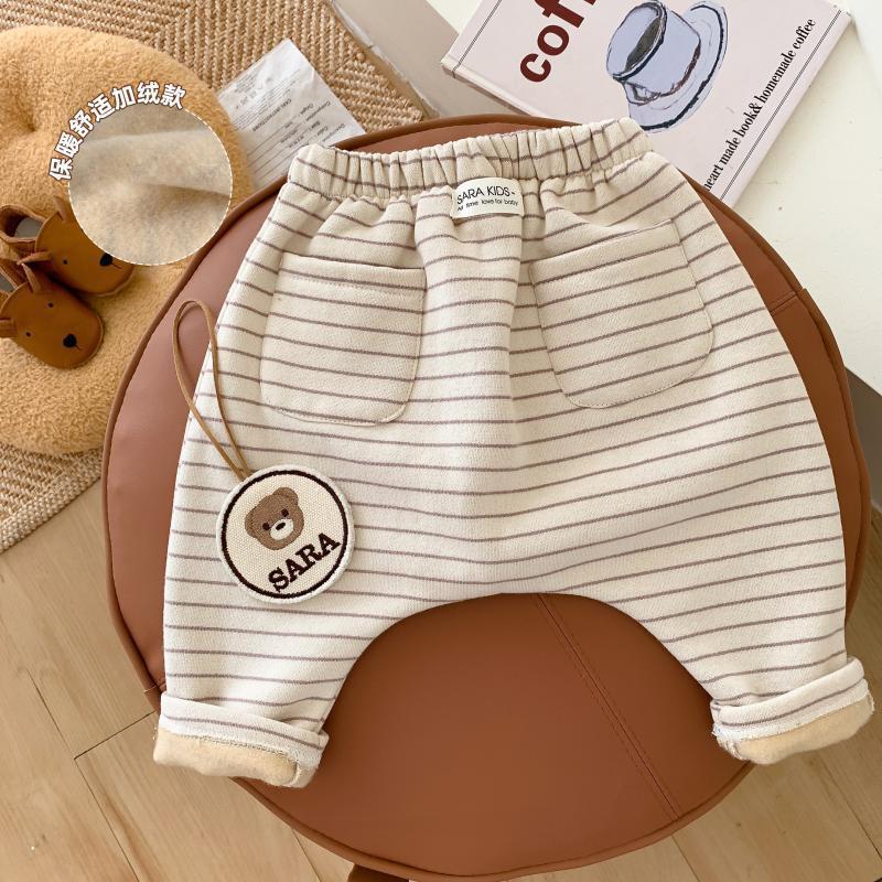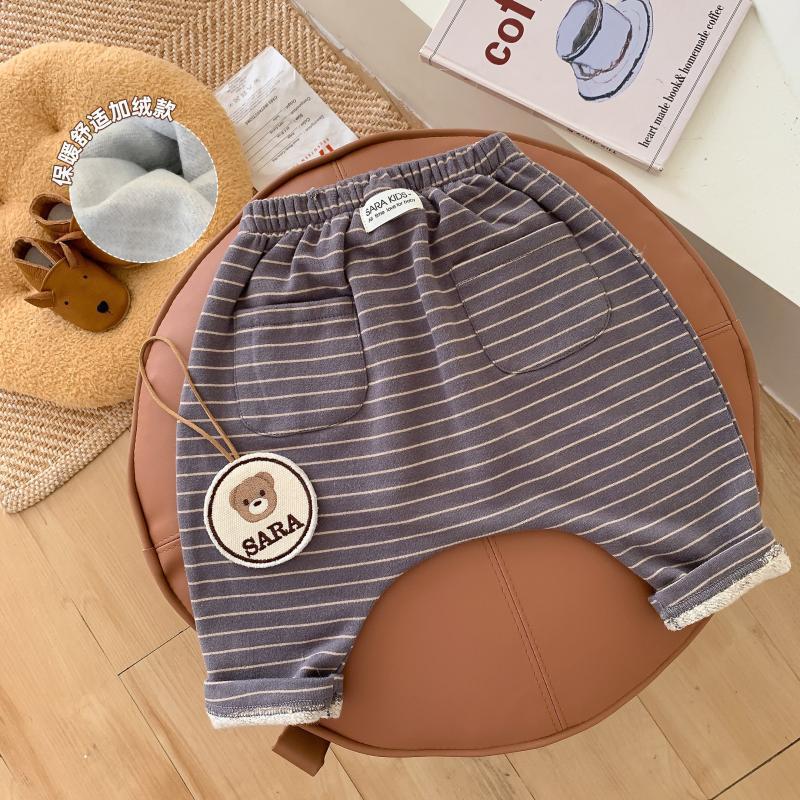 아기의 큰 PP 바지 겨울 착용 아기의 양털 할렌 바지 어린이 겨울 두꺼운 바지 아기의 줄무늬 할렌 바지