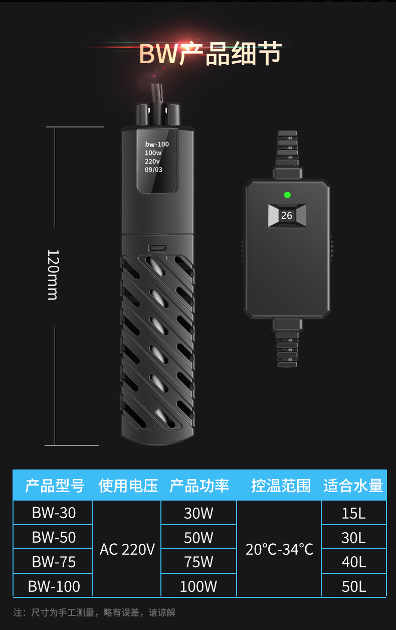 • BY 지능형 디지털 디스플레이 가열 막대 100W