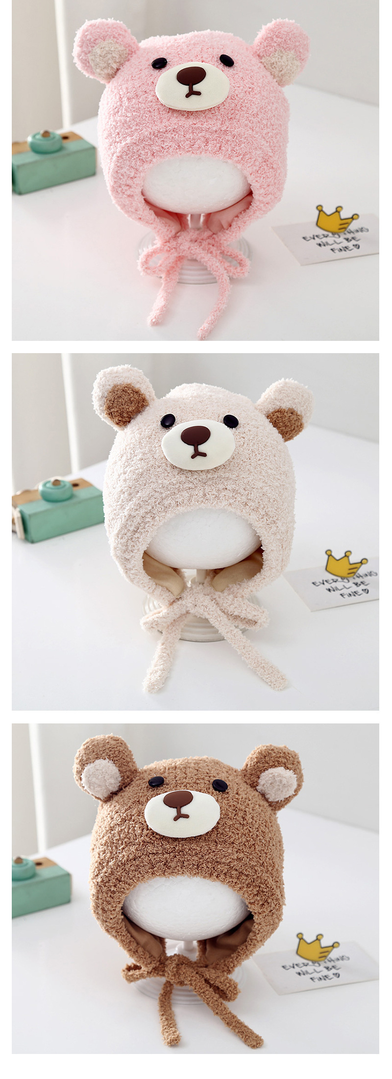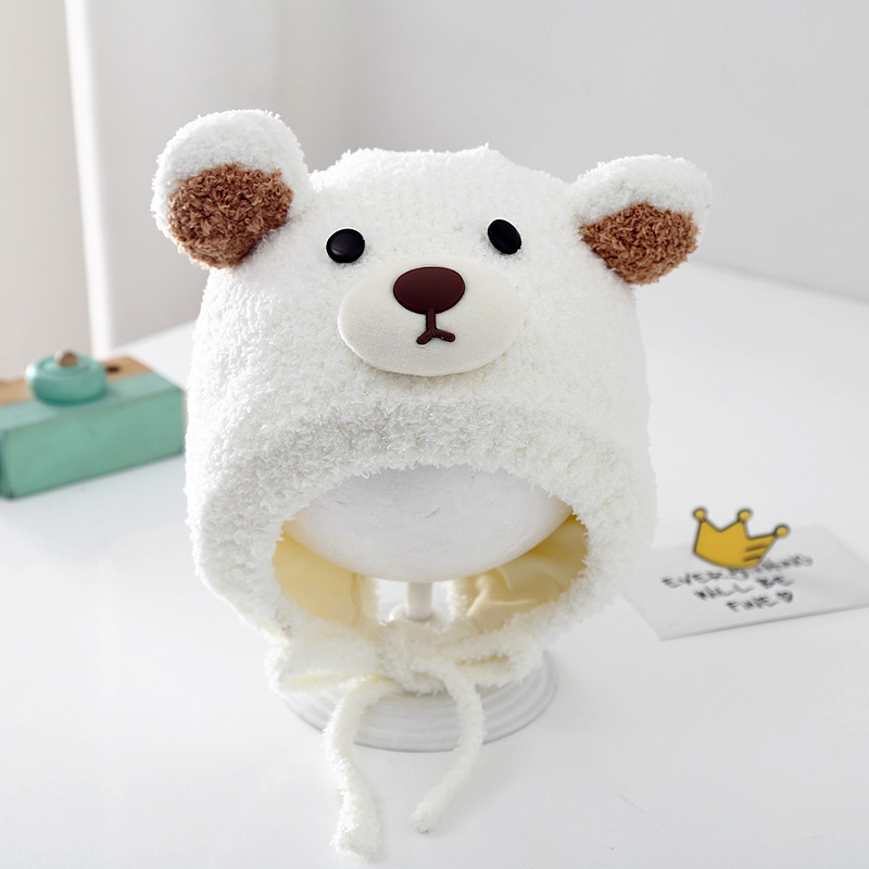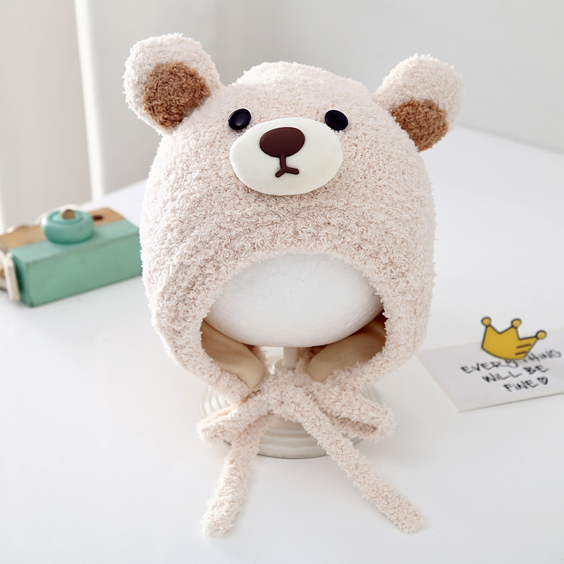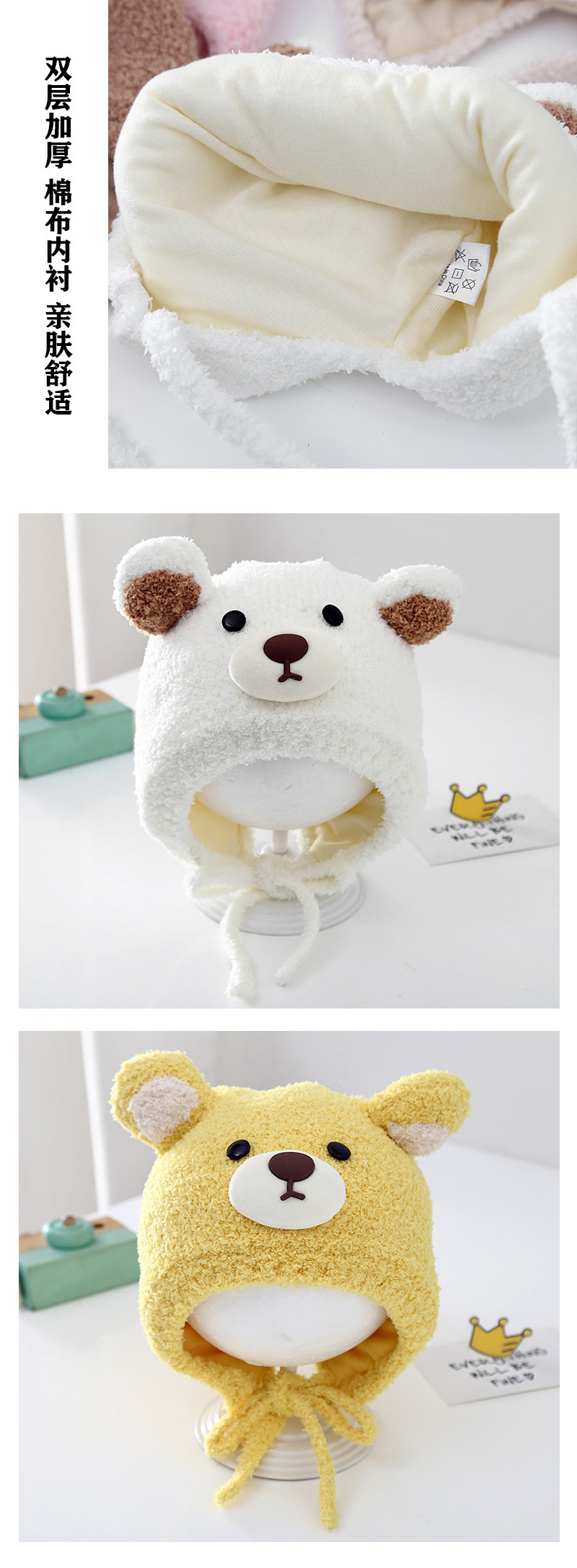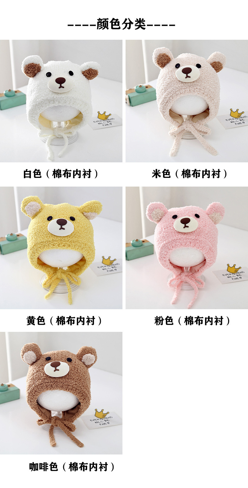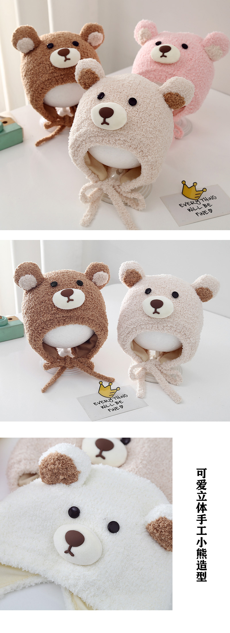 아기의 푹신한 모자 가을과 겨울 어린이 만화 곰 모양 귀 보호 모자 소년과 소녀를위한 두꺼운 따뜻한 모자 아기스토어 가기