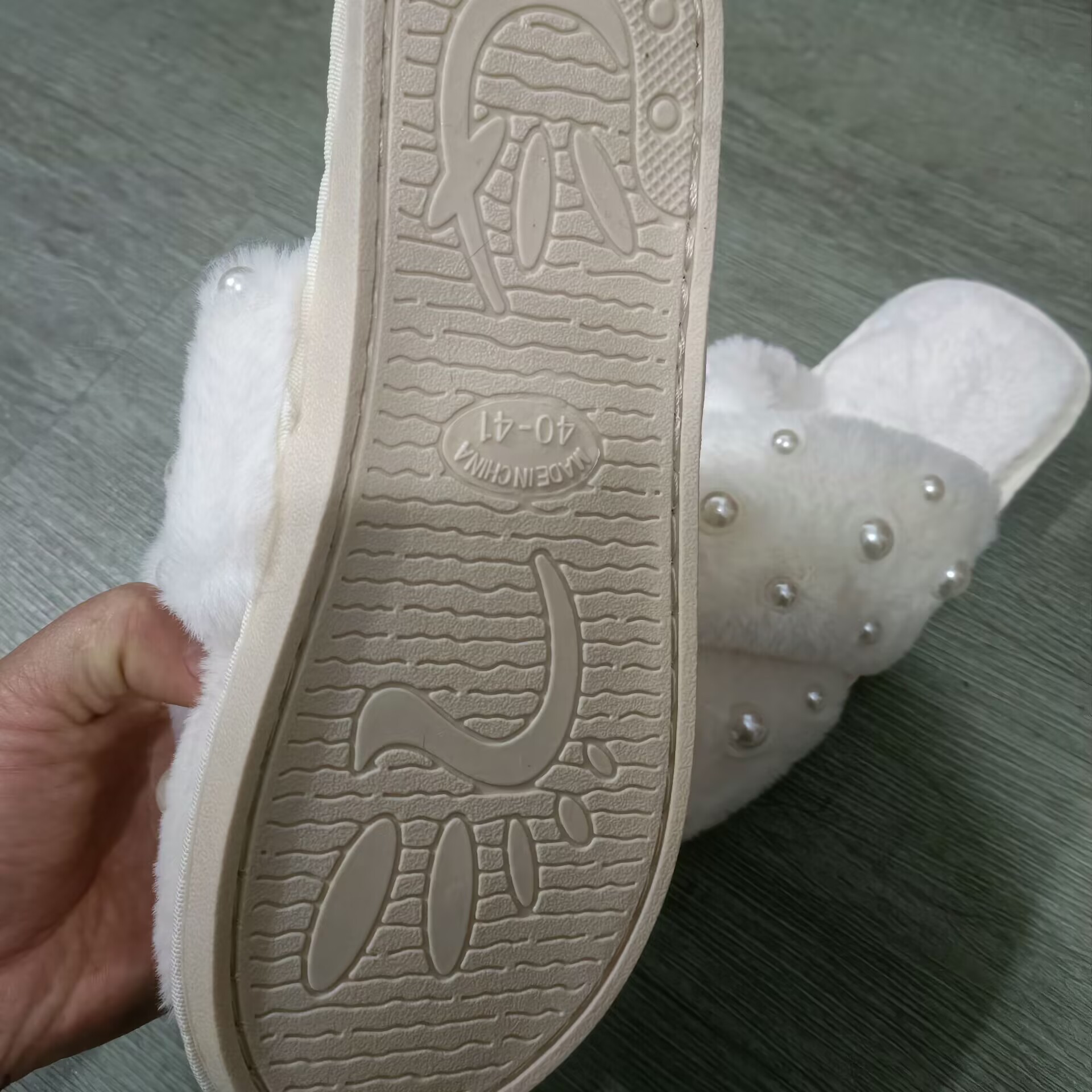 유럽과 미국의 가정 2025 새로운 플랫 진주 크로스 모피 슬리퍼 여성용 외국 무역 캔디 컬러 코튼 슬리퍼스토어 가기