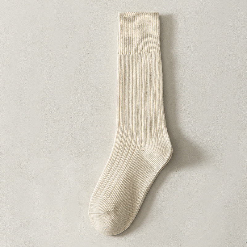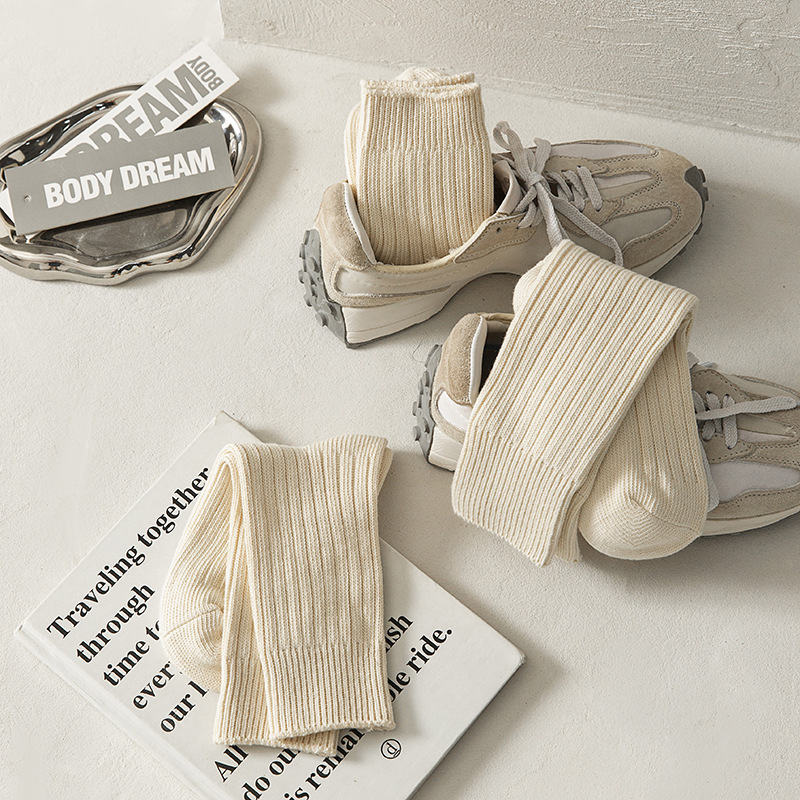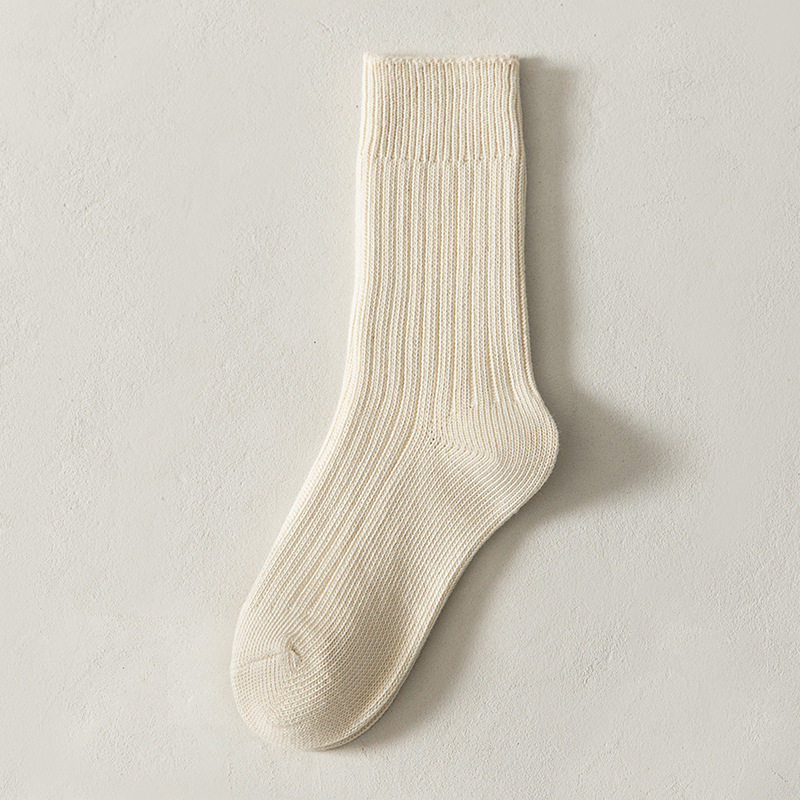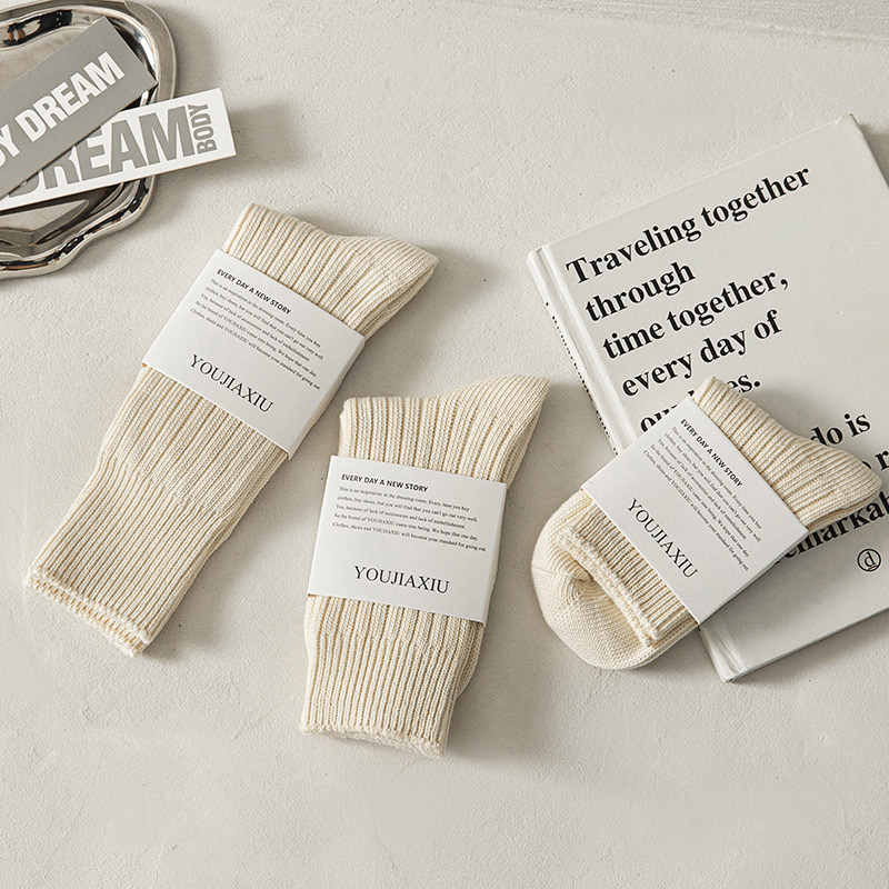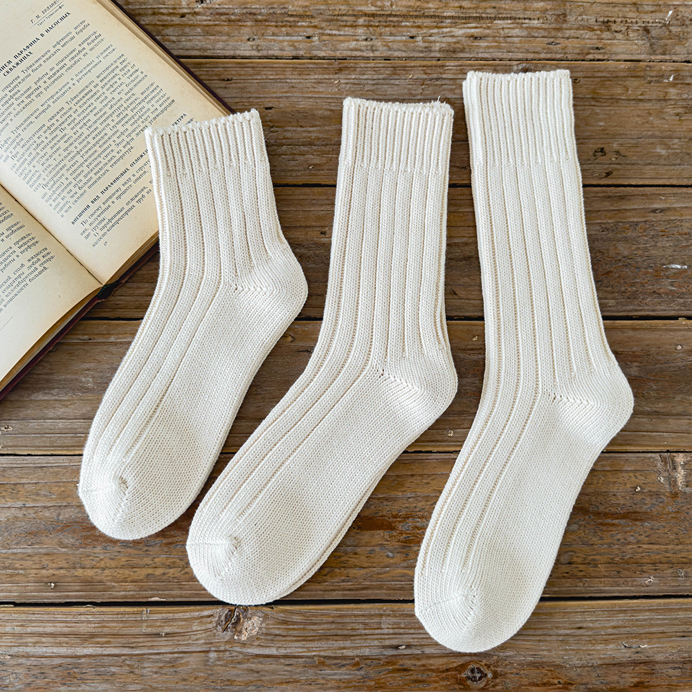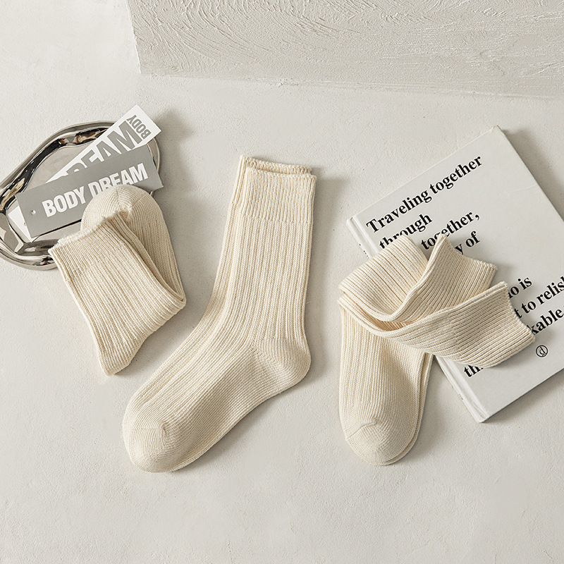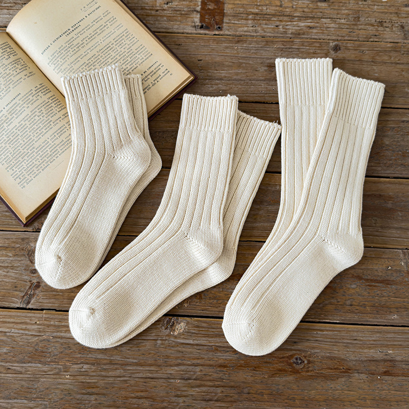 일본 복고풍 두꺼운 라인 중간 길이 양말 가을과 겨울 단색 면 양말 스타킹 어린이 니트 베이지 남성 및 여성 더미 양말스토어 가기