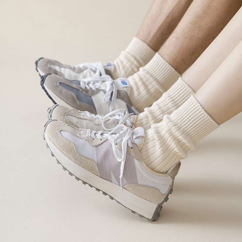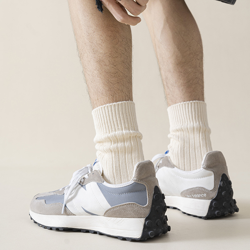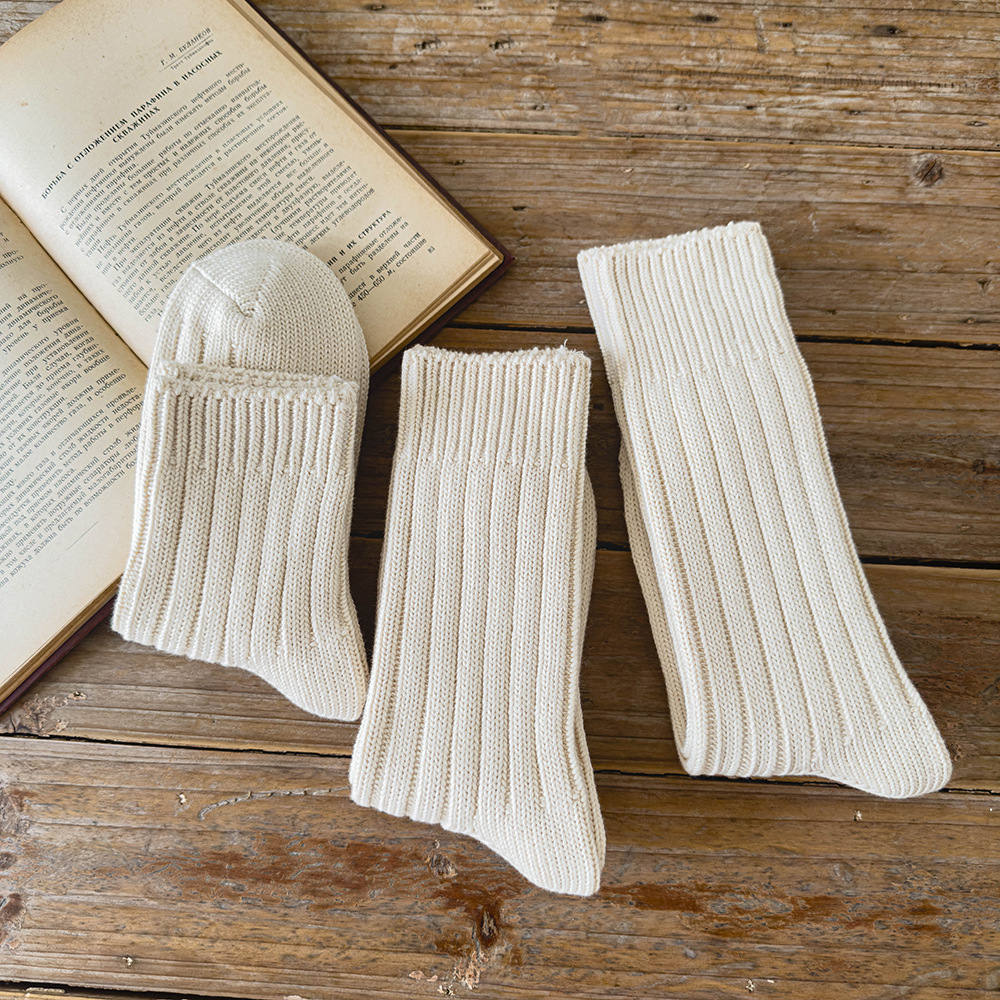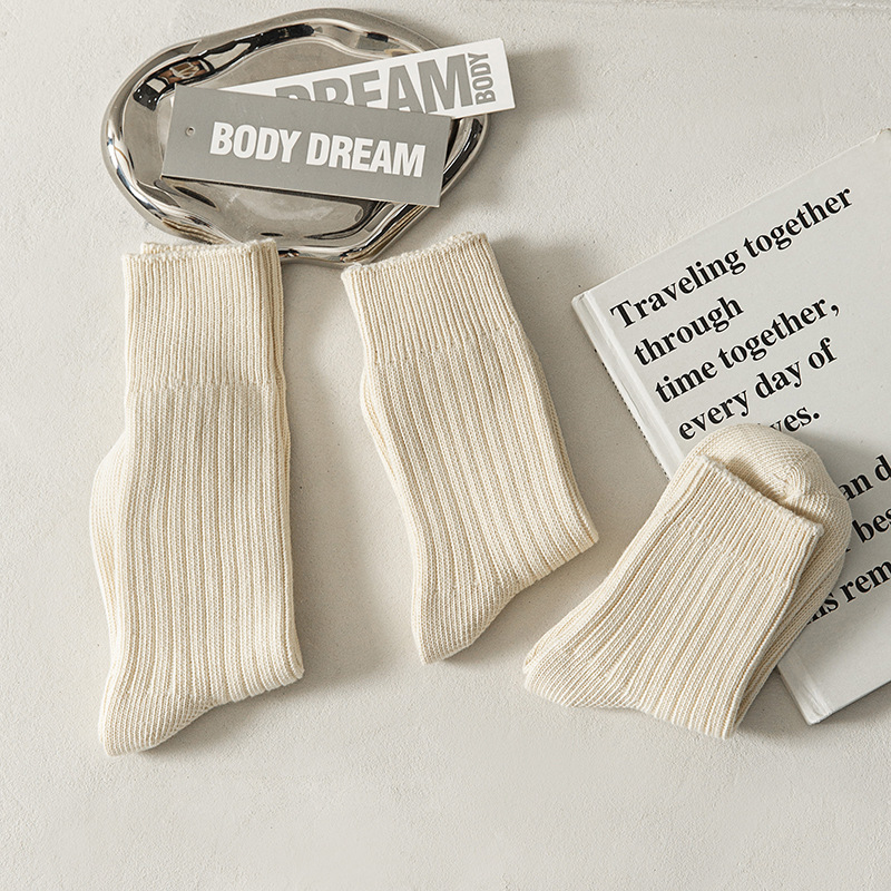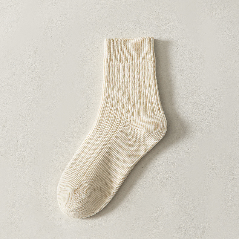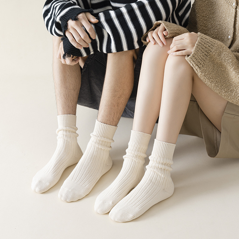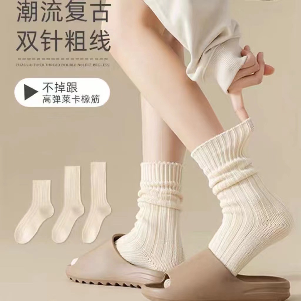 일본 복고풍 두꺼운 라인 중간 길이 양말 가을과 겨울 단색 면 양말 스타킹 어린이 니트 베이지 남성 및 여성 더미 양말스토어 가기