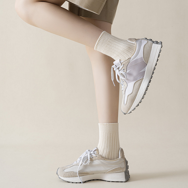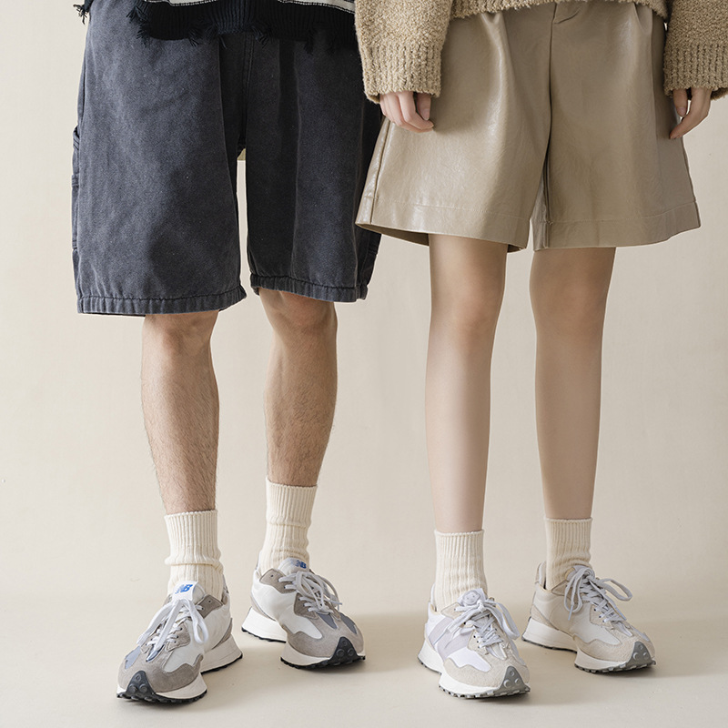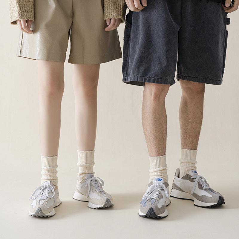 일본 복고풍 두꺼운 라인 중간 길이 양말 가을과 겨울 단색 면 양말 스타킹 어린이 니트 베이지 남성 및 여성 더미 양말