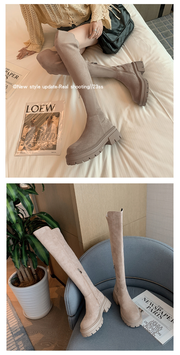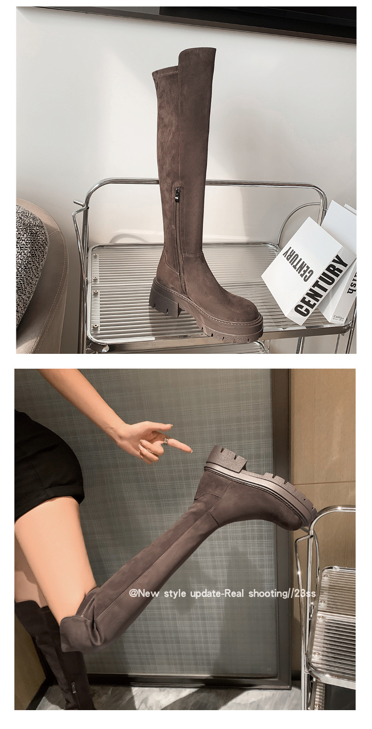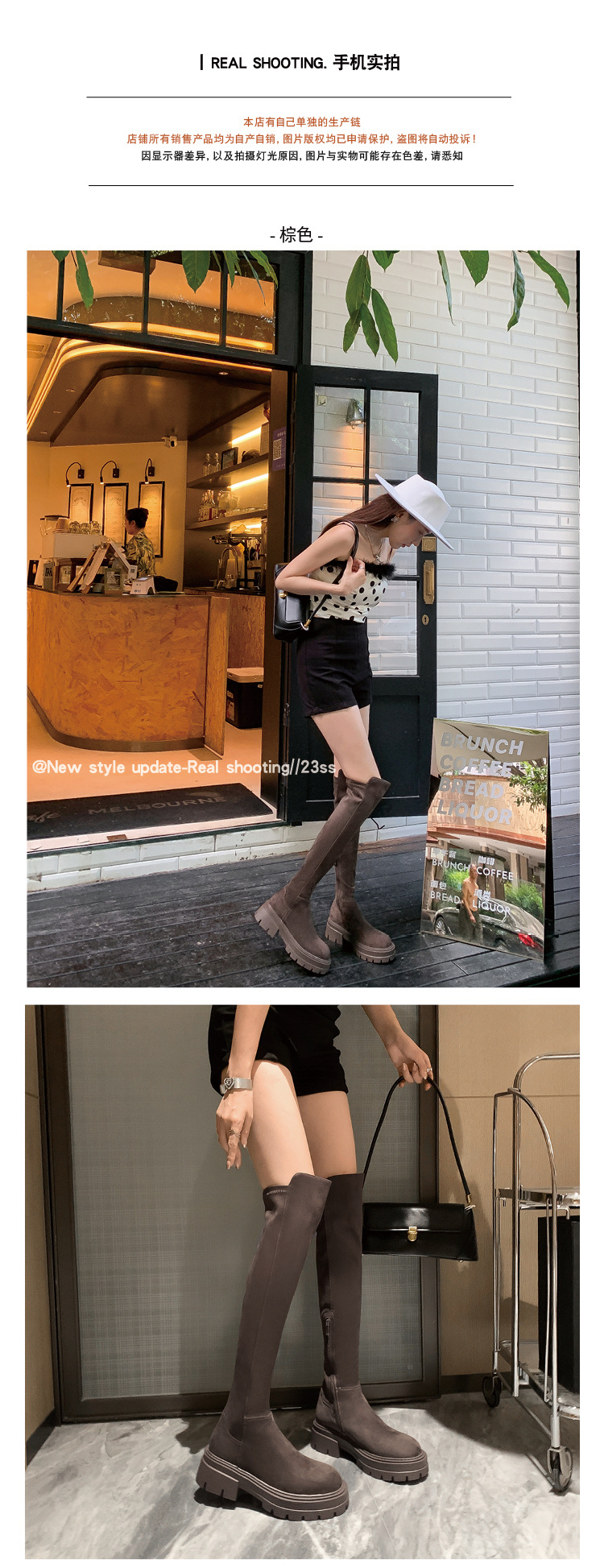 자몽 얼리 프로스트 하이 배럴 나이트 부츠 여성용 2023 새로운 스타일 롱 부츠 트렌디 한 두꺼운 바닥 슬리밍 대형 배럴 청키 힐 부츠스토어 가기