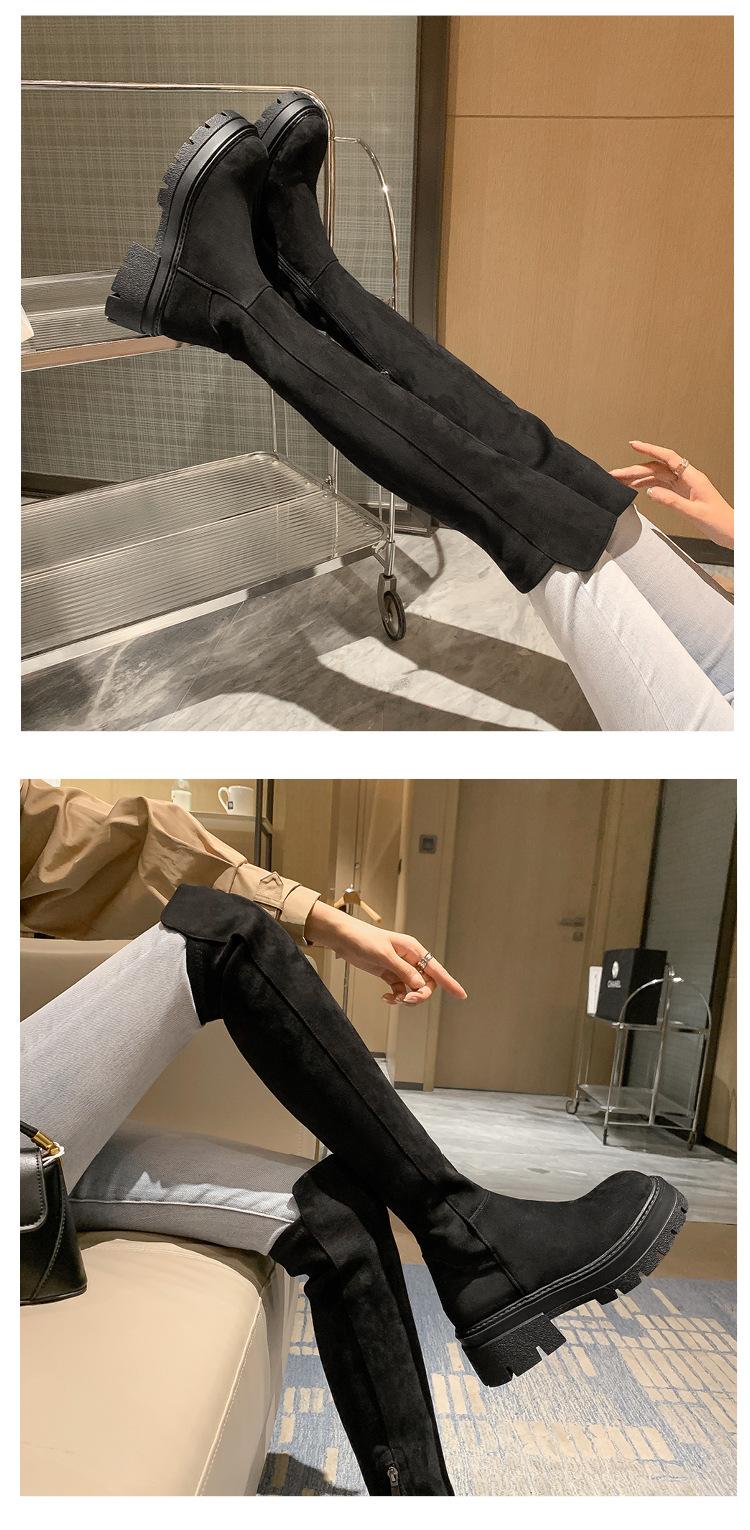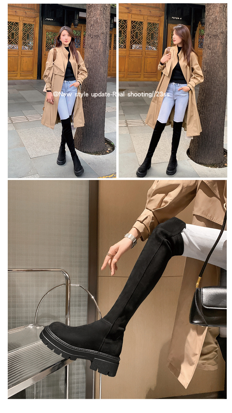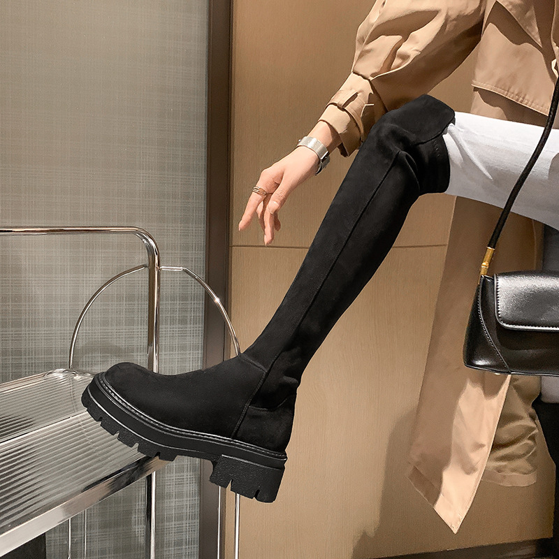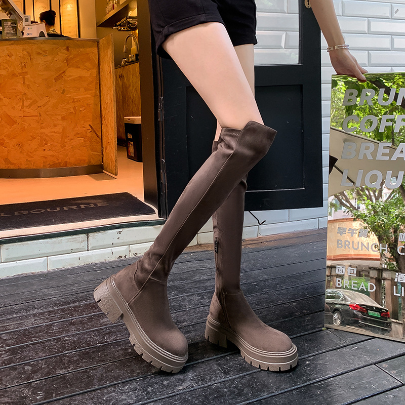 자몽 얼리 프로스트 하이 배럴 나이트 부츠 여성용 2023 새로운 스타일 롱 부츠 트렌디 한 두꺼운 바닥 슬리밍 대형 배럴 청키 힐 부츠스토어 가기