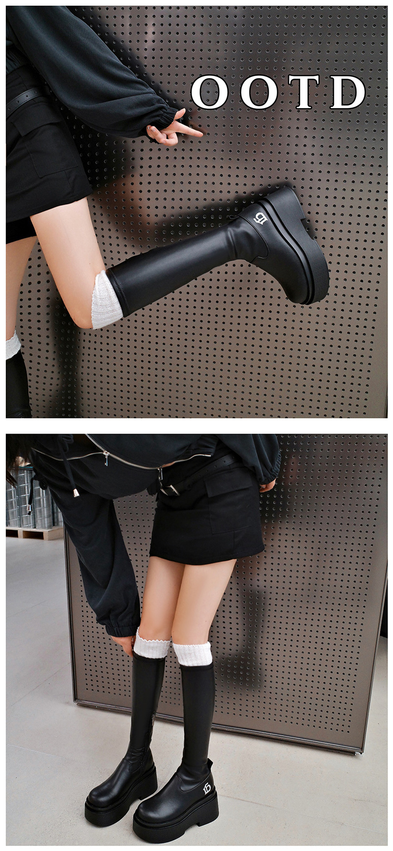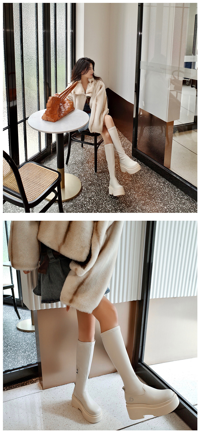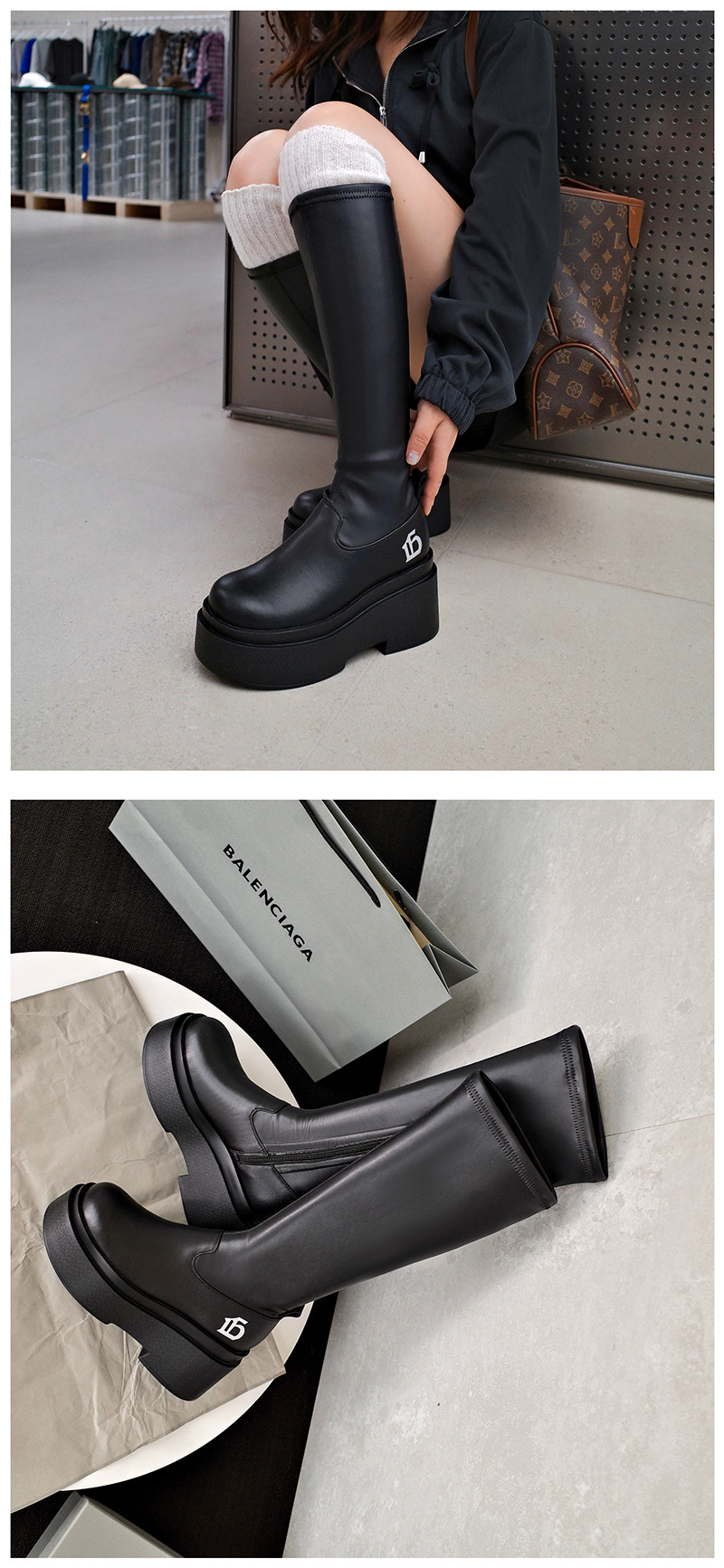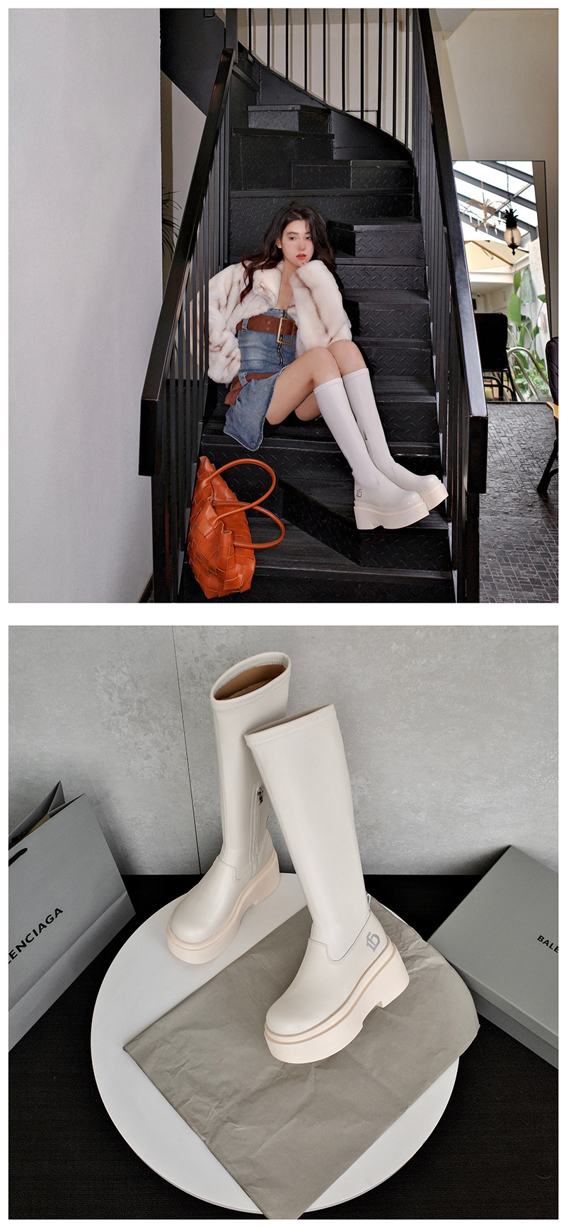 Lingge Studio 멋지게 보이는 두꺼운 밑창 스트레치 부츠 여성용 2023 나이트 부츠 얇은 부츠 그러나 무릎 향신료 부츠스토어 가기