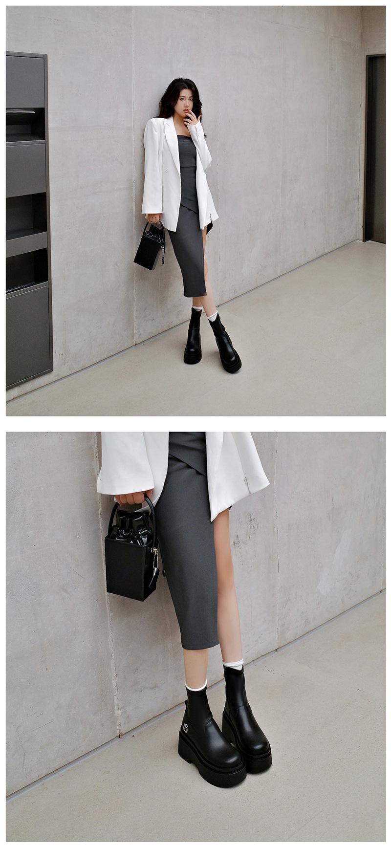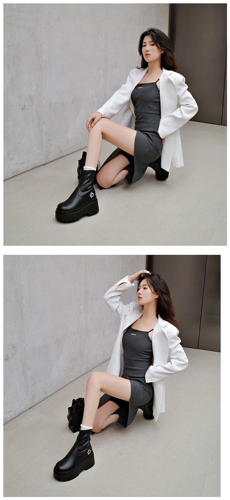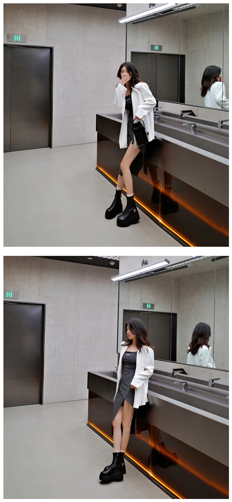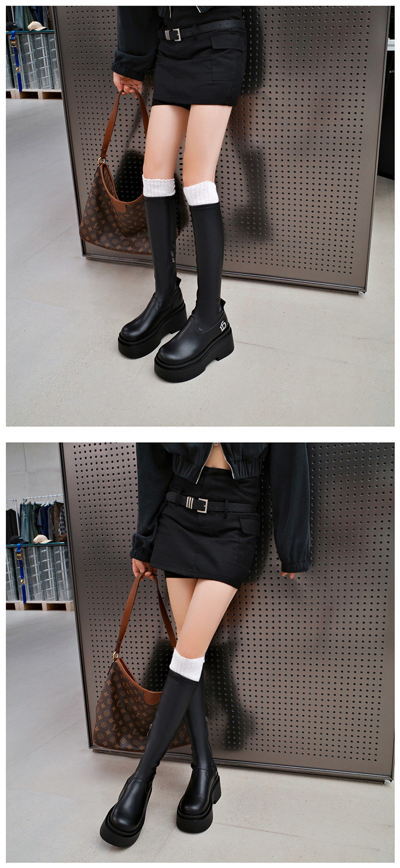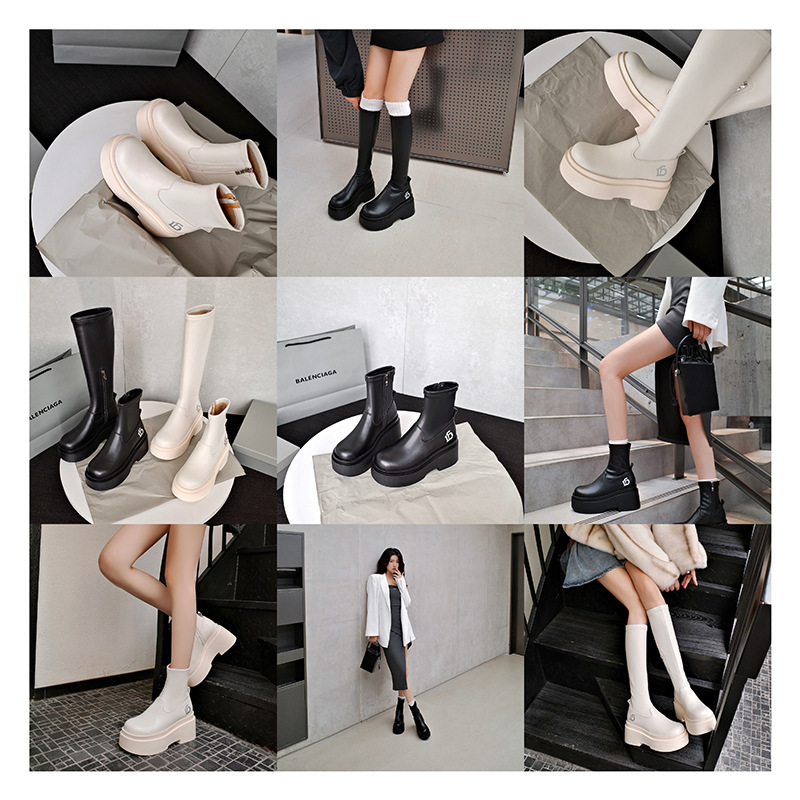 Lingge Studio 멋지게 보이는 두꺼운 밑창 스트레치 부츠 여성용 2023 나이트 부츠 얇은 부츠 그러나 무릎 향신료 부츠스토어 가기