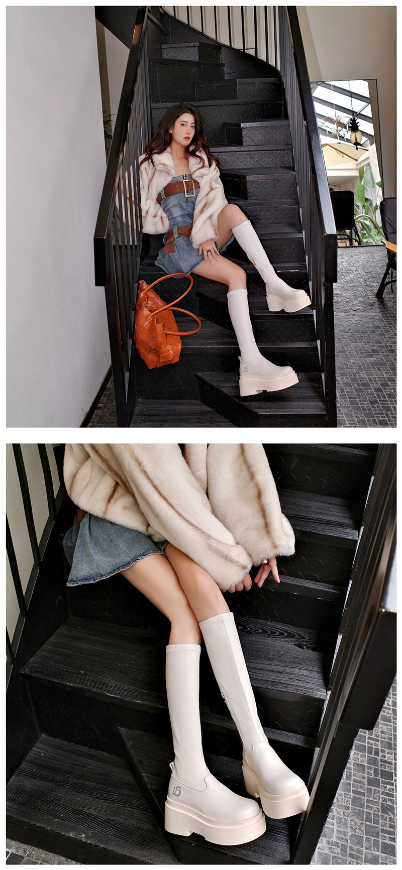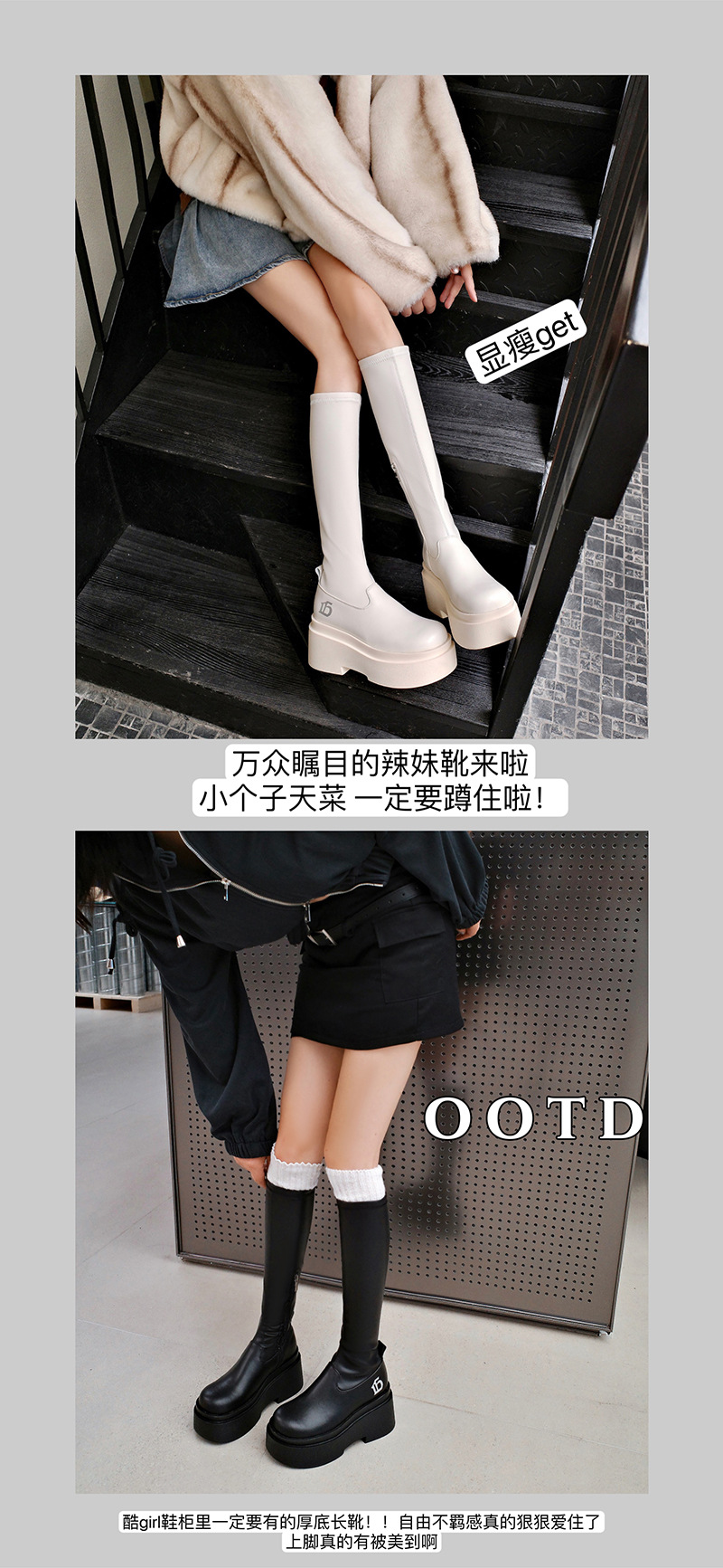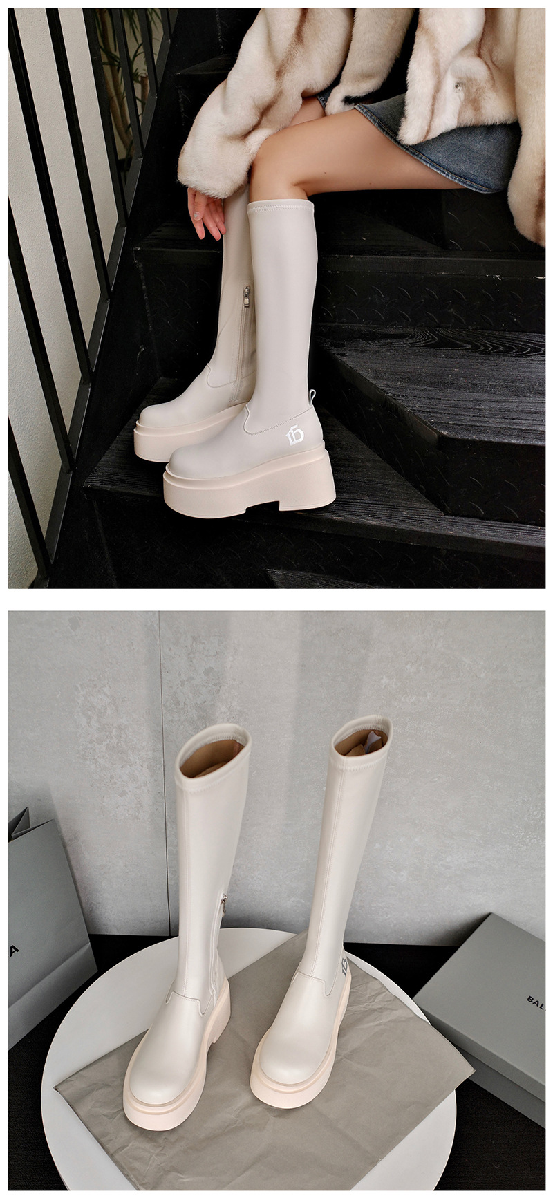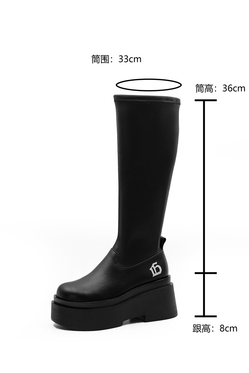 Lingge Studio 멋지게 보이는 두꺼운 밑창 스트레치 부츠 여성용 2023 나이트 부츠 얇은 부츠 그러나 무릎 향신료 부츠