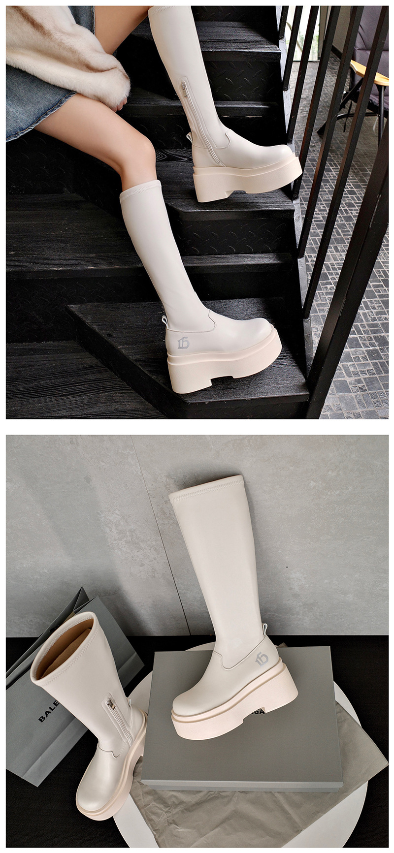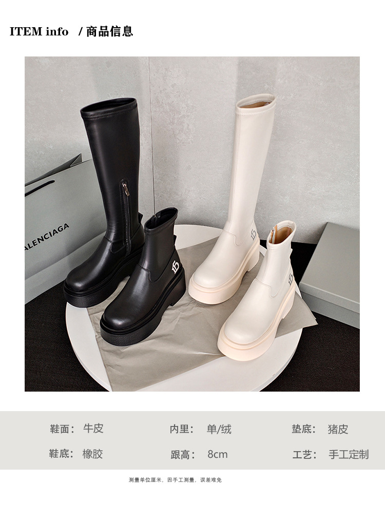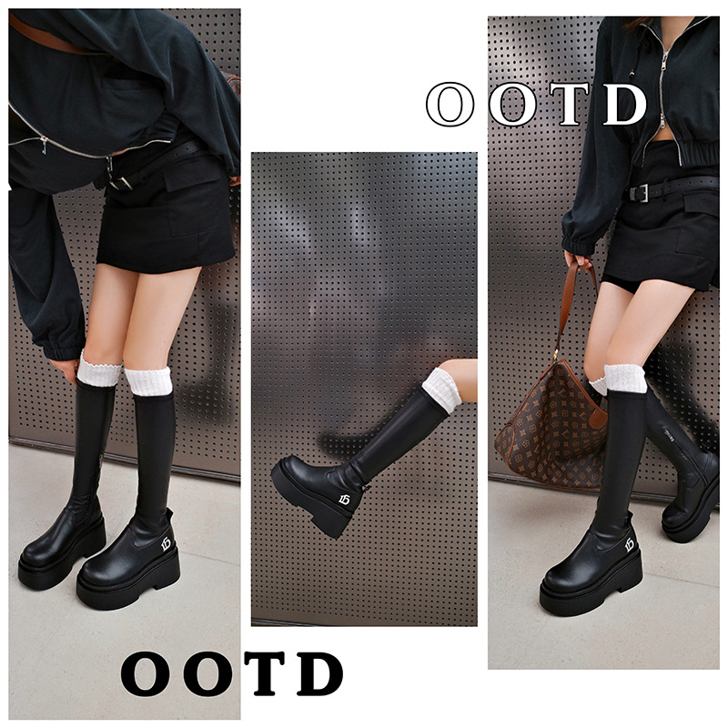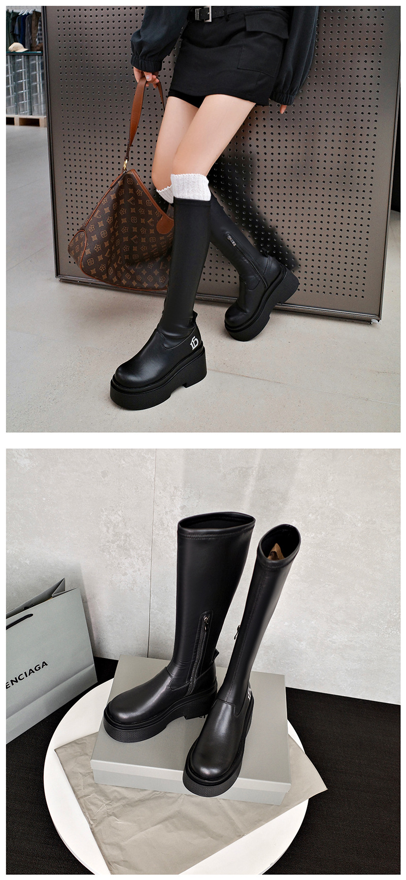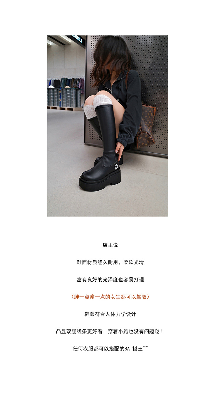 Lingge Studio 멋지게 보이는 두꺼운 밑창 스트레치 부츠 여성용 2023 나이트 부츠 얇은 부츠 그러나 무릎 향신료 부츠