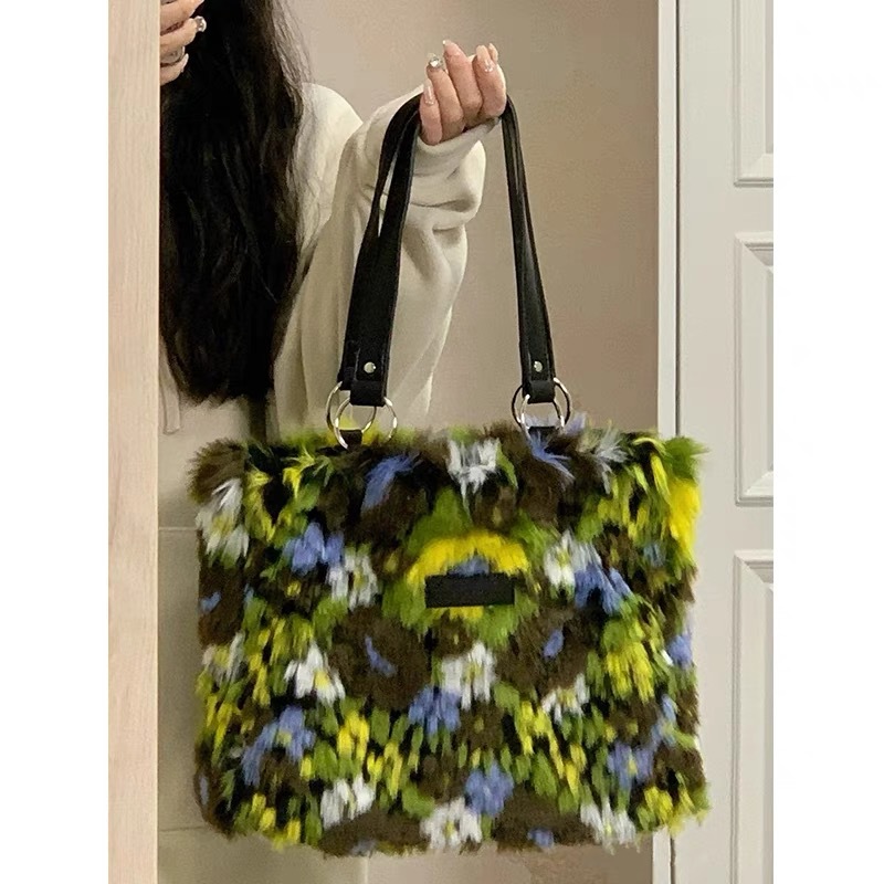 2023 가을과 겨울 뉴 플러시 백 유화 토트 백 신선한 크리에이티브 대용량 마오 마오 백 개성 숄더백 여성