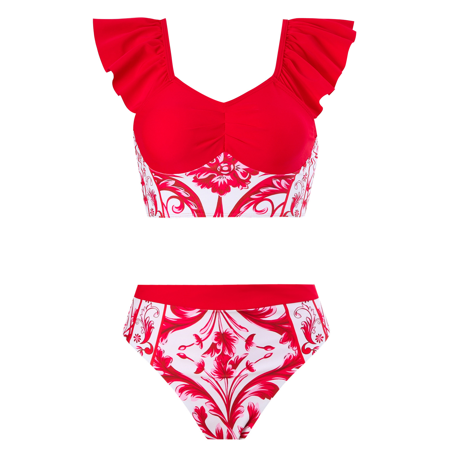 2025现货欧美性感连体泳衣女荷叶边两件套网纱裙热卖爆款泳装套装