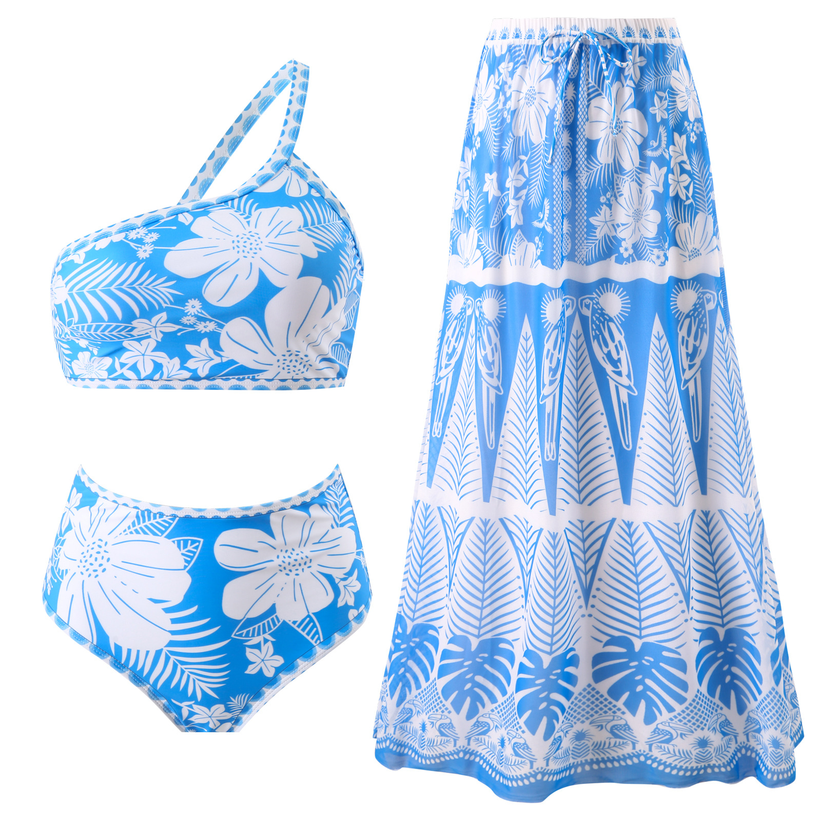 2025欧美新款分体三件套比基尼泳衣女显瘦外贸泳装套装锦纶裙子