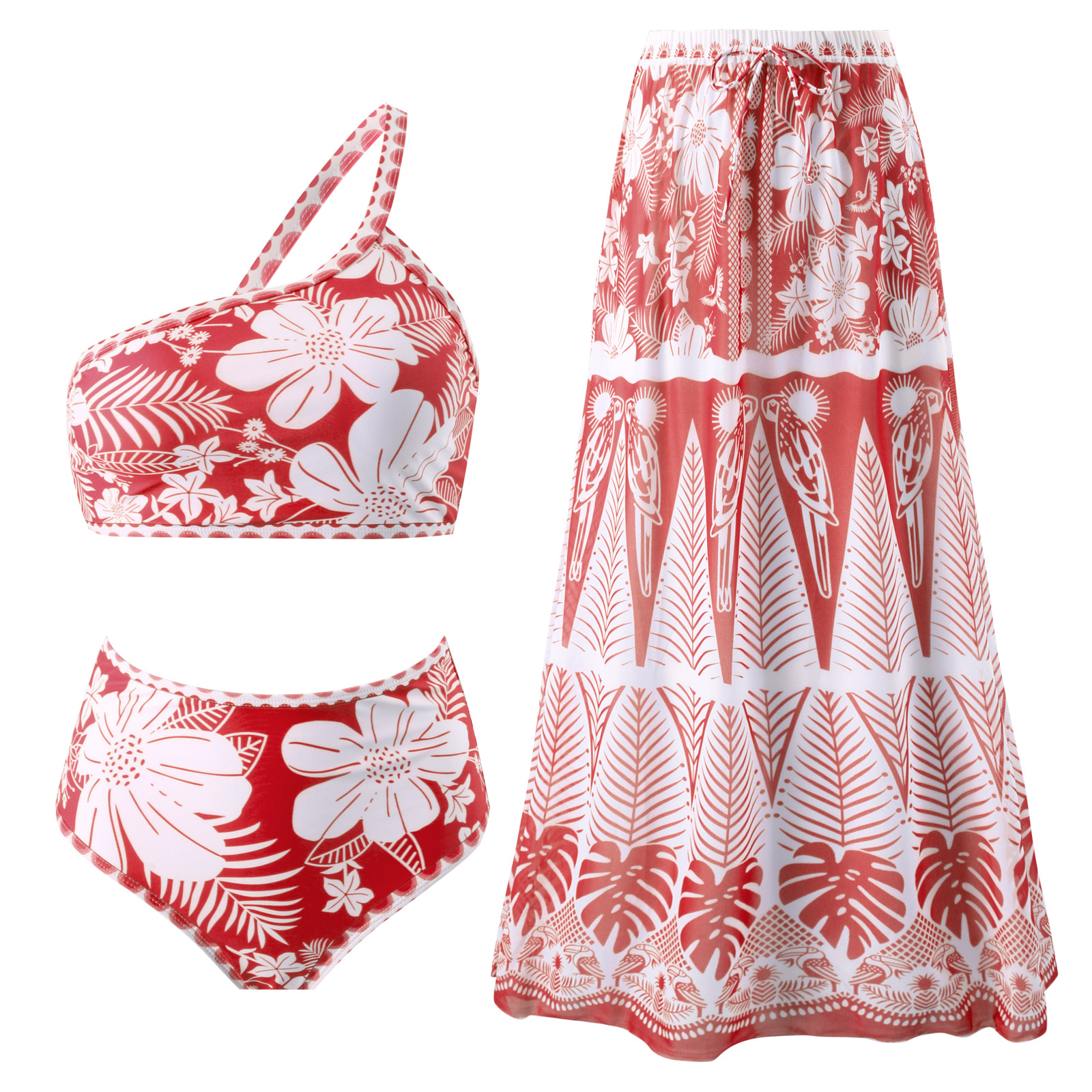 2024新款外贸聚拢比基尼性感高腰bikini分体泳衣套装批发雪纺长裙