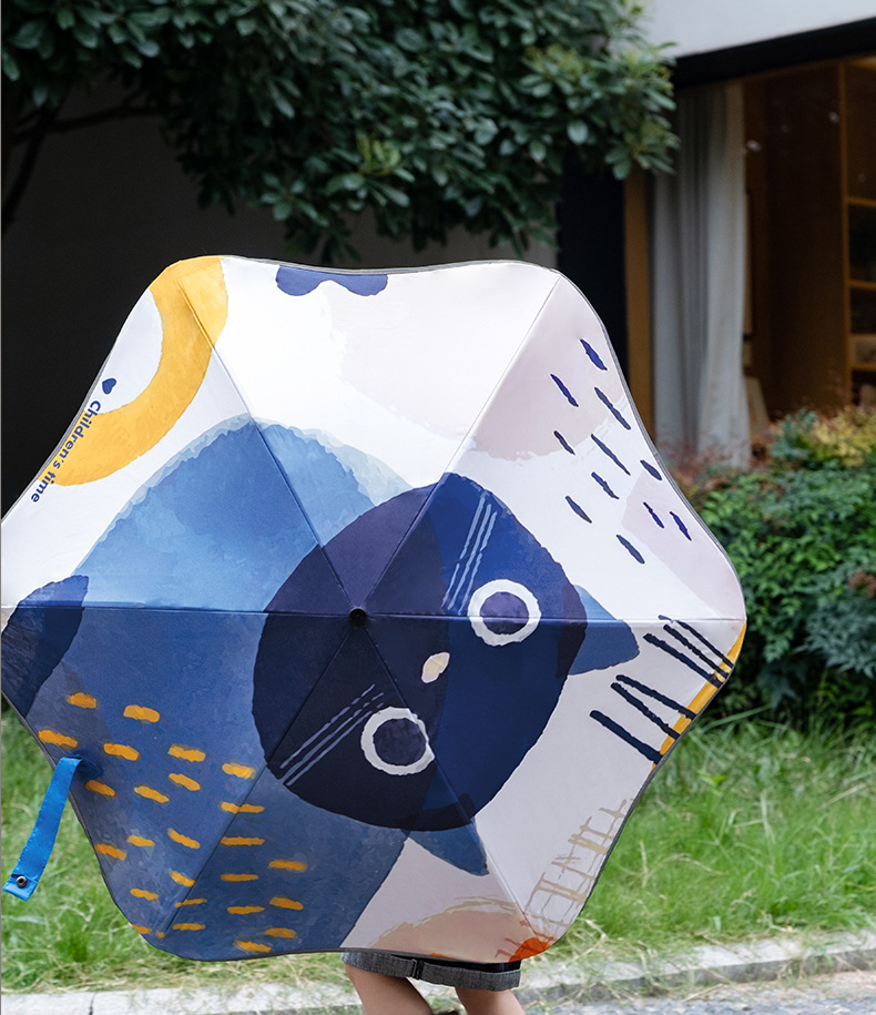 공장 둥근 모서리 어린이 우산 반사 손 클램핑 방지 우산 태양 보호 우산 만화 섬유 뼈