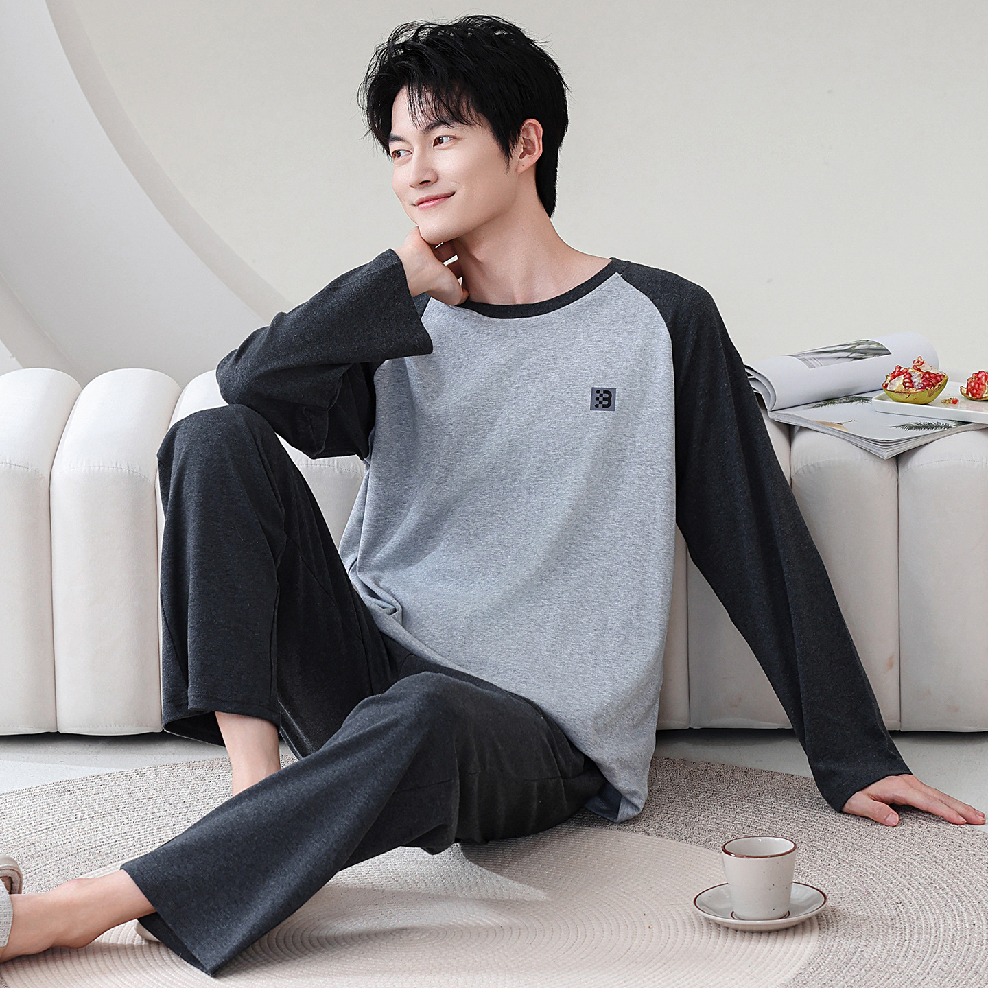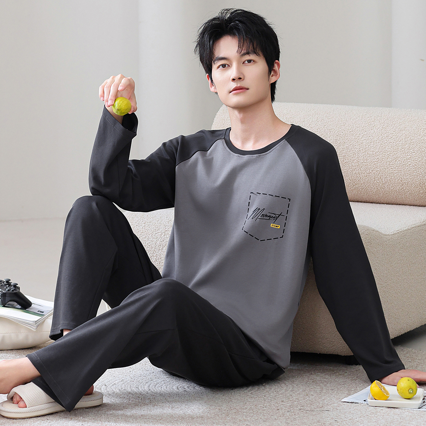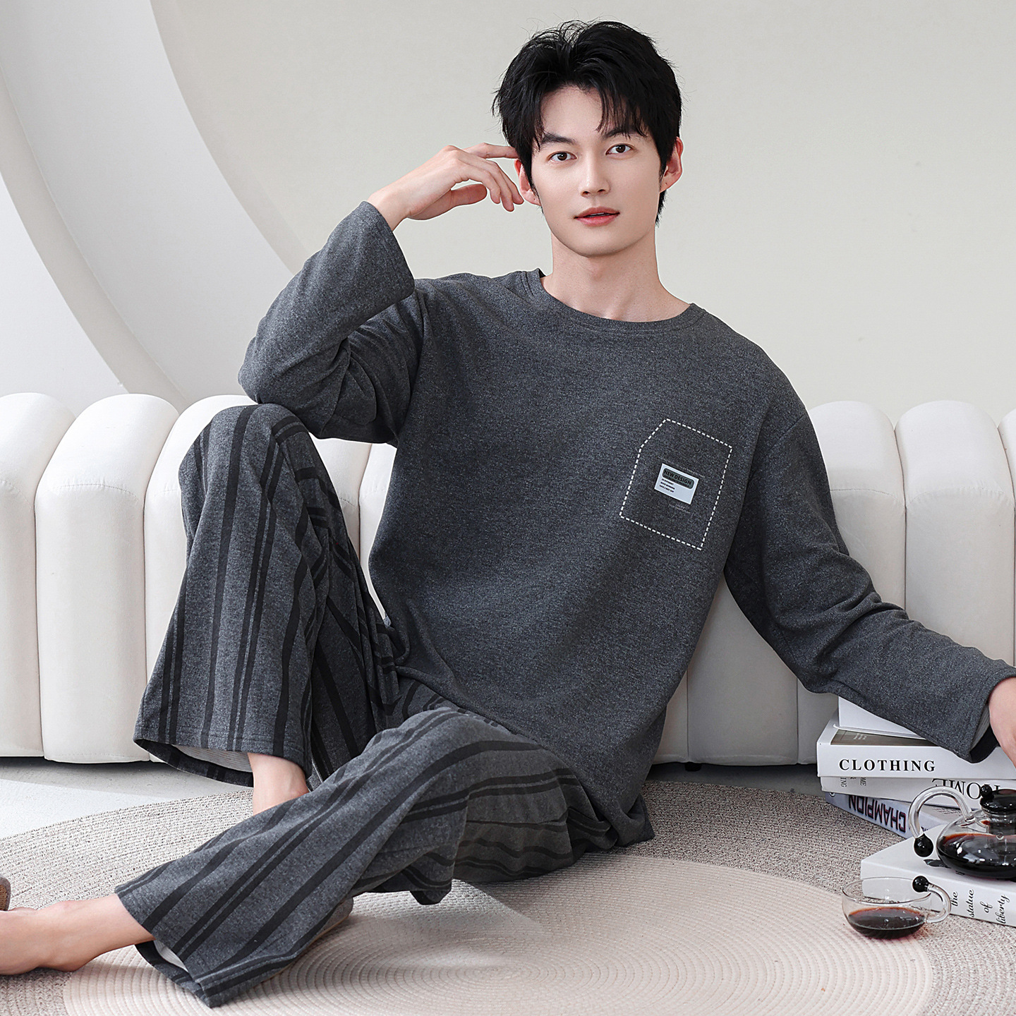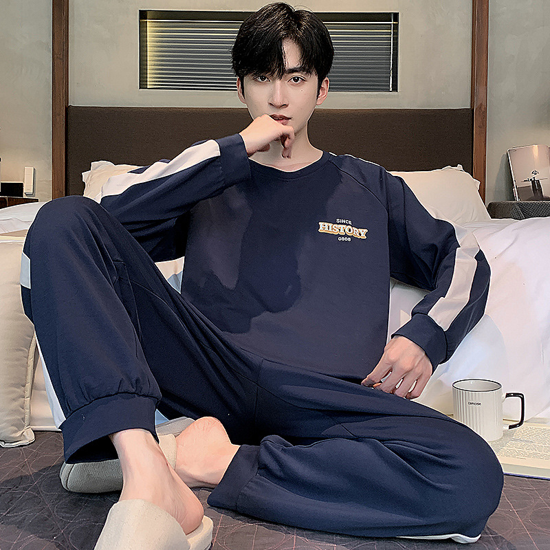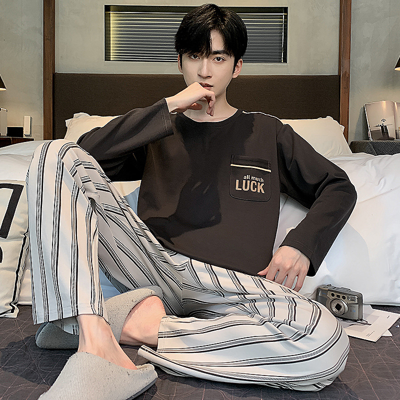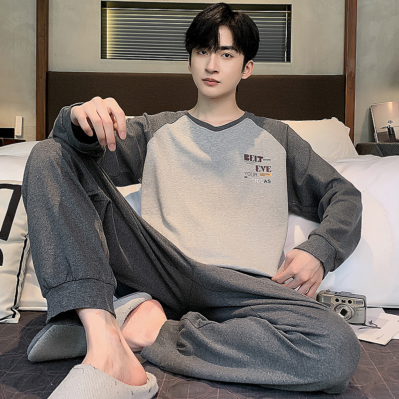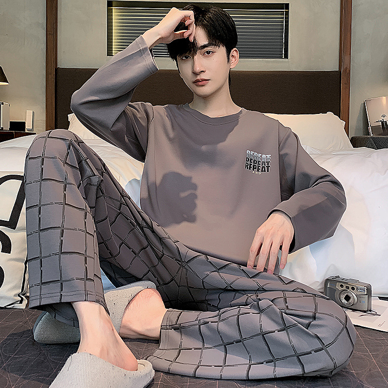 100% 면화 남성 잠옷 봄과 가을 풀오버 긴 소매 유스 코튼 캐주얼 홈 겉옷 세트스토어 가기