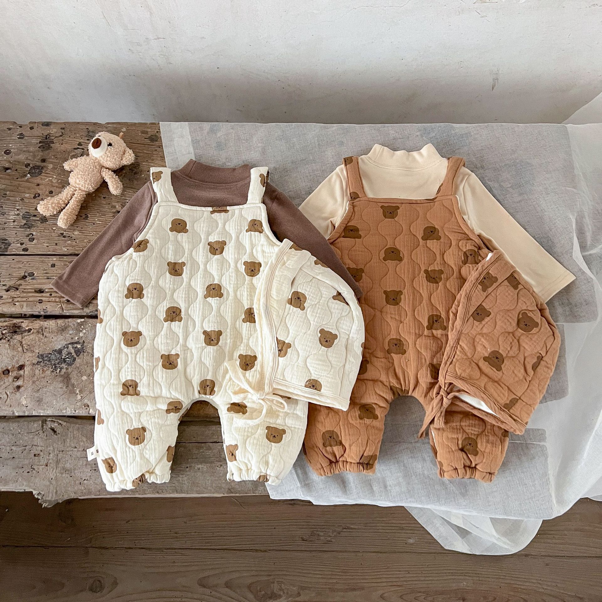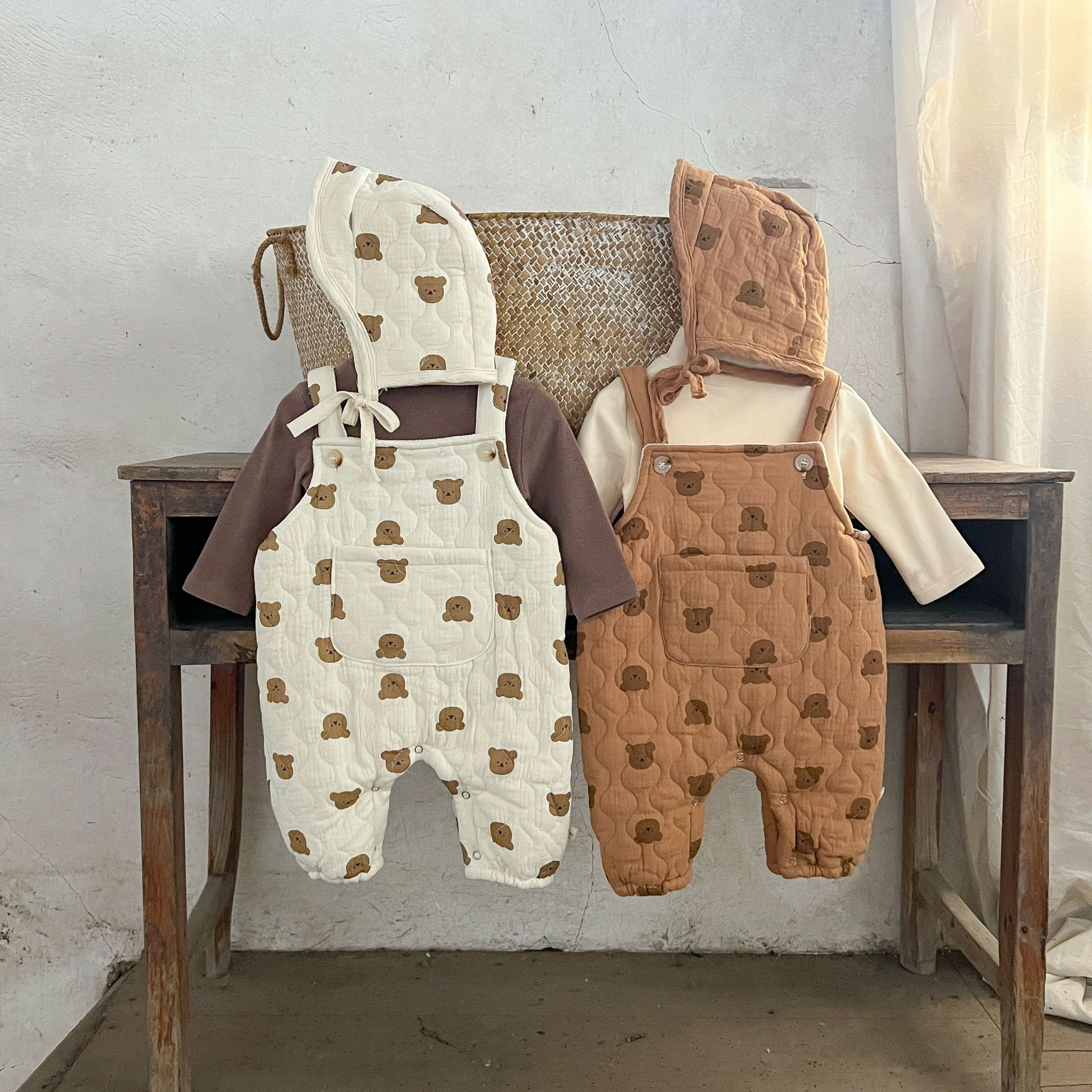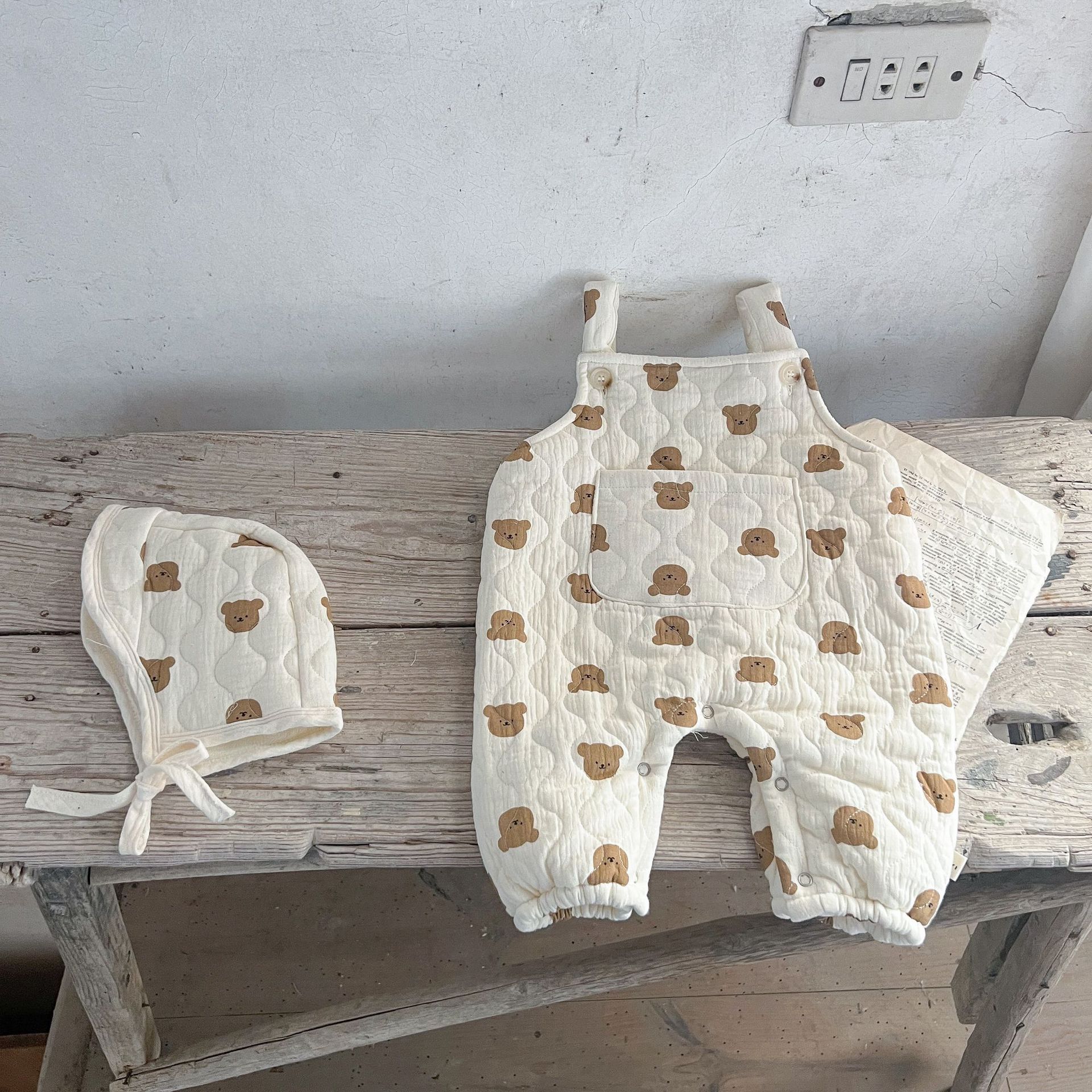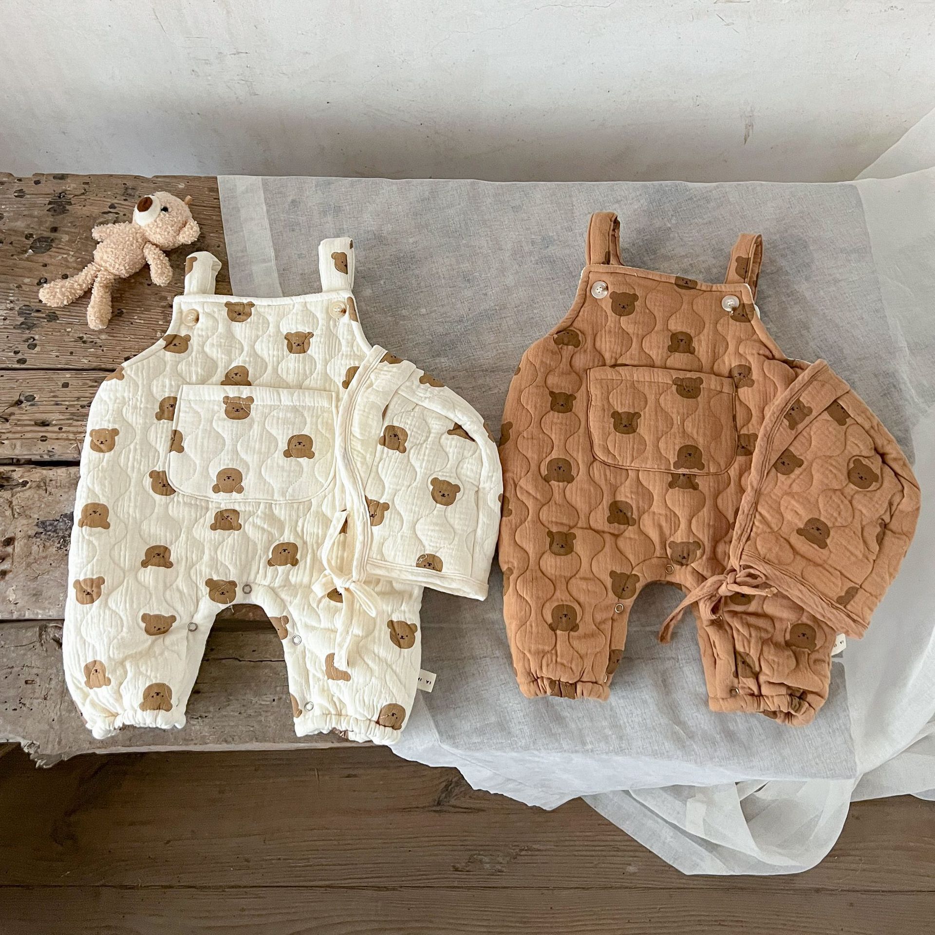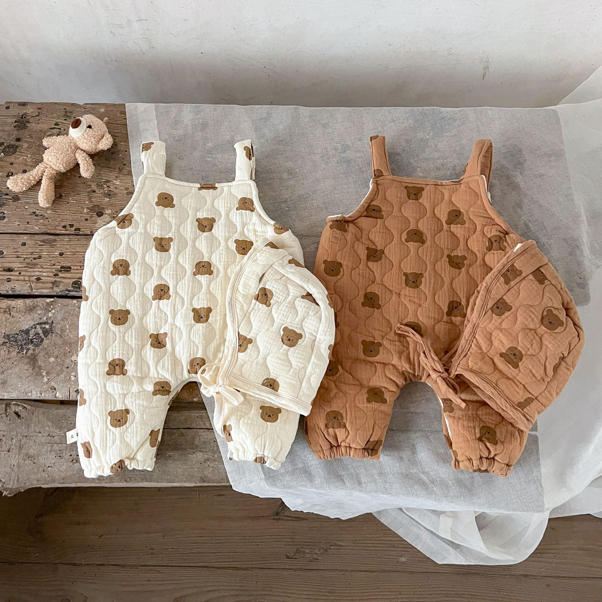 아기의 가을과 겨울 옷 귀여운 아기의 면 패딩 기모 곰 긴 등산 옷 두꺼운 따뜻한 신생아 세트