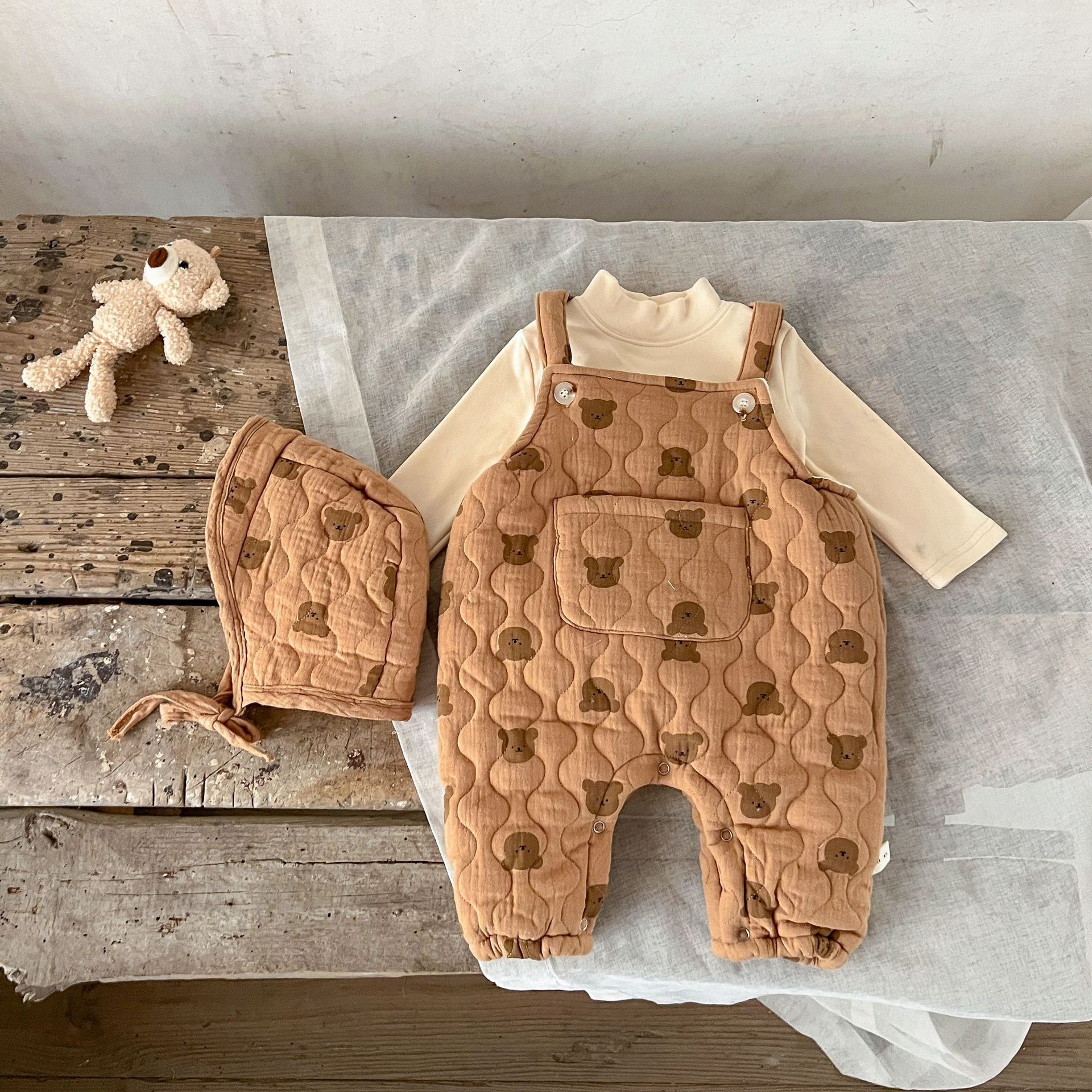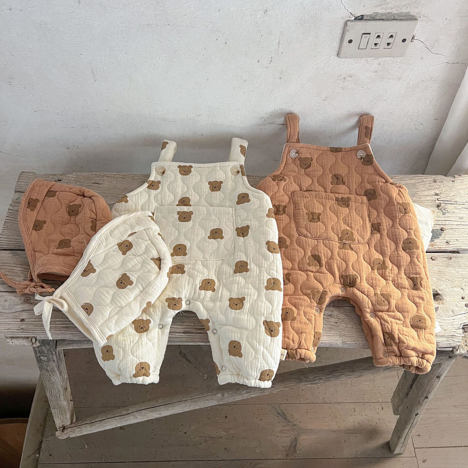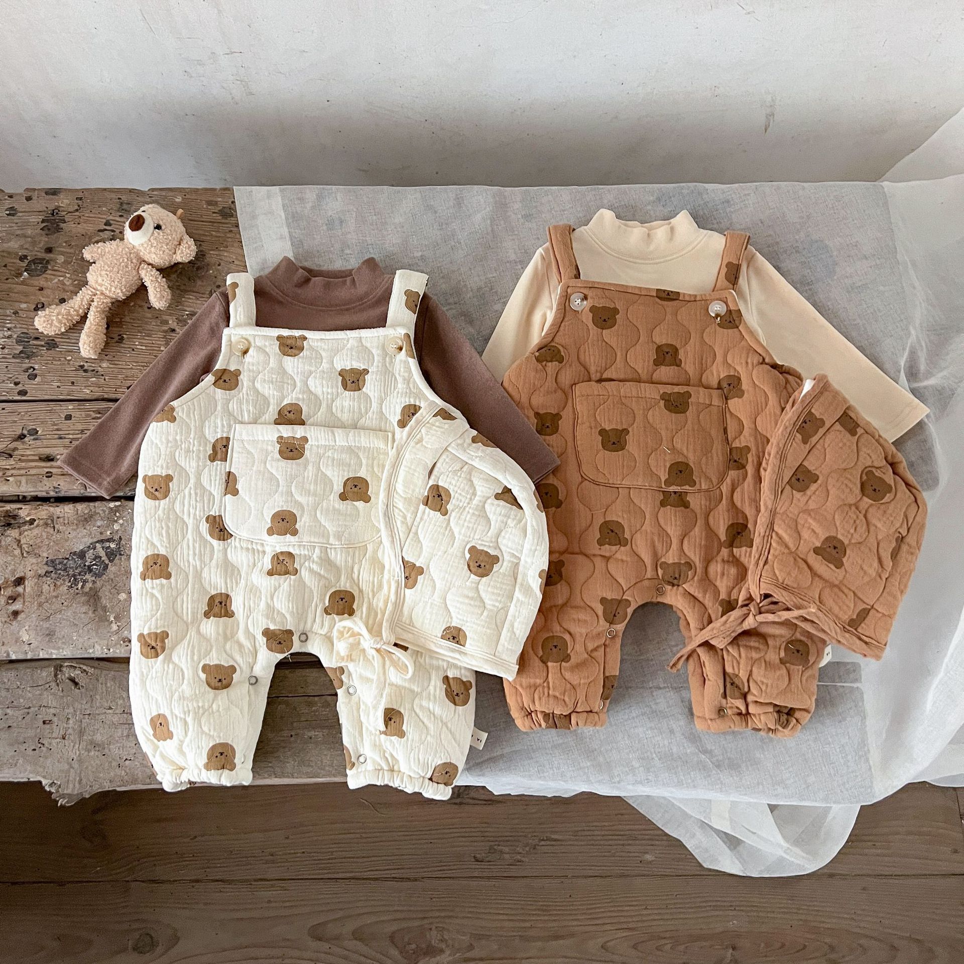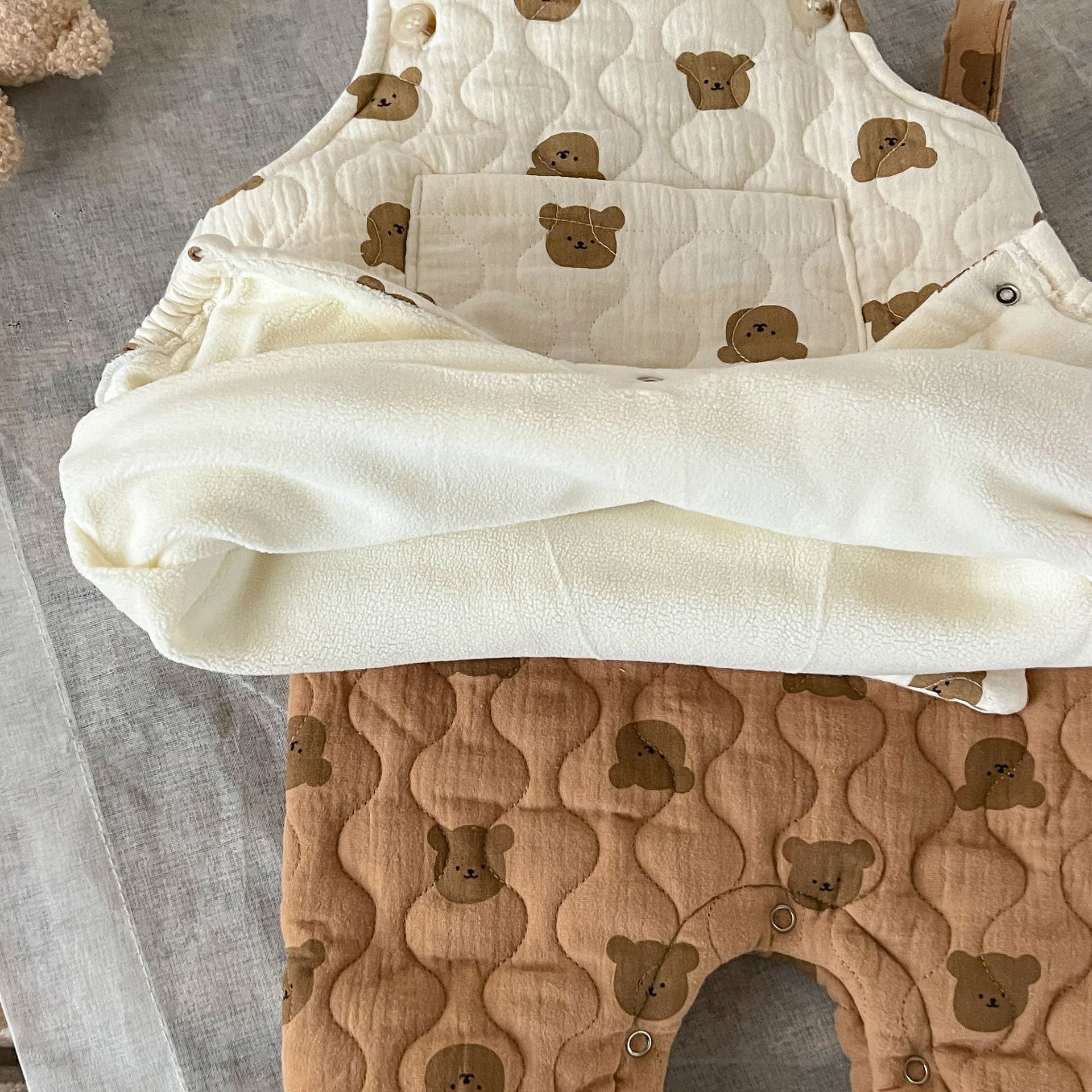 아기의 가을과 겨울 옷 귀여운 아기의 면 패딩 기모 곰 긴 등산 옷 두꺼운 따뜻한 신생아 세트