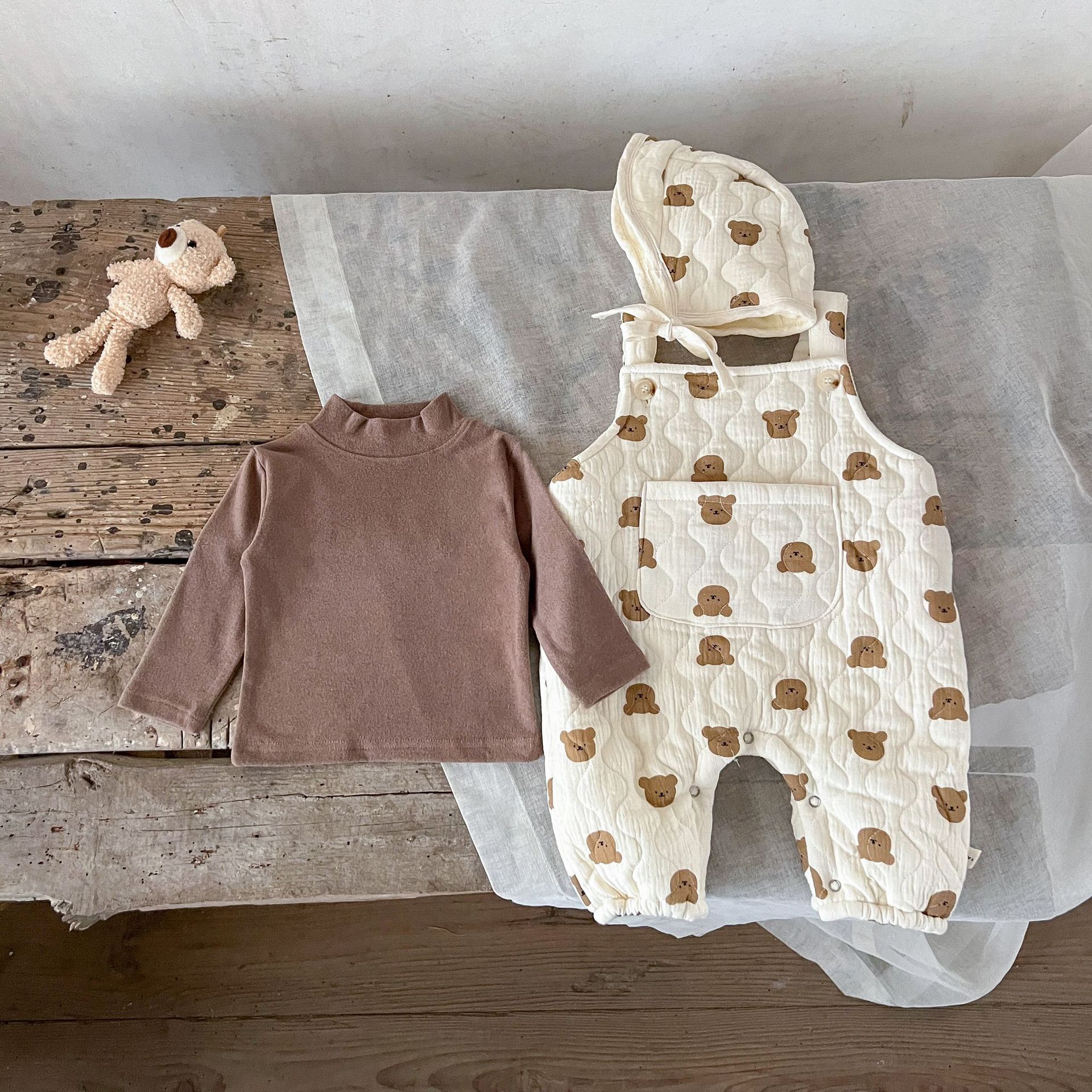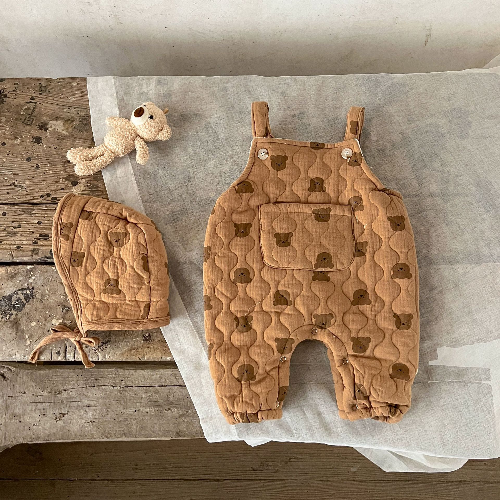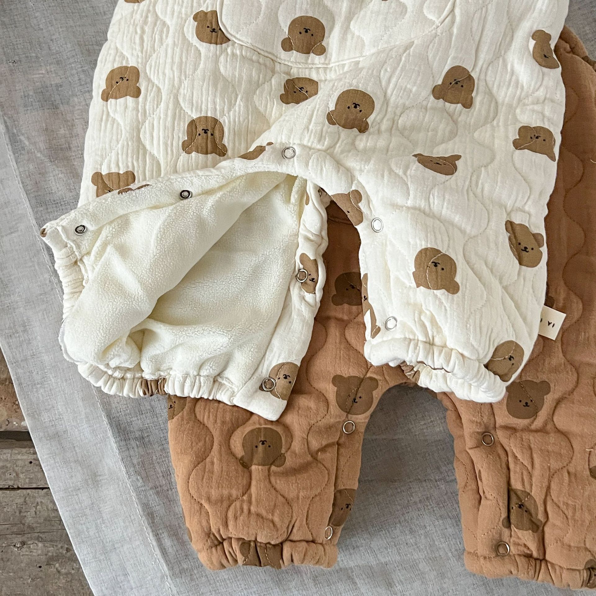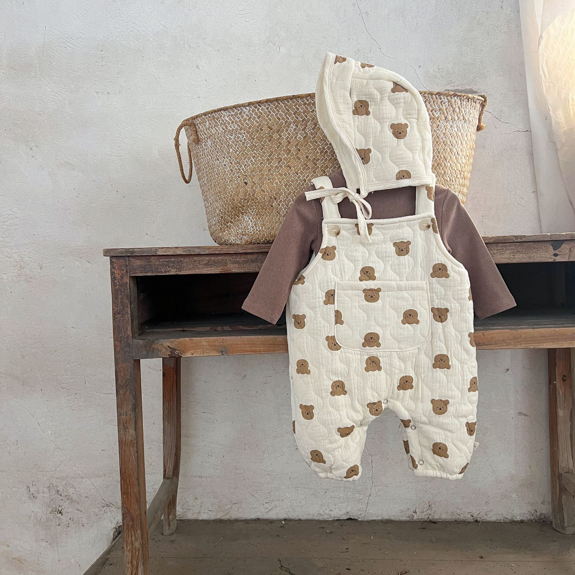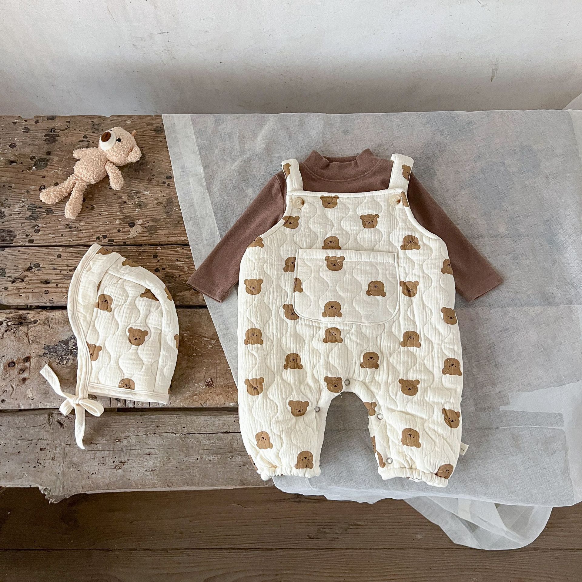 아기의 가을과 겨울 옷 귀여운 아기의 면 패딩 기모 곰 긴 등산 옷 두꺼운 따뜻한 신생아 세트