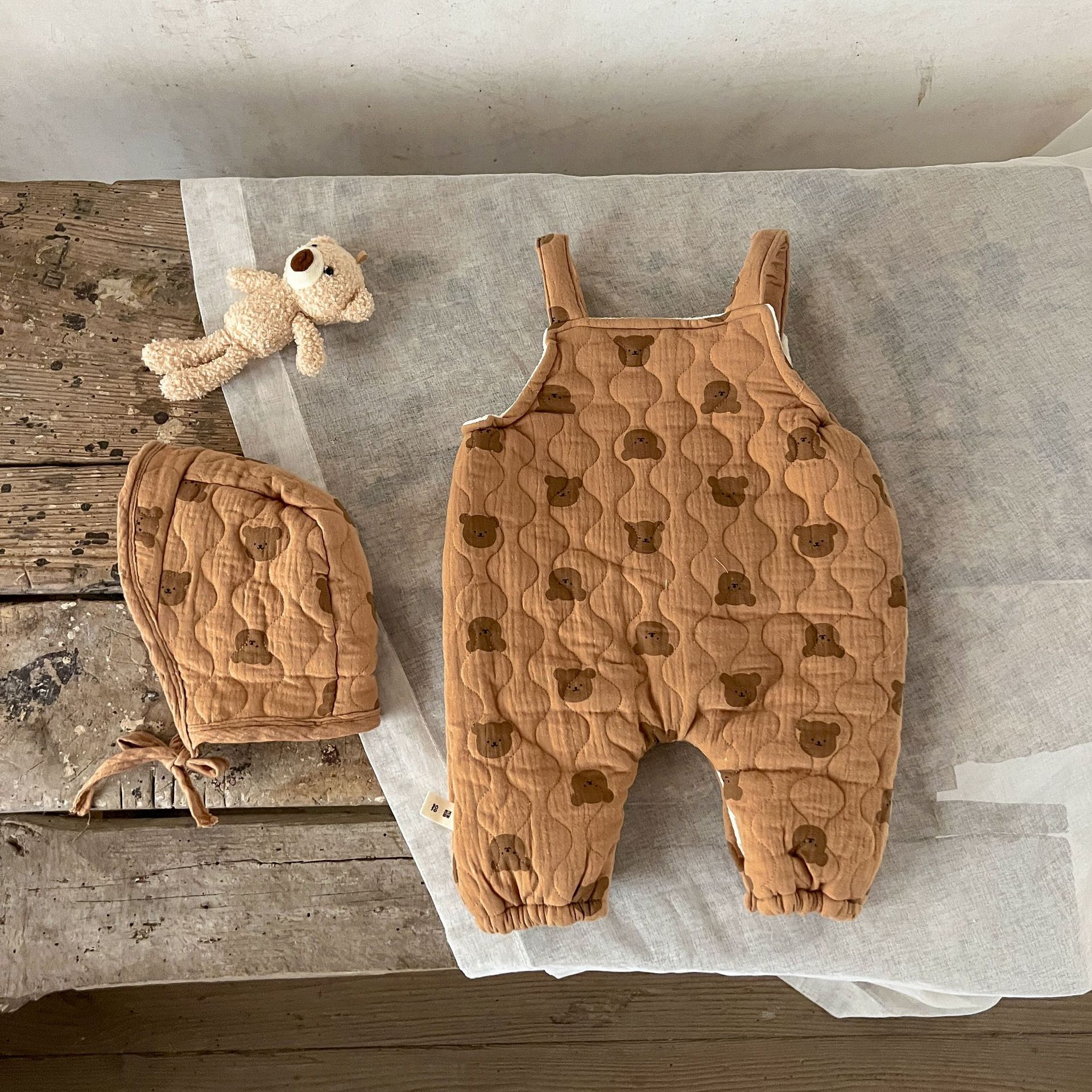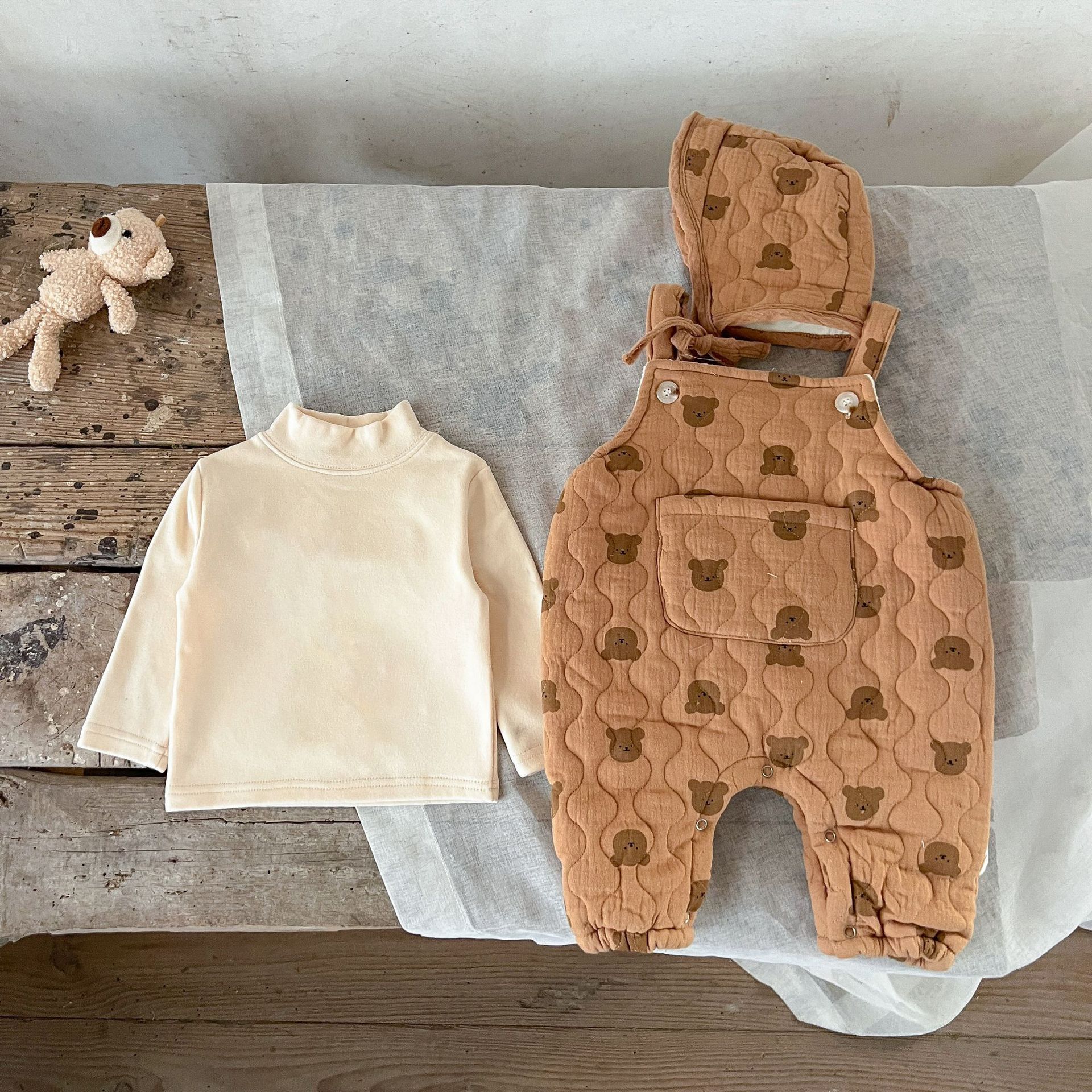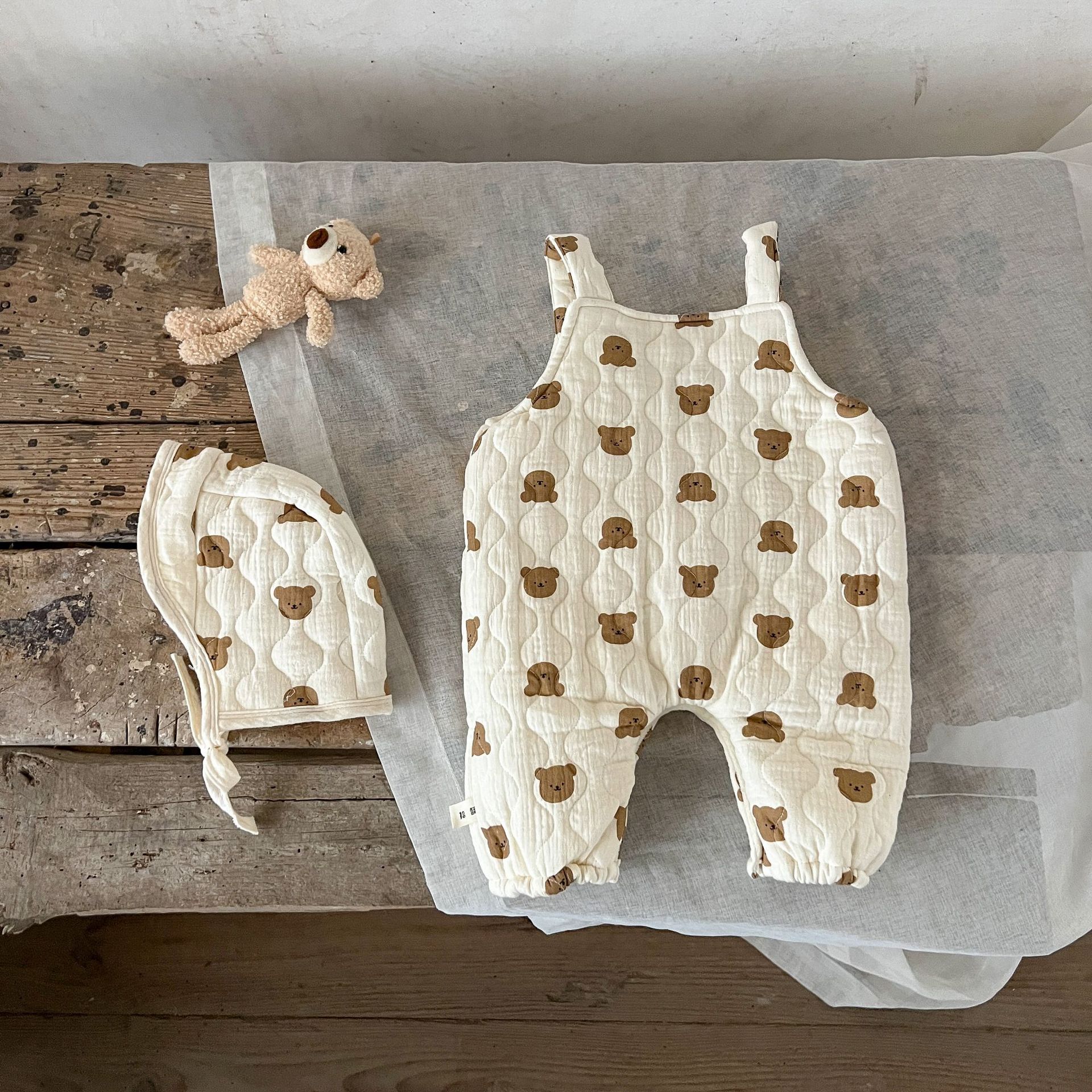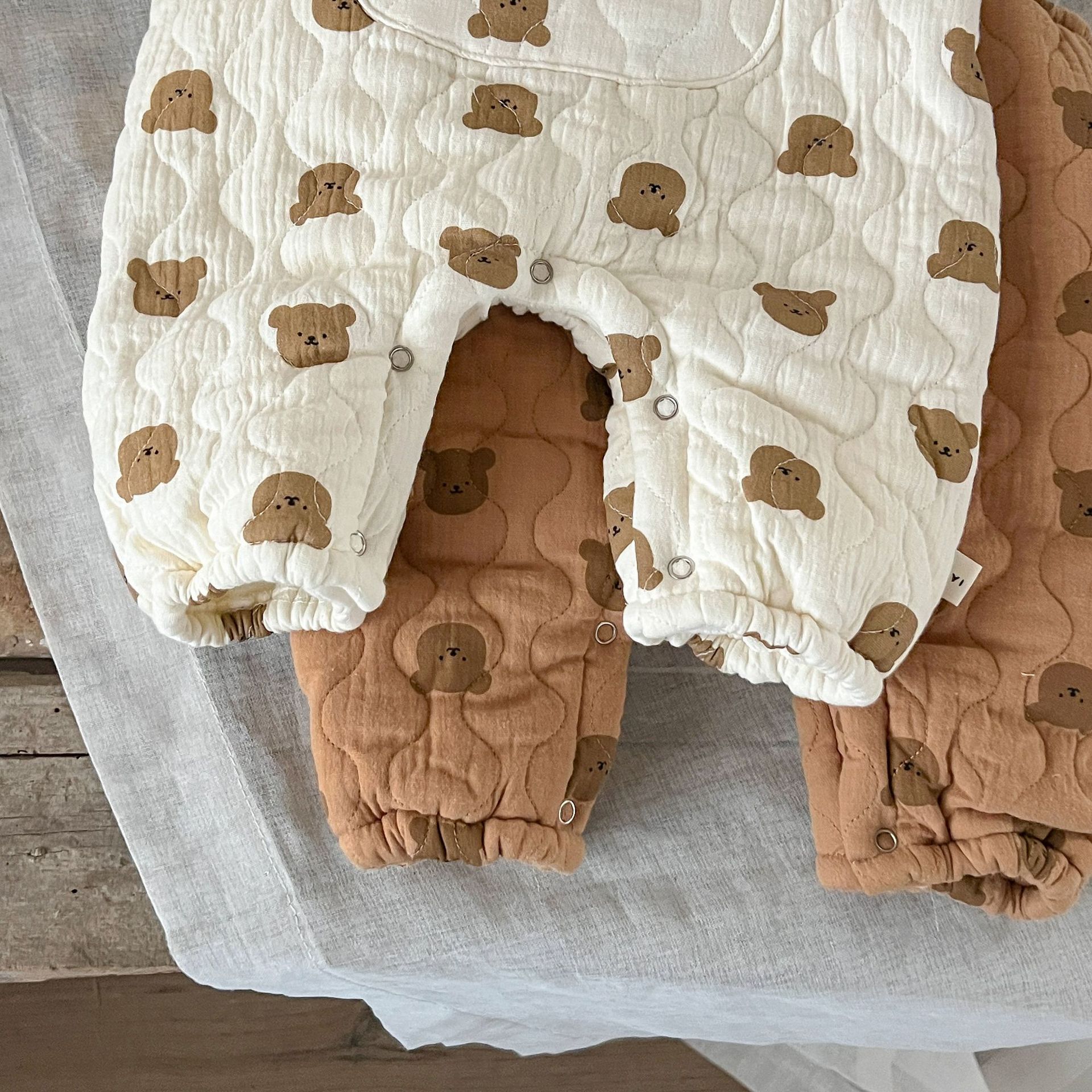 아기의 가을과 겨울 옷 귀여운 아기의 면 패딩 기모 곰 긴 등산 옷 두꺼운 따뜻한 신생아 세트