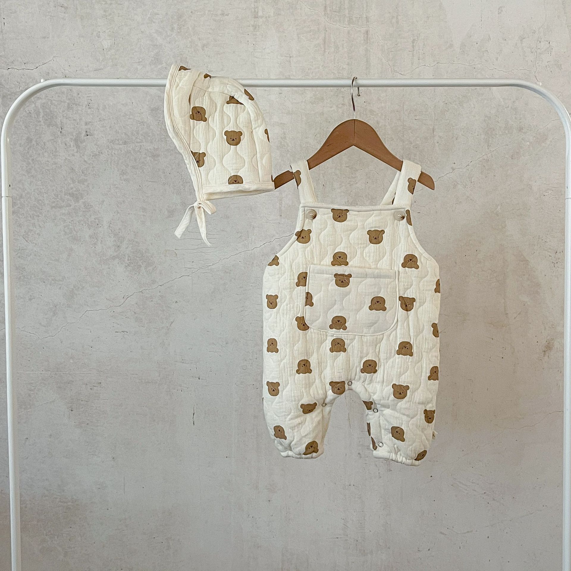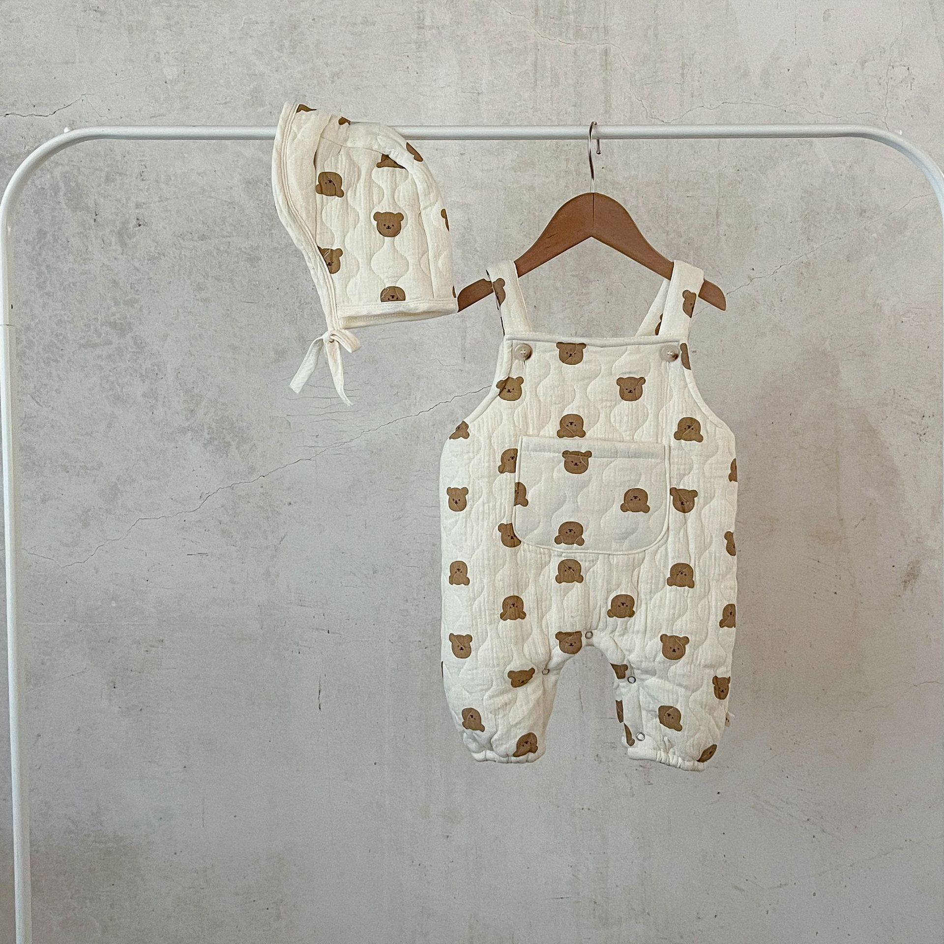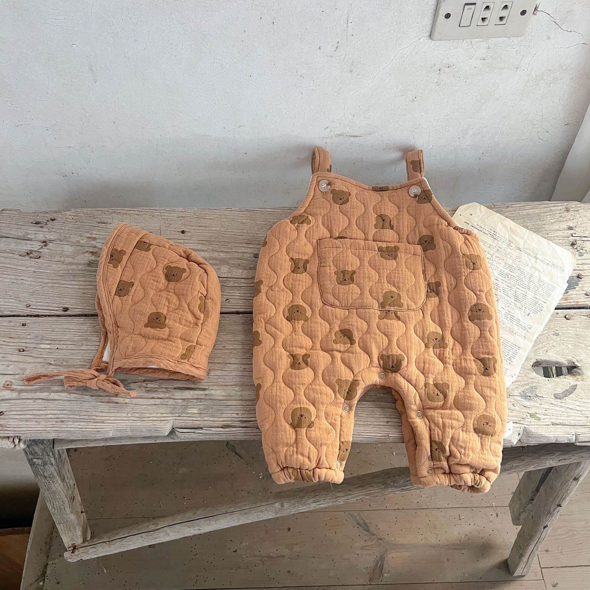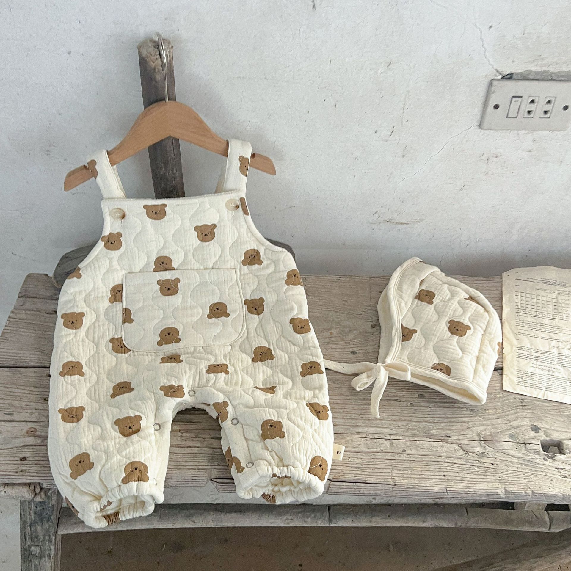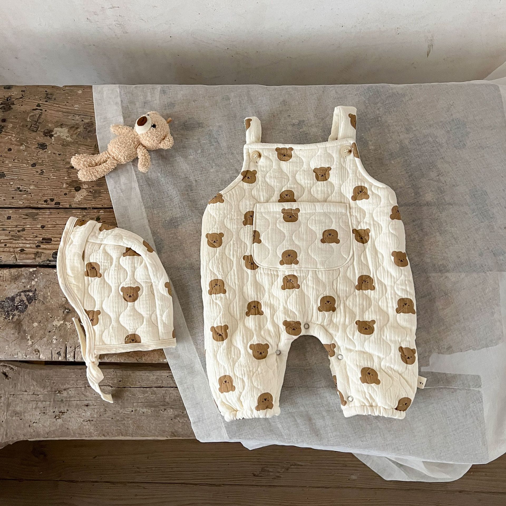 아기의 가을과 겨울 옷 귀여운 아기의 면 패딩 기모 곰 긴 등산 옷 두꺼운 따뜻한 신생아 세트
