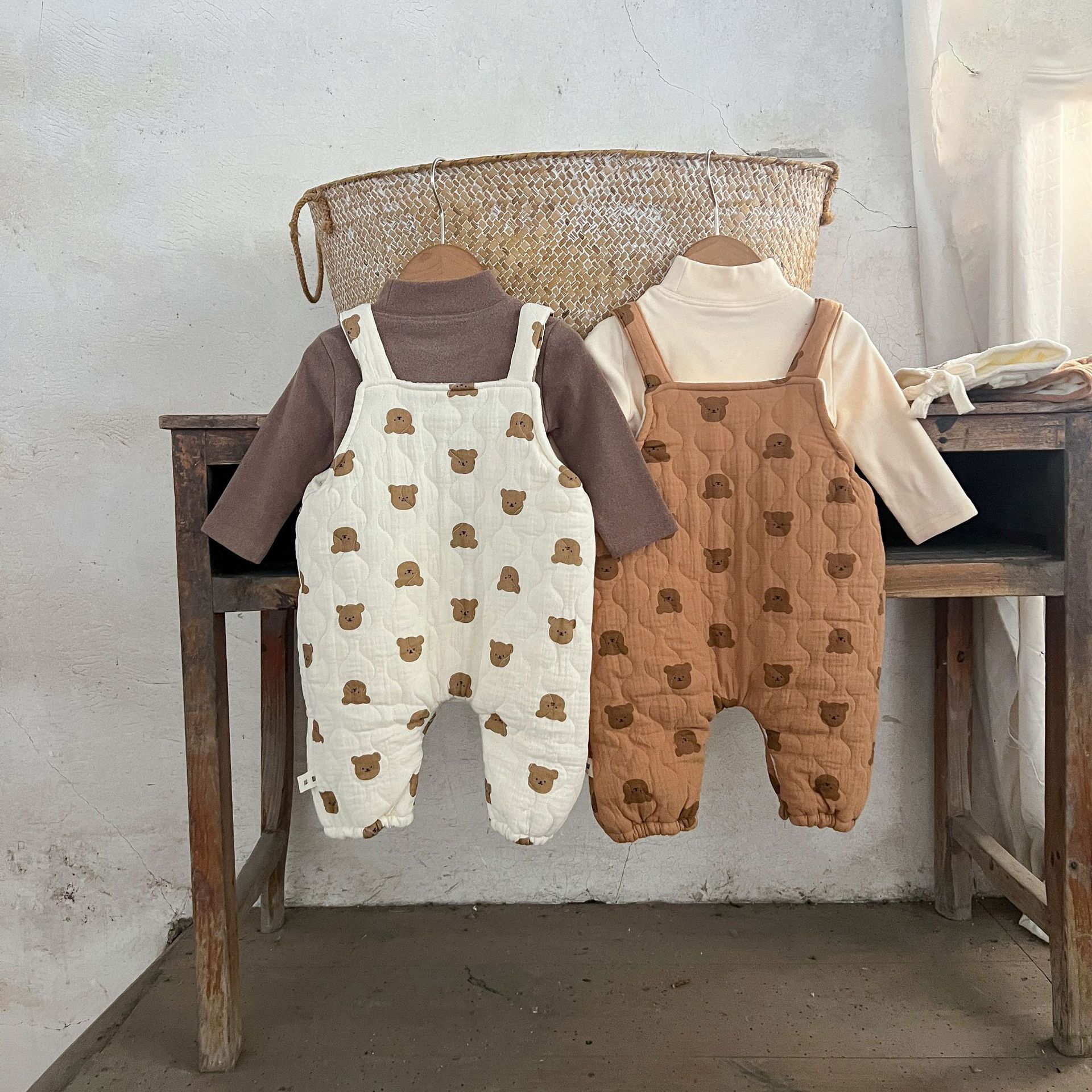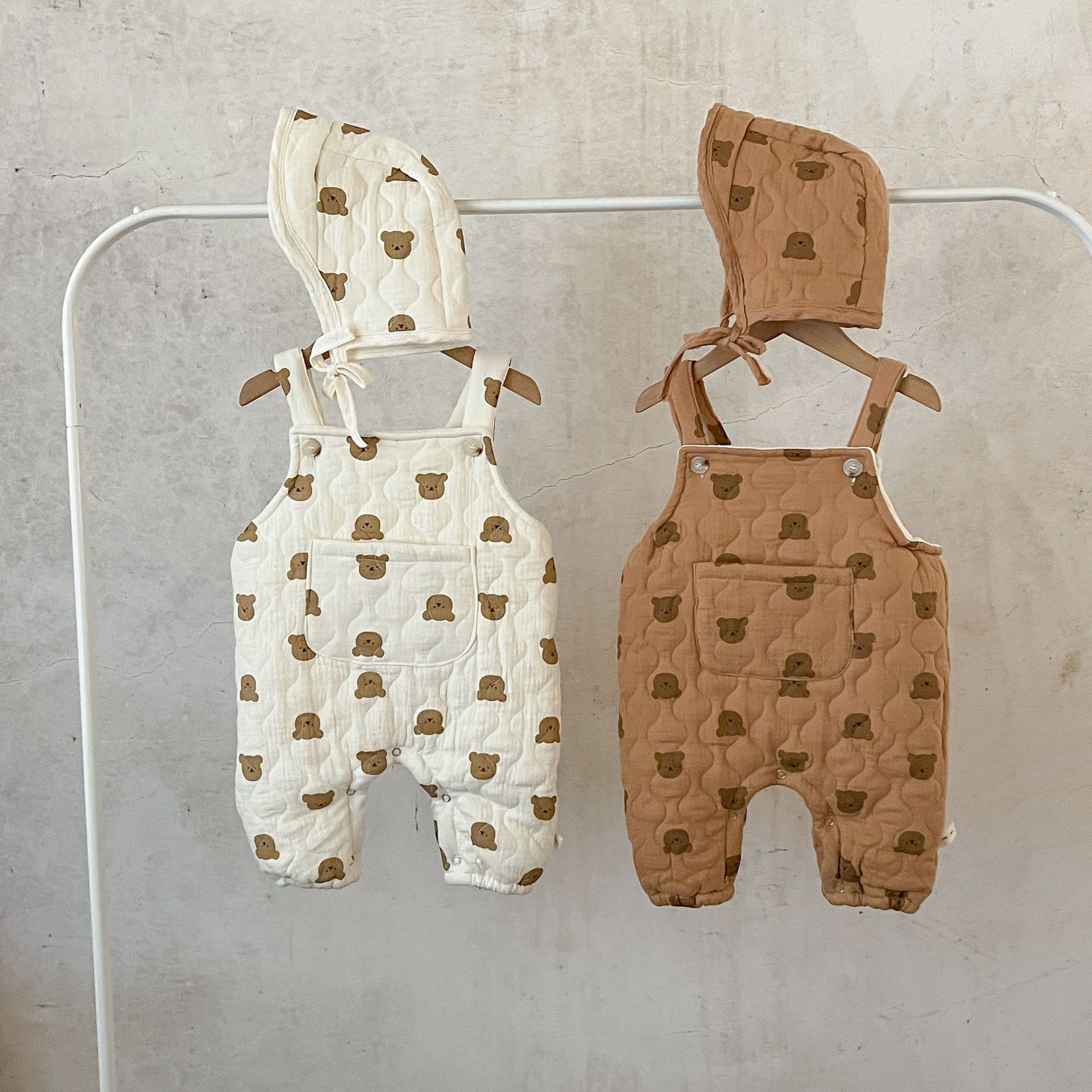 아기의 가을과 겨울 옷 귀여운 아기의 면 패딩 기모 곰 긴 등산 옷 두꺼운 따뜻한 신생아 세트스토어 가기