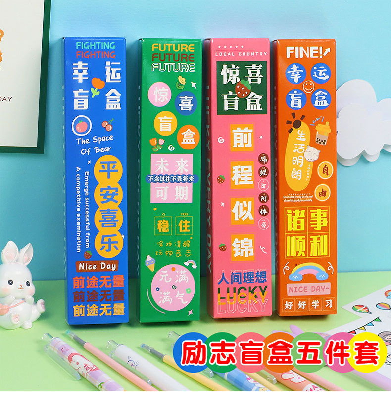 영감 텍스트 5 피스 세트 블라인드 박스 펜 초등학교 젤 펜 럭키 박스 만화 사인 펜 문구 세트