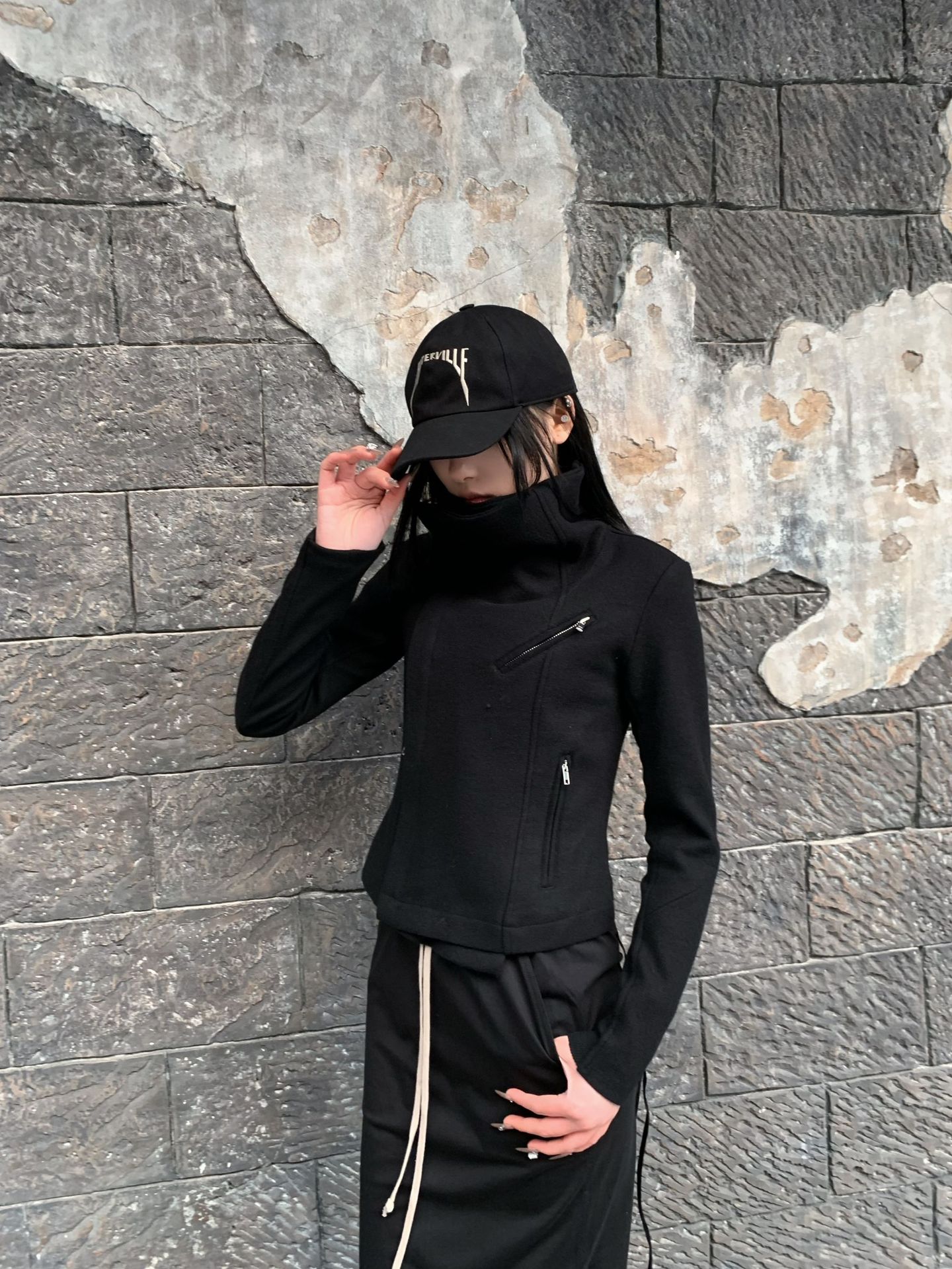 SUBHUMAN 여성용丨2025 다크 스타일 소녀 울 혼방 사선 지퍼 숏 모직 재킷
