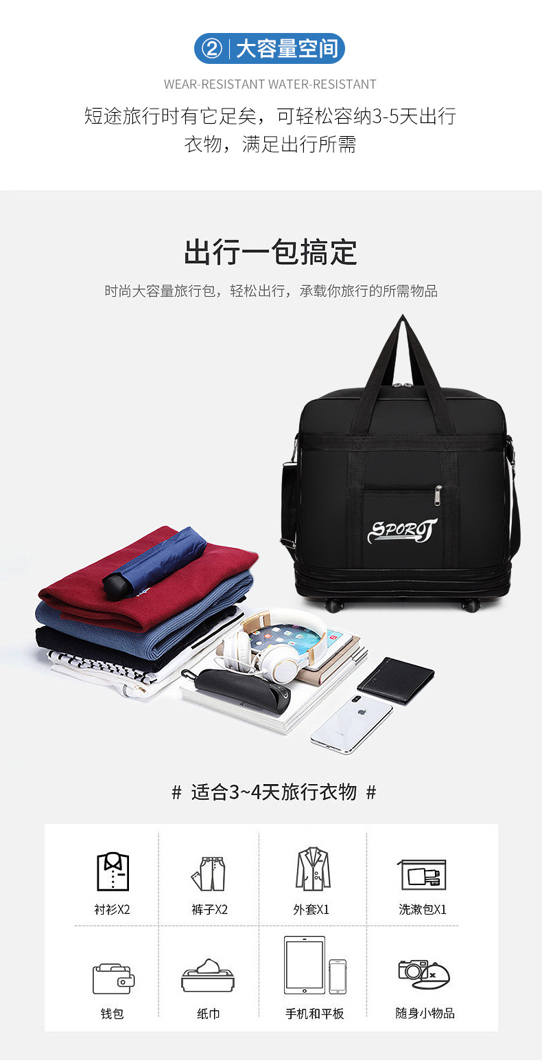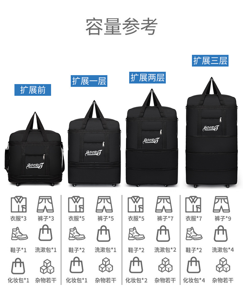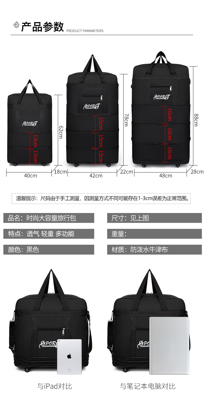 새로운 접이식 확장 대용량 여행 가방, 출장 탑승 항공 체크 가방, 범용 휠 옥스포드 천 수하물 가방스토어 가기