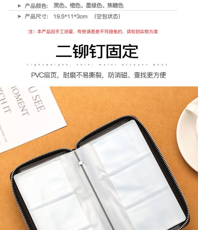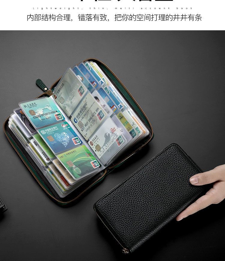 지퍼 다기능 ID 카드 가방 남성용 및 여성용 심플 대용량 멀티 카드 홀더 명함 가방 90 카드 홀더