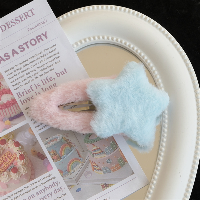 만화 봉제 스타 머리핀 가을과 겨울 털이 머리 액세서리 새로운 도파민 오각형 BB 클립 머리핀 도매