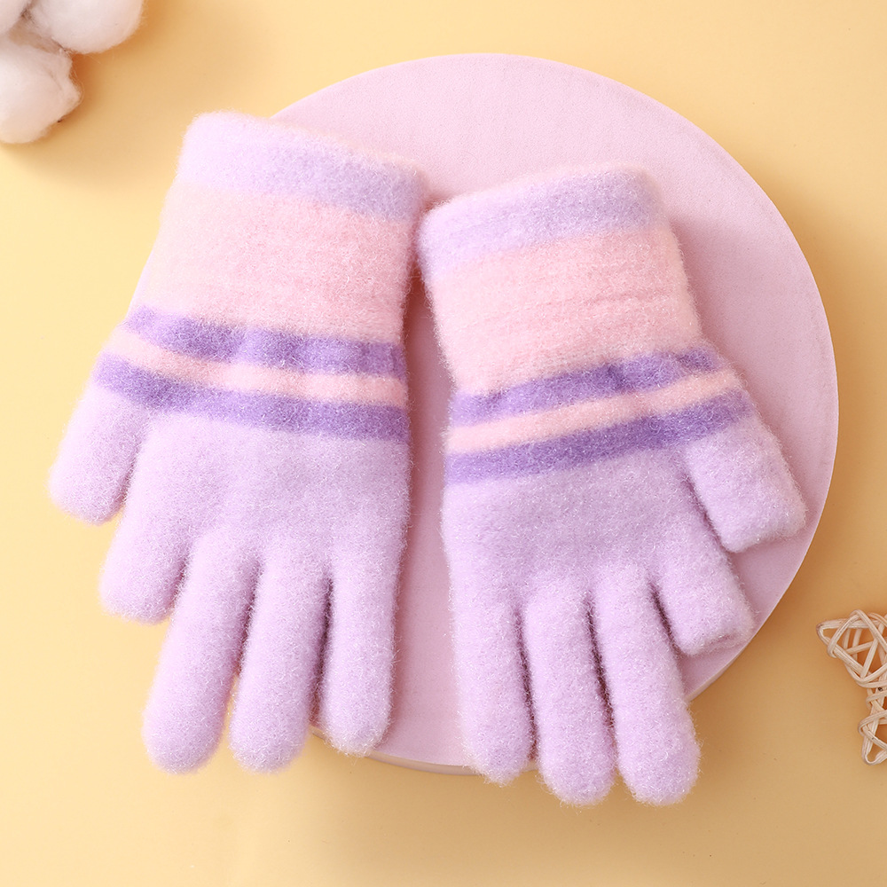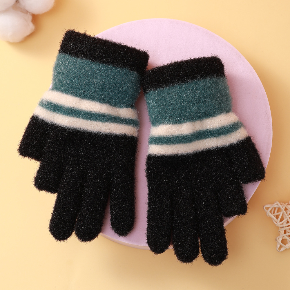 겨울 장갑 귀여운 만화 소년과 소녀 벨벳 두꺼운 손가락 학생의 글쓰기 따뜻한 터치 스크린 5 손가락 니트