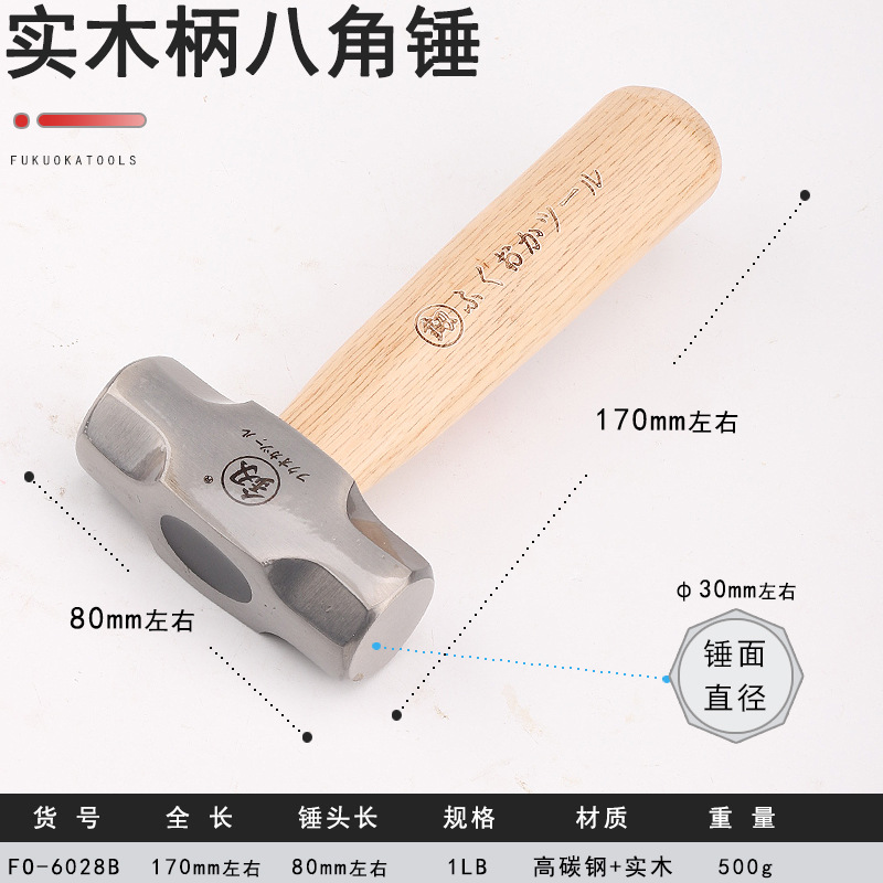 후쿠오카 1LB 팔각형 망치 손 작은 망치 FO-6028B 작은 망치 목공 망치 손 도구스토어 가기
