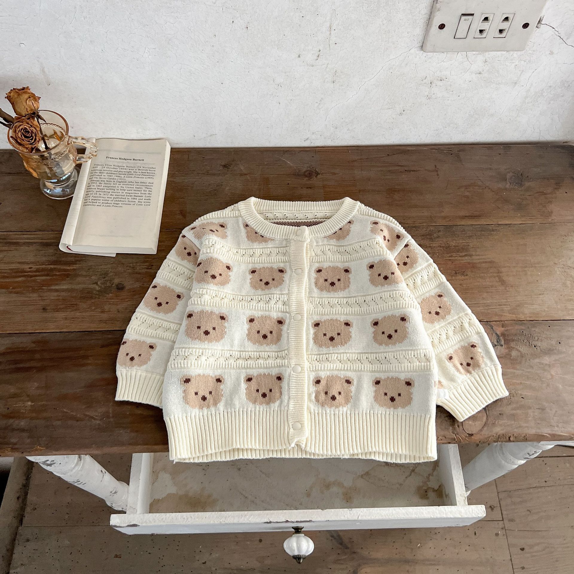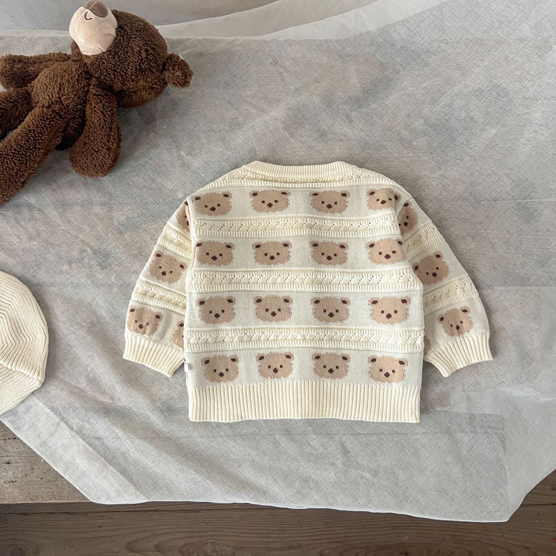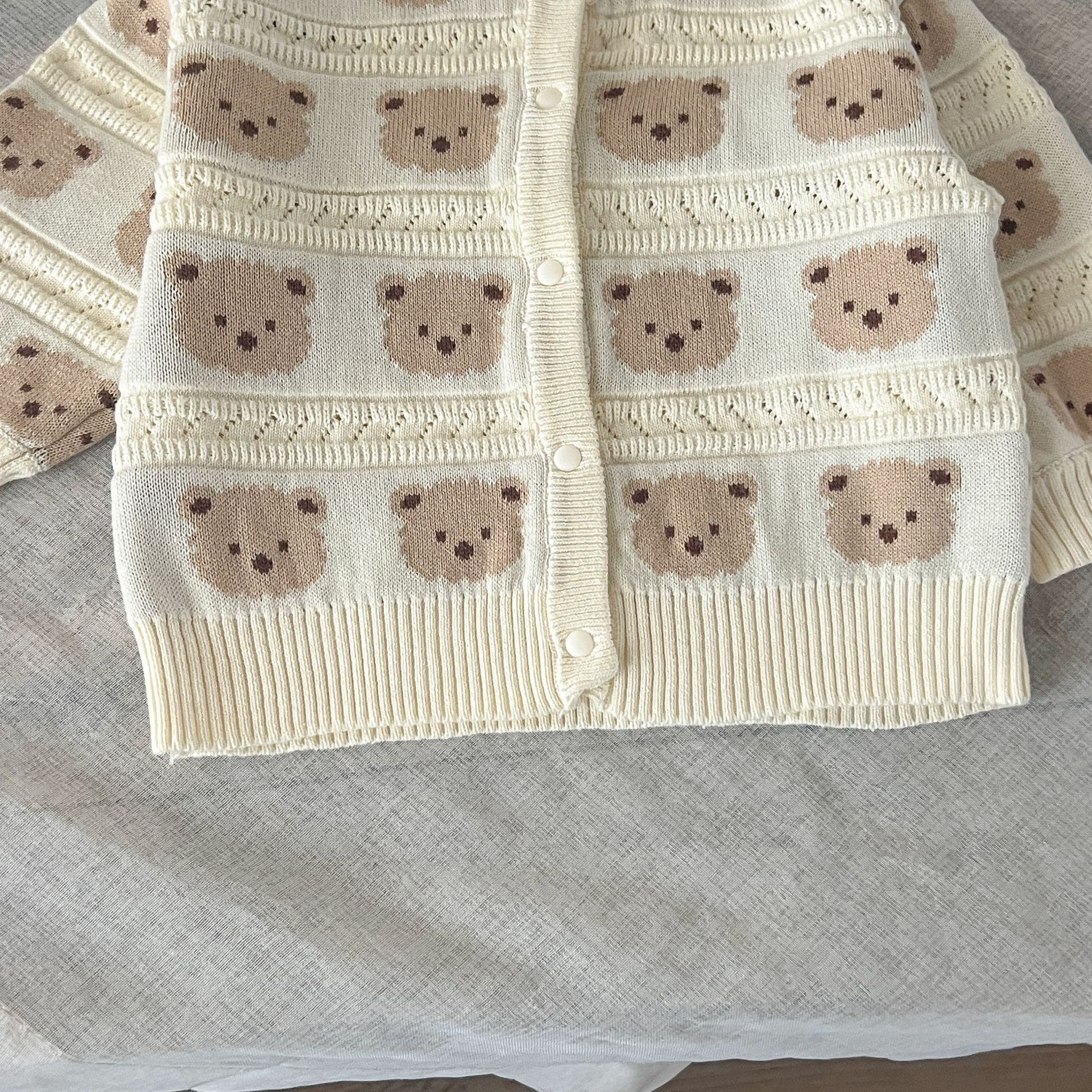 한국식 신생아 순면 만능 자수 곰 스웨터 가디건 베이비 두꺼운 가을과 겨울 코트 트렌디