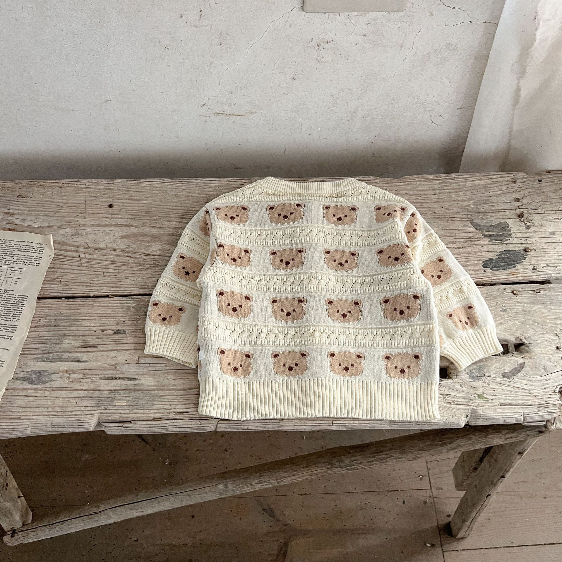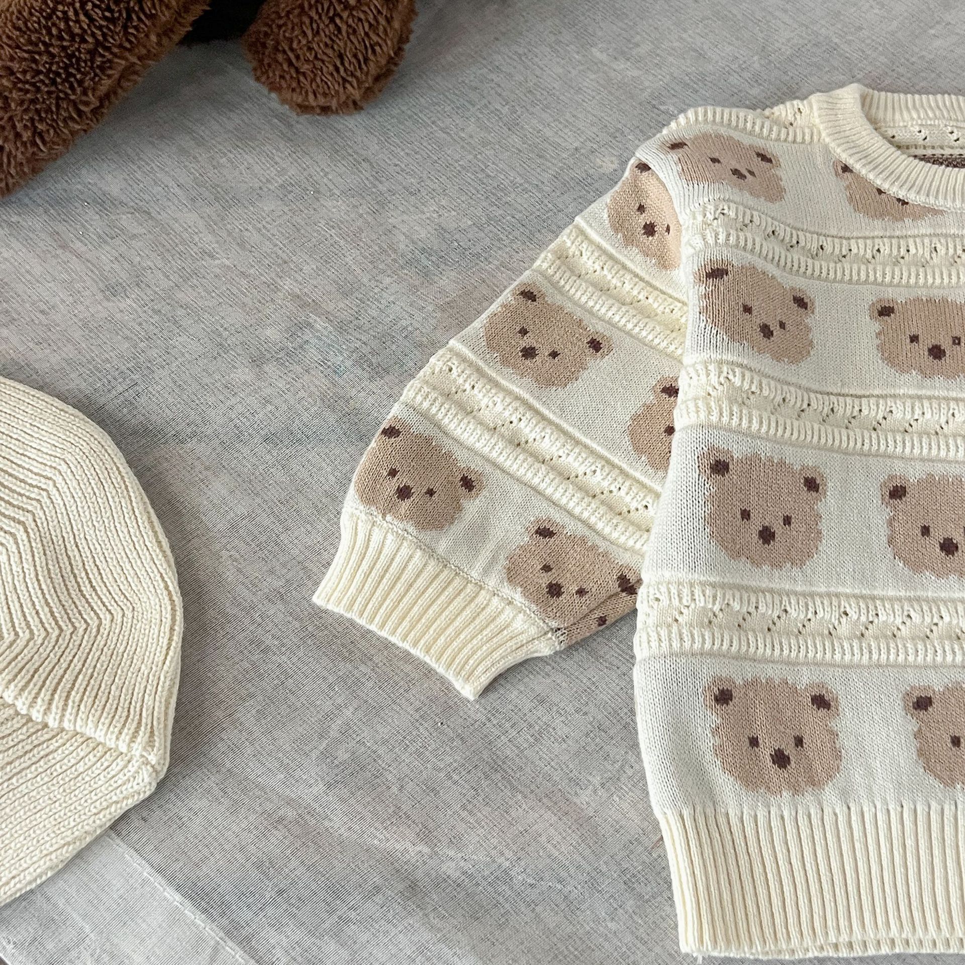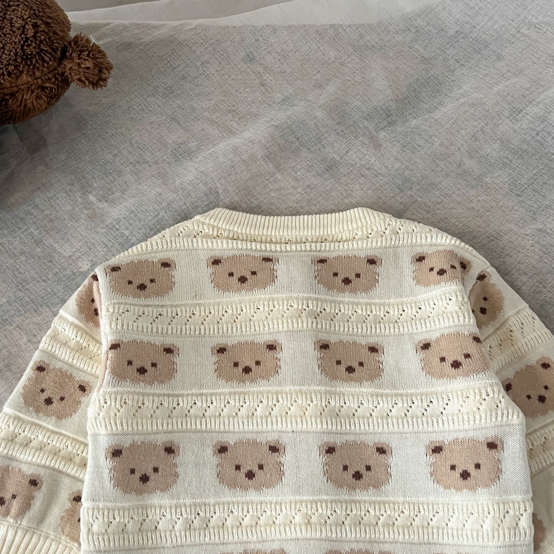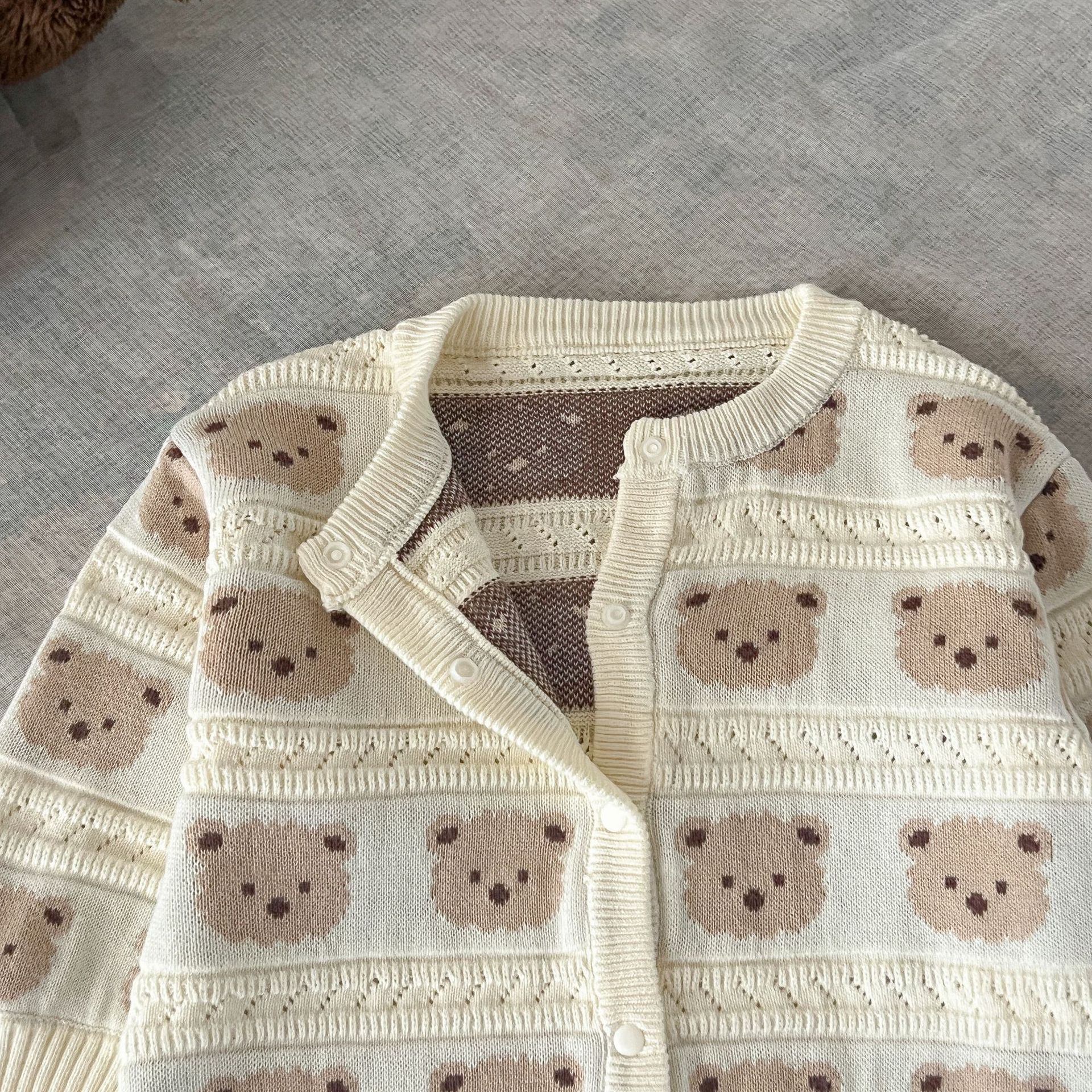 한국식 신생아 순면 만능 자수 곰 스웨터 가디건 베이비 두꺼운 가을과 겨울 코트 트렌디