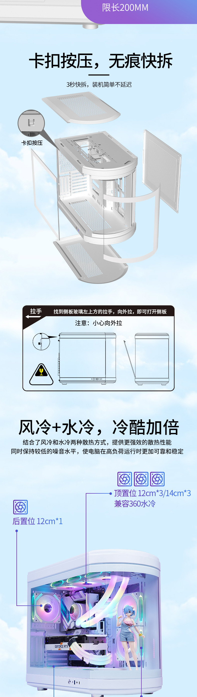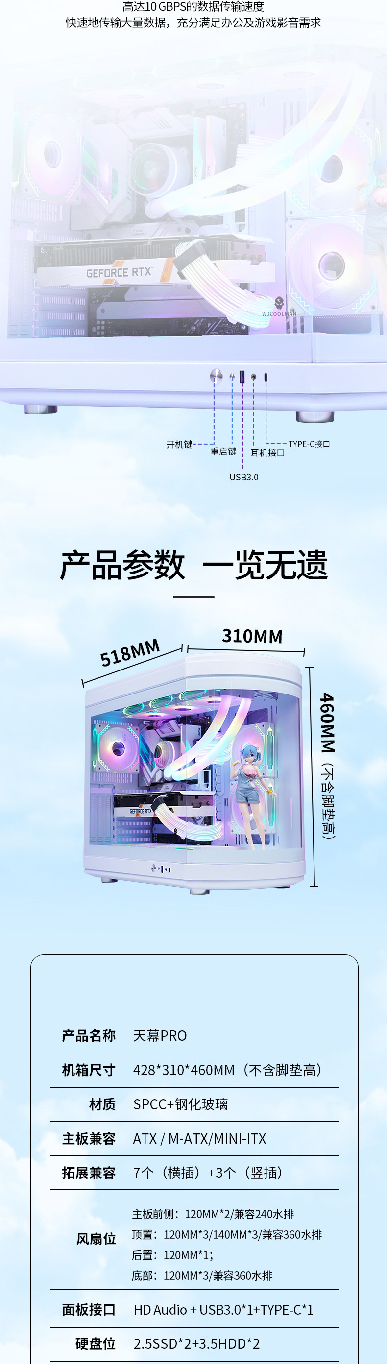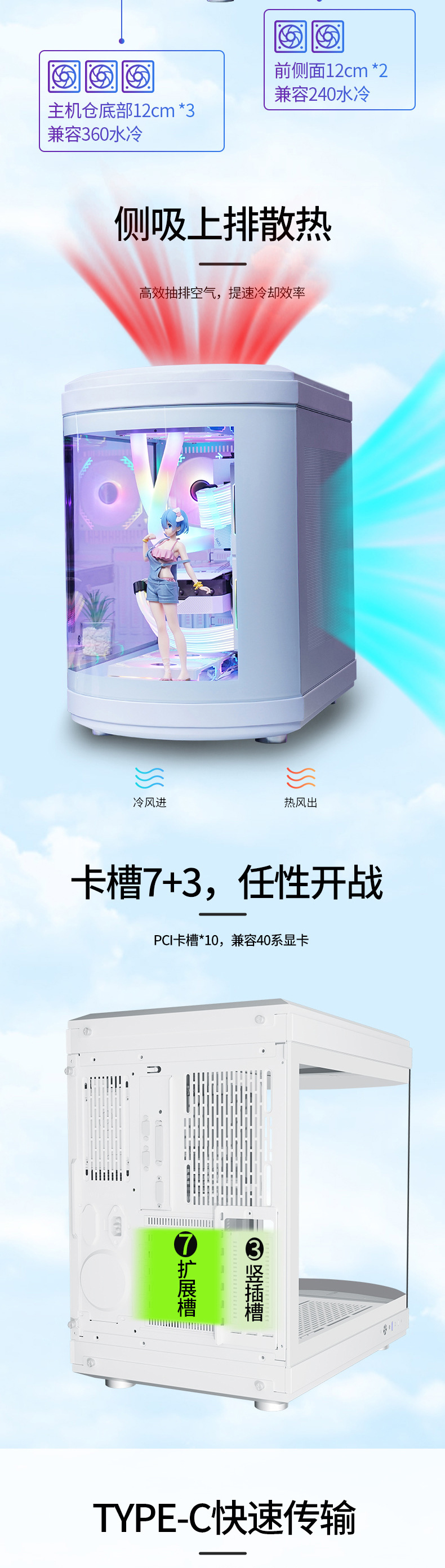 크로스 보더 스카이 스크린 PRO 데스크탑 컴퓨터 섀시 곡선 유리 강화 유리 시뷰 게임 섀시 수냉식 섀시스토어 가기