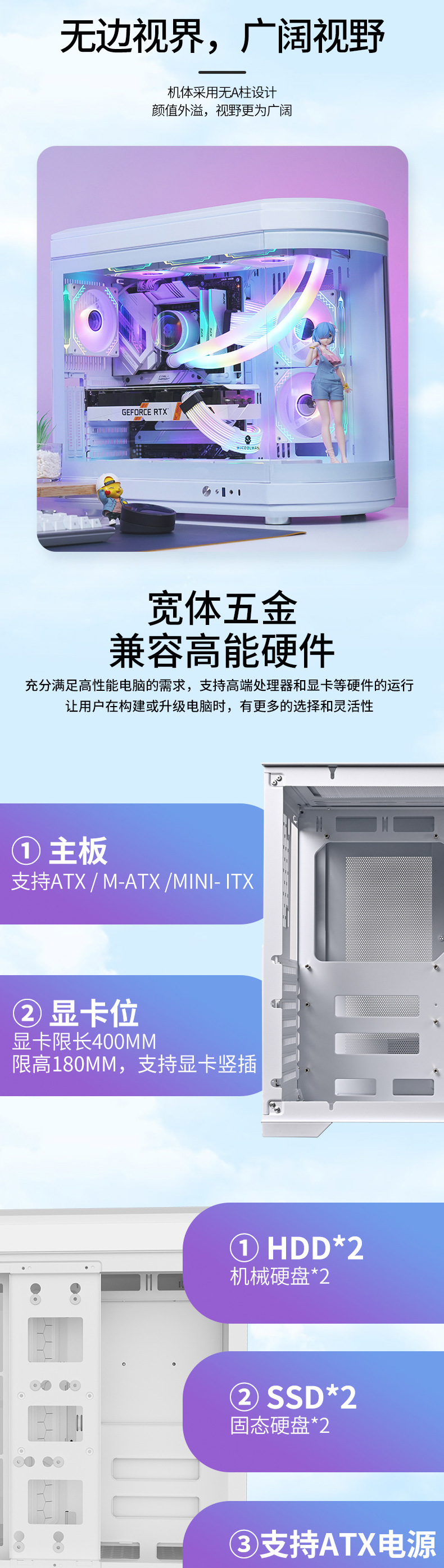 크로스 보더 스카이 스크린 PRO 데스크탑 컴퓨터 섀시 곡선 유리 강화 유리 시뷰 게임 섀시 수냉식 섀시